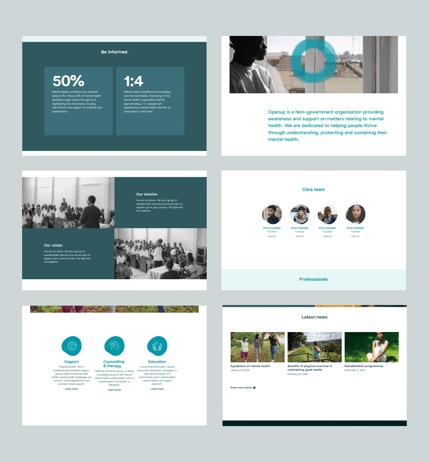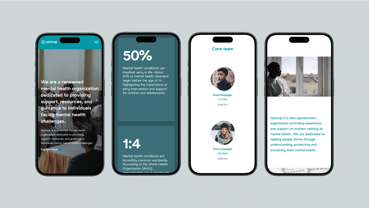 Brand identity and website design and build for Openup. Openup is a foundation that focuses in raising awareness about mental health issues and offering community support.