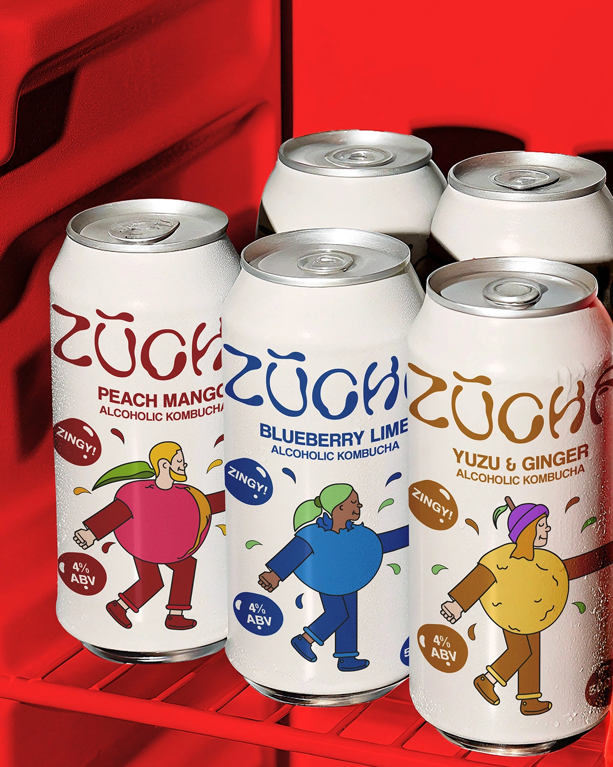 ZŪCHA is brewed from organic fruit with a gentle kick and is designed for easy nights, café hangs and casual moments with friends. The brief was to build an identity that felt fresh on shelf, felt editorial in lifestyle photography and worked across bilingual markets. Our audience is social and style conscious people who seek interesting, lighter drinks and respond to playful design.