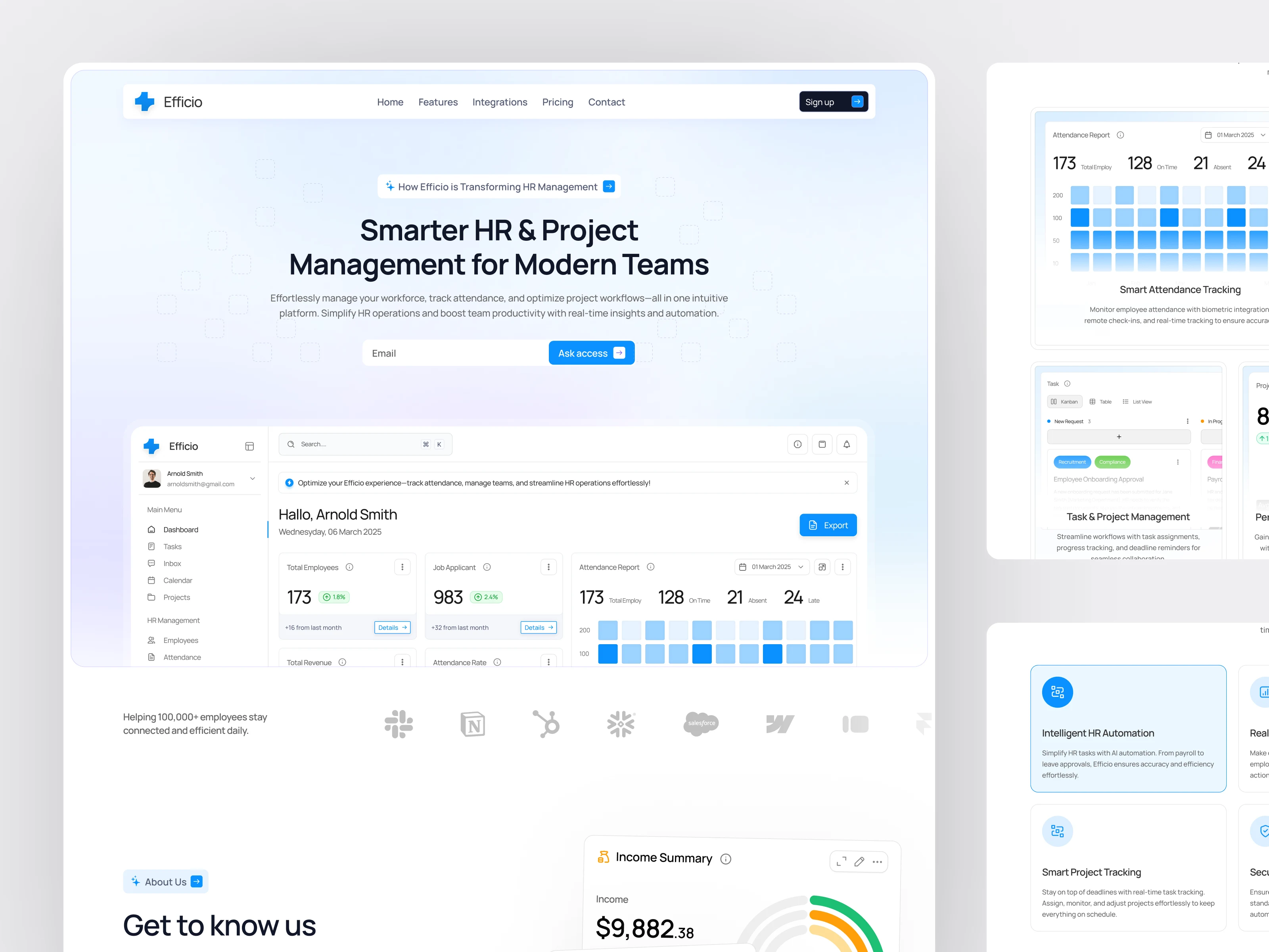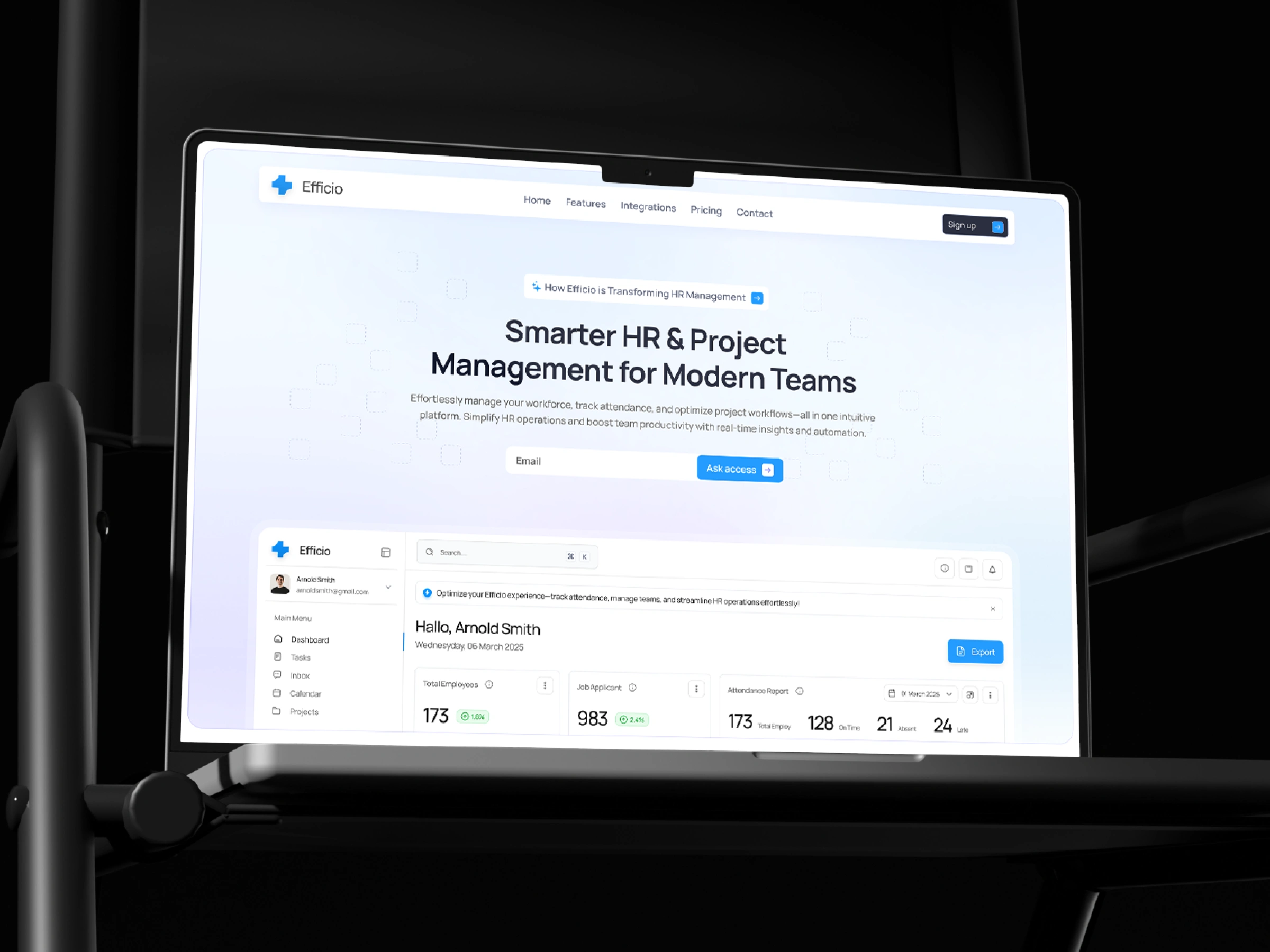 Efficio is a modern HR Management Landing Page designed to simplify and enhance human resource operations. Whether you're handling recruitment, employee records, payroll, or performance management, Efficio provides a seamless and intuitive platform to optimize HR workflows for businesses of all sizes.