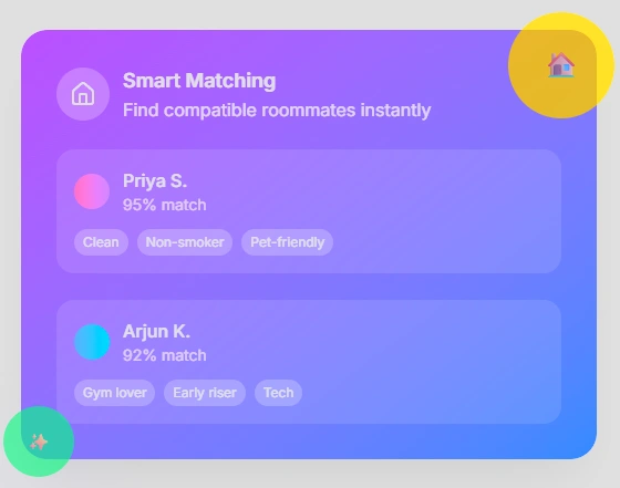 Flatmatey is a platform that helps people find and connect with compatible flatmates in their locality. Users can list themselves as looking for a flatmate, browse profiles nearby, and filter based on preferences like location, budget, and lifestyle. The app is designed to simplify the flatmate search process by making it transparent, convenient, and community-driven.