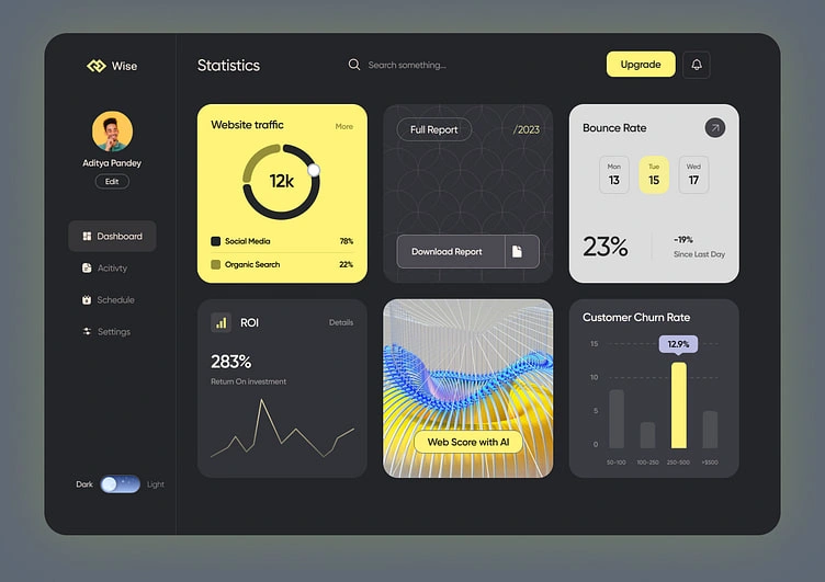 A modern analytics dashboard designed for clarity and speed, turning complex metrics into actionable insights with an intuitive, user-friendly interface.