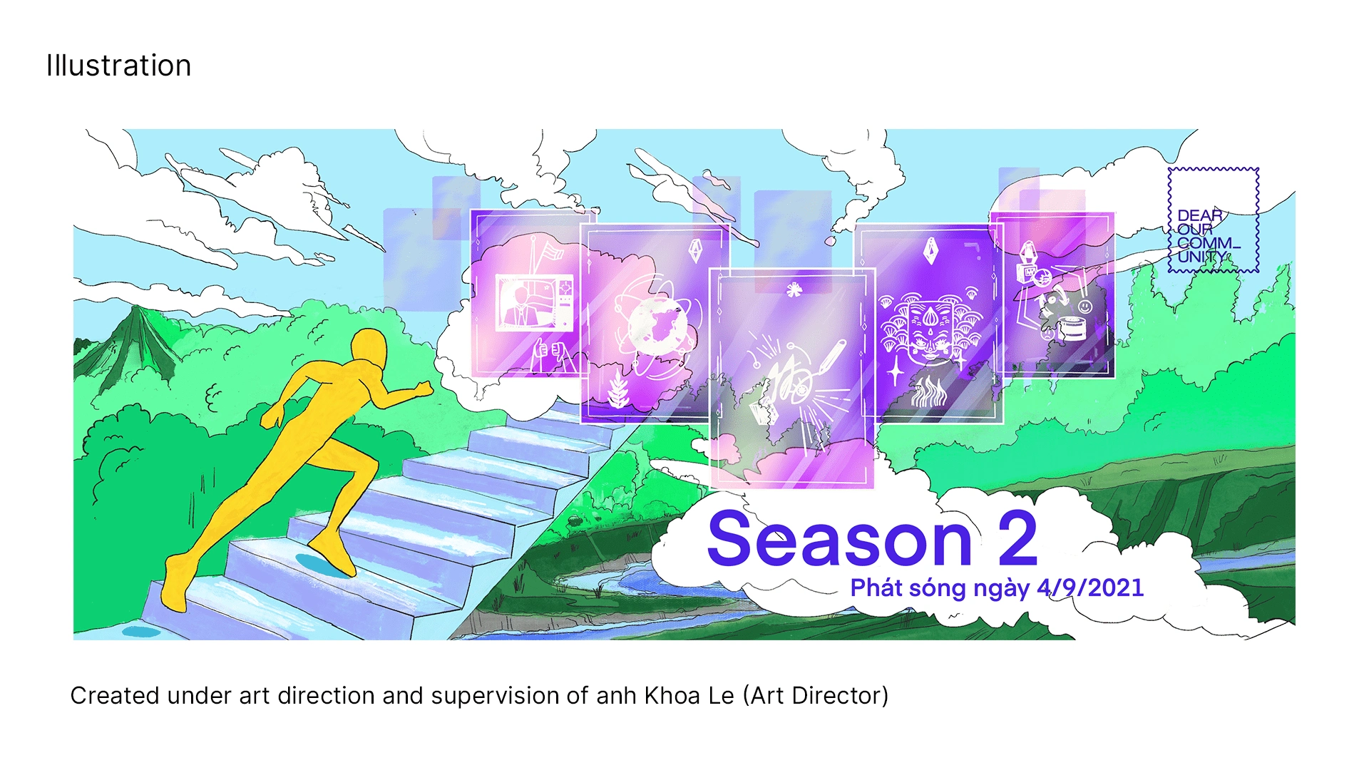 Multi-disciplinary graphic design work for a podcast organization on social impact, including social media visuals, illustrations, and a digital publication.