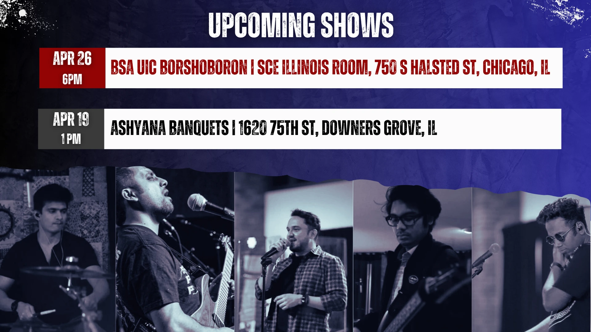 Upcoming shows social media post for a band.