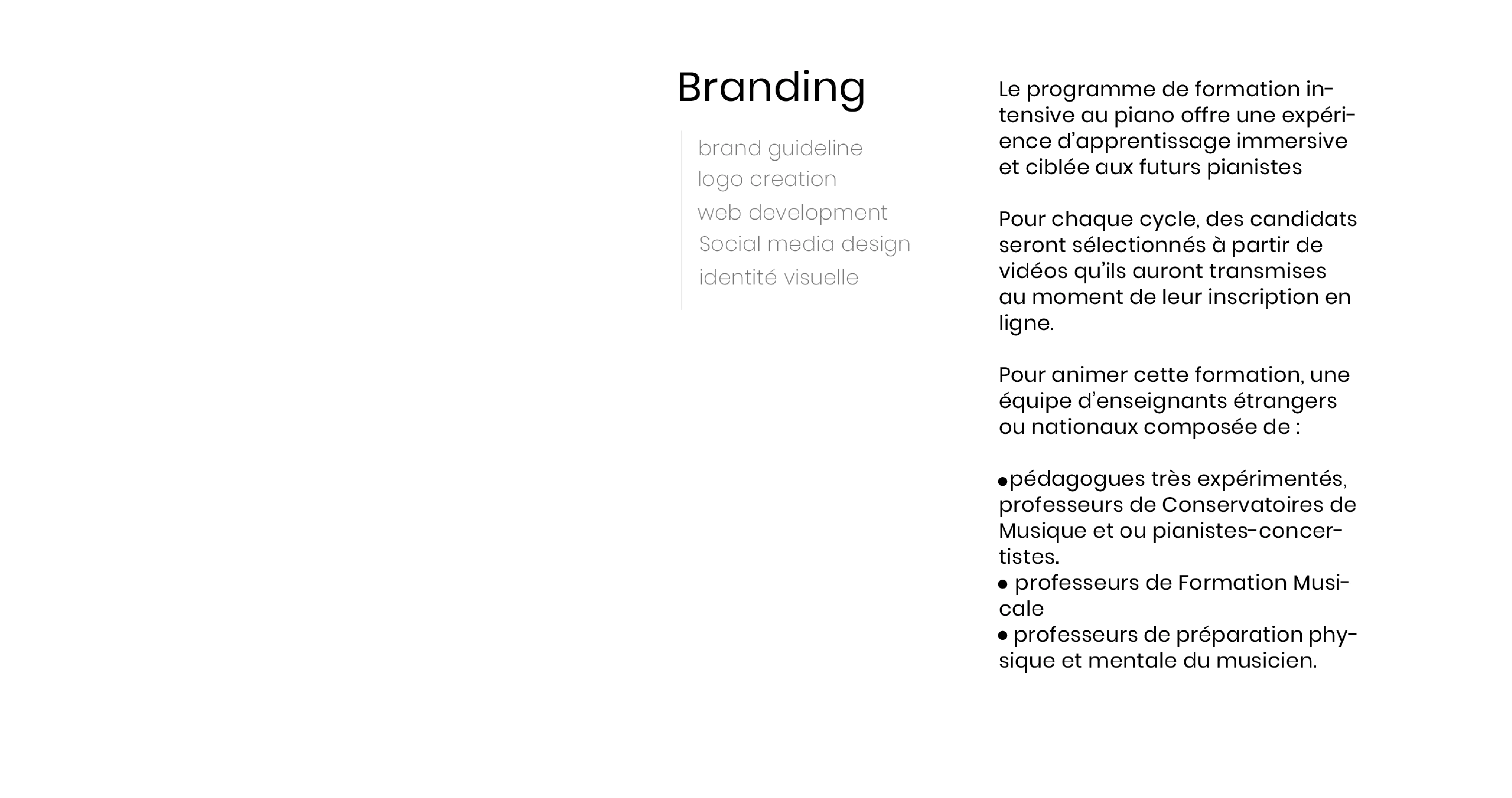 The Intensive Piano Training program offers immersive learning for aspiring pianists. Candidates are selected based on videos submitted during registration.