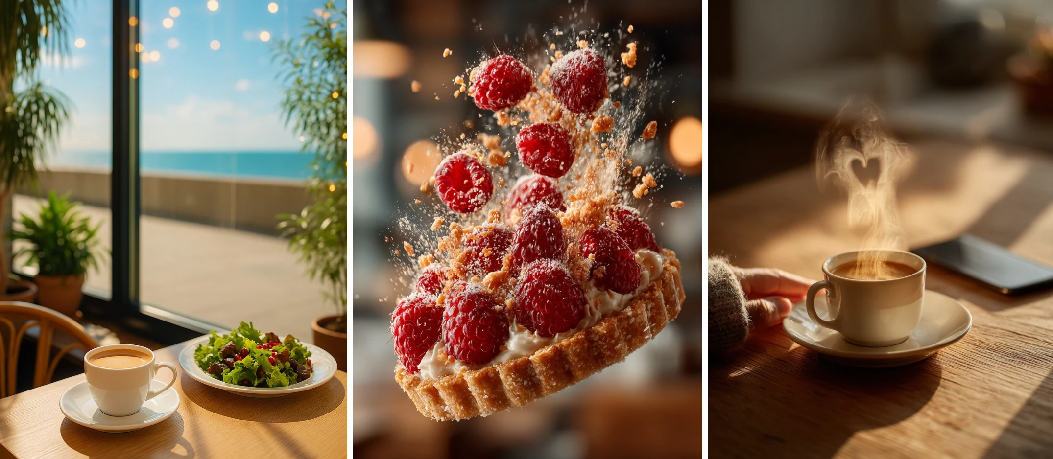We used AI tools to generate lifestyle-style imagery of the café and its menu, carefully refining details to achieve natural textures, appetising colours, and a sense of place. After the images were finalised, I created animations to enhance movement and add energy, making the visuals more engaging for social platforms