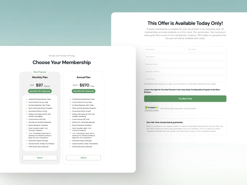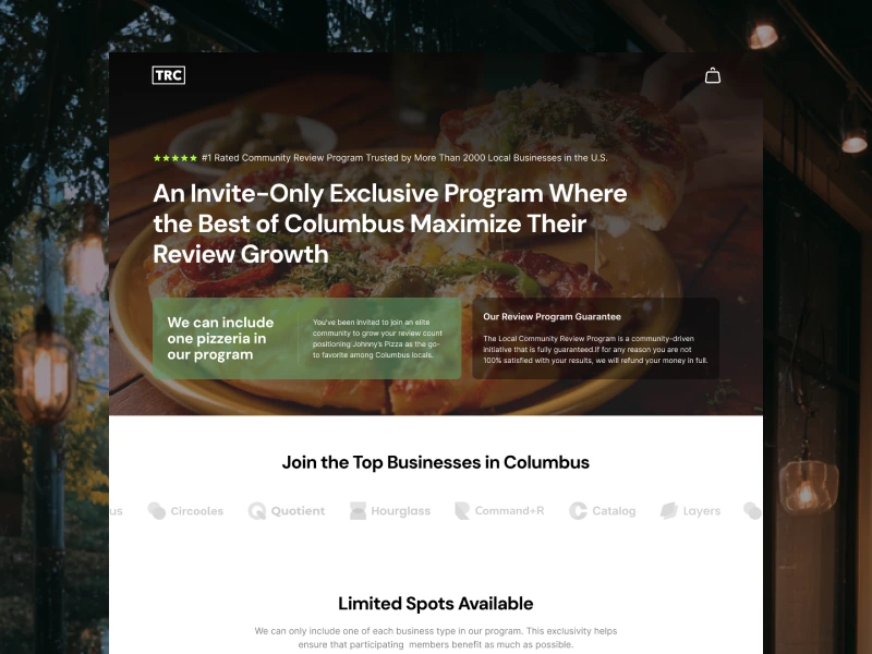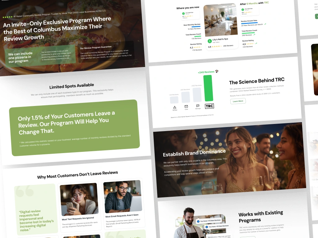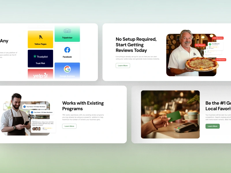 The Review Card is a conversion-focused landing page designed to help local businesses effortlessly turn positive customer experiences into online reviews. By combining a physical touchpoint with a seamless digital flow, the design guides customers to leave reviews naturally, helping businesses build trust, increase visibility, and strengthen their local presence through consistent social proof.