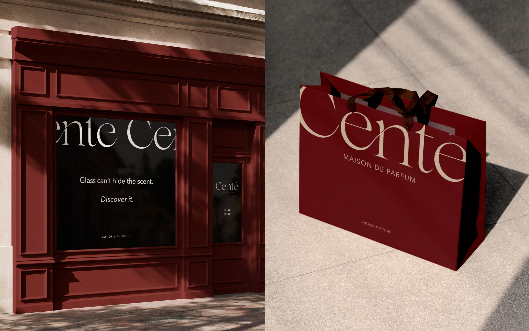 The approach focused on balance: refined typography, a restrained color palette, and carefully considered brand touchpoints. From the perfume bottle and packaging to the shopping bag, advertising, and store facade, each element was designed to work together as part of a unified luxury experience.