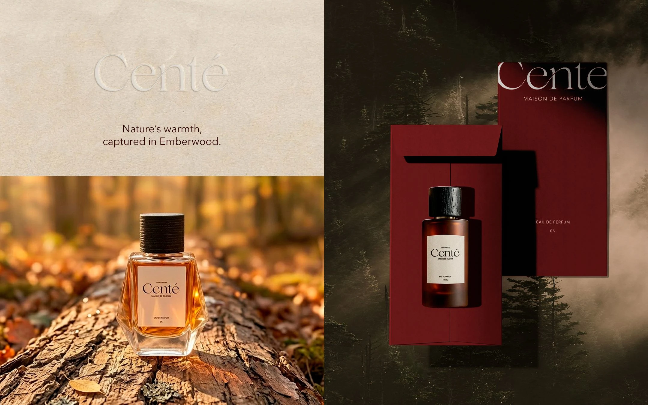 The goal was to design a cohesive brand experience for Centé, a French fragrance lab with over 250 years of perfume heritage. The objective was to create a visual identity for the fragrance Emberwood that feels both timeless and contemporary.