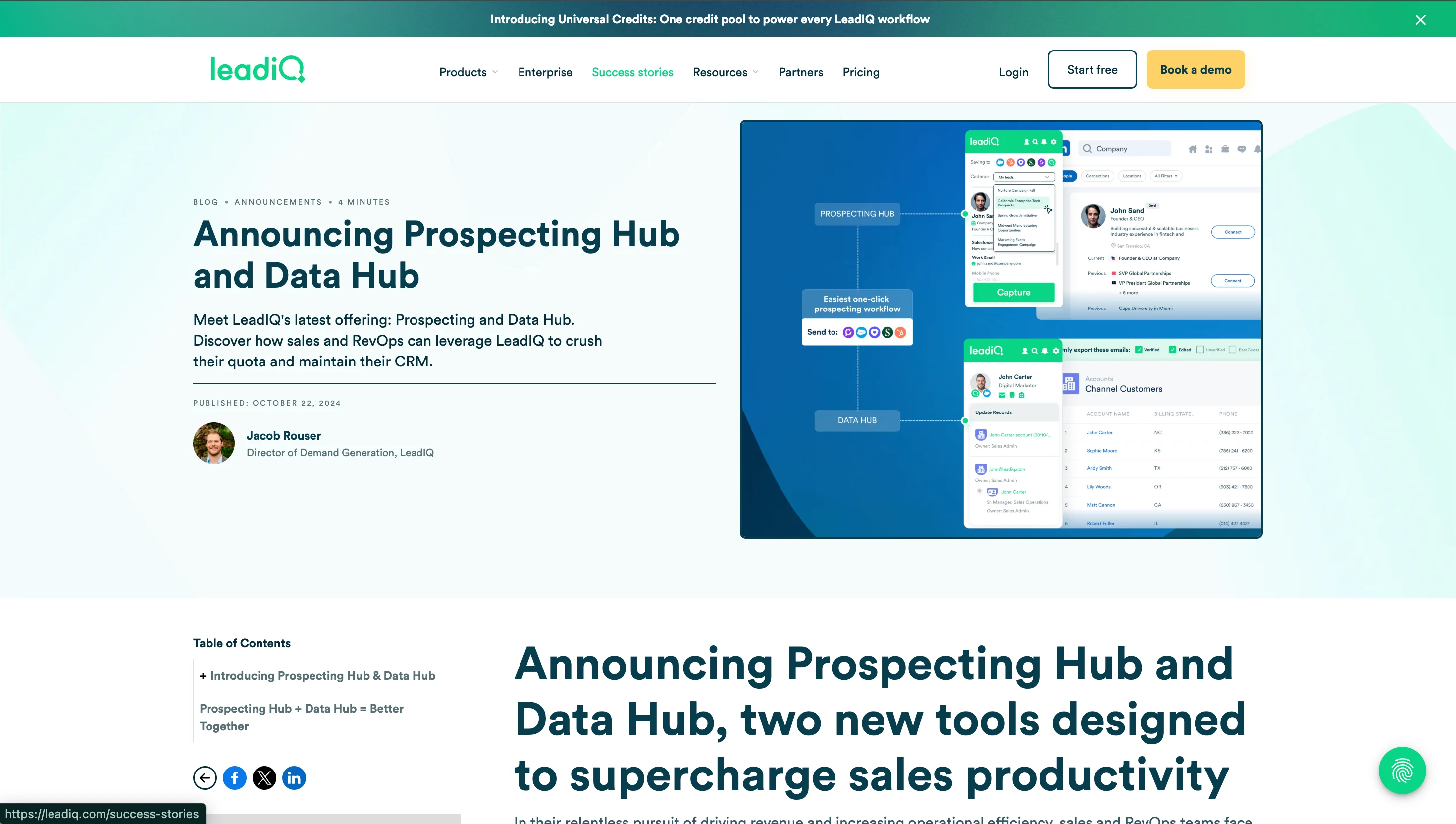 LeadIQ needed to reposition its core product offering to clarify value for distinct buyer segments. I led the repositioning into two solutions: Prospecting Hub (for sales teams) and Data Hub (for RevOps)