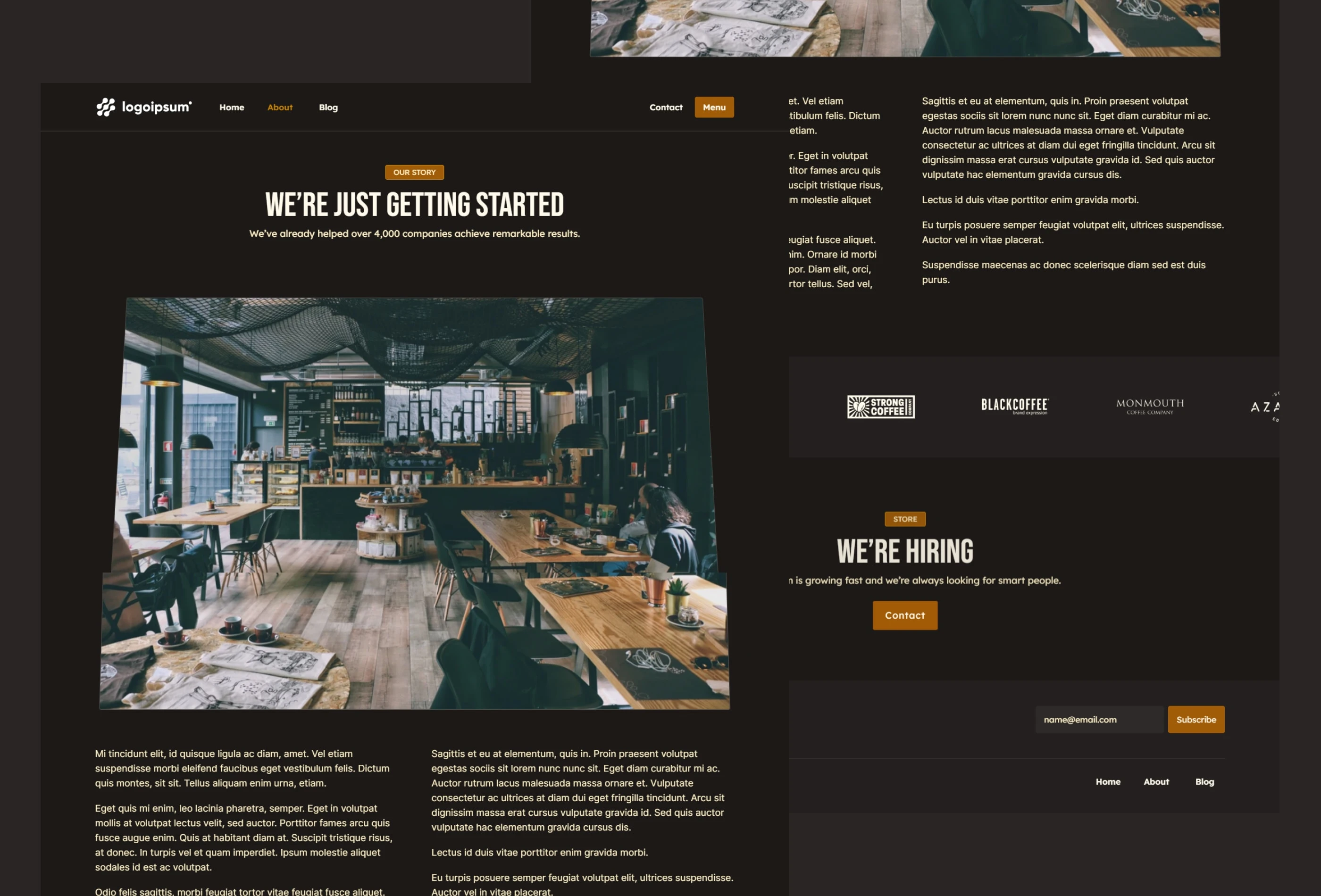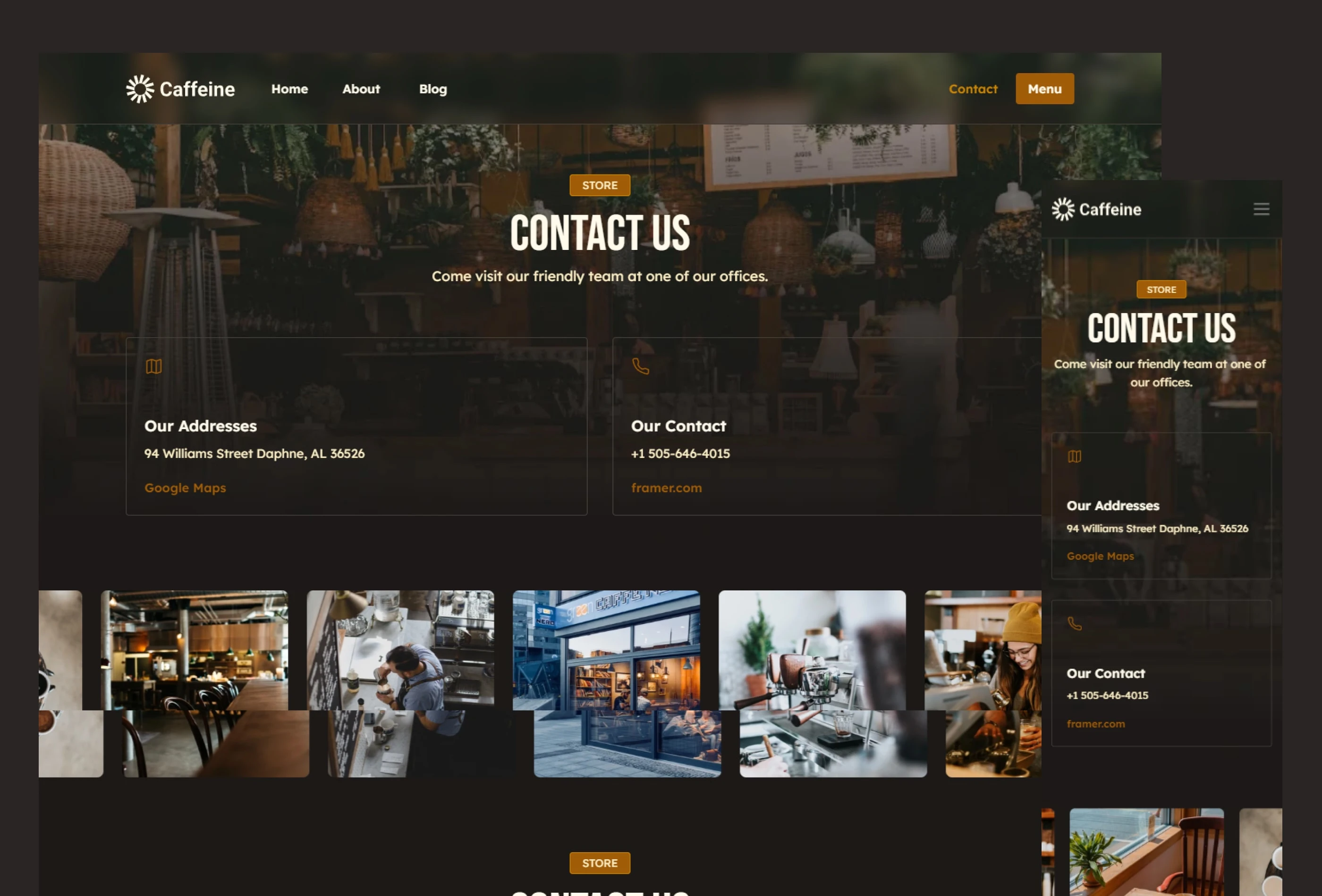 A very easy to use Framer theme with a modern interface and simple component structure that I designed for Coffee Shops on Figma and then implemented with Frame