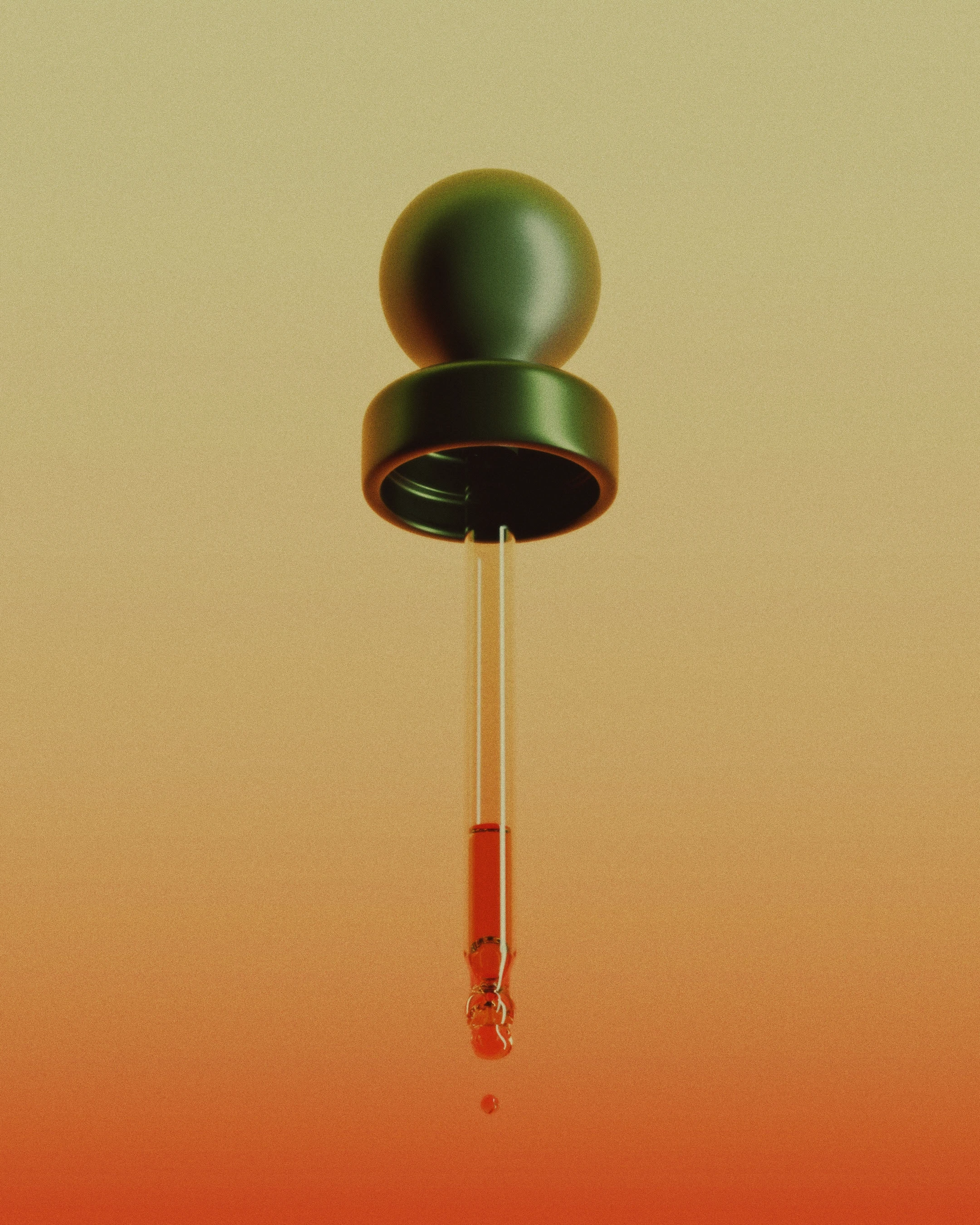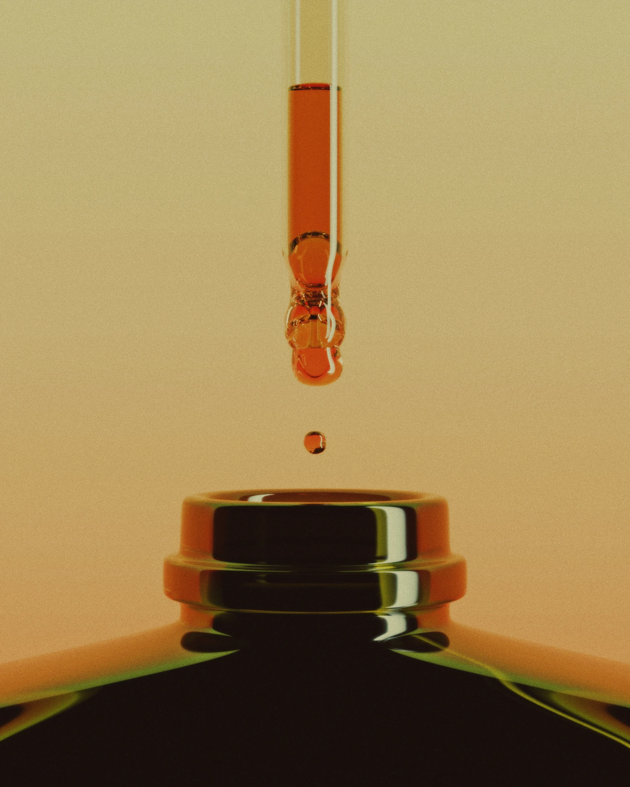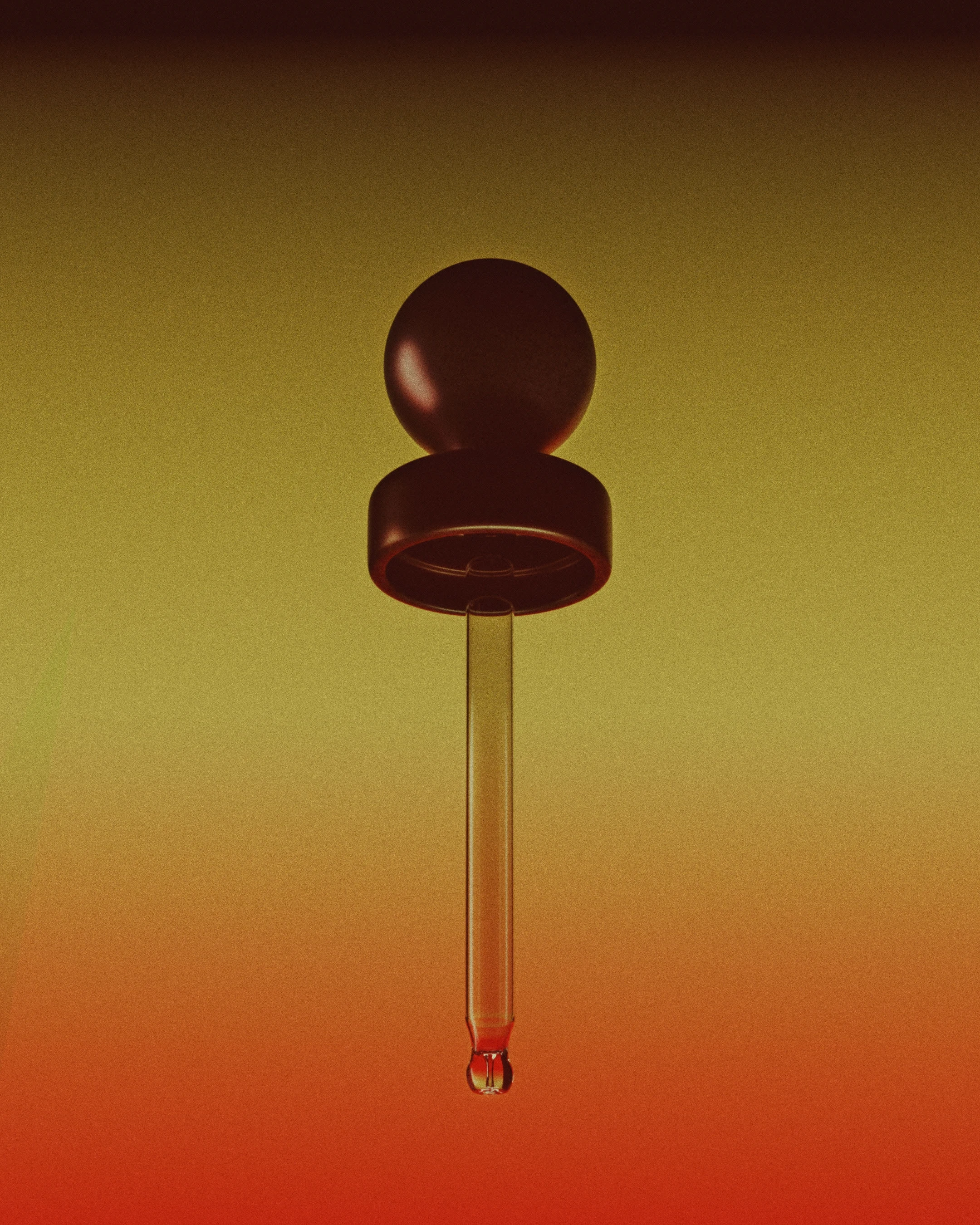 The precision pipette borrowed from flavor concentrate packaging replaces the traditional pour spout, turning consumption into a deliberate act, while the dark glass bottle positions the product as precious and slightly dangerous.