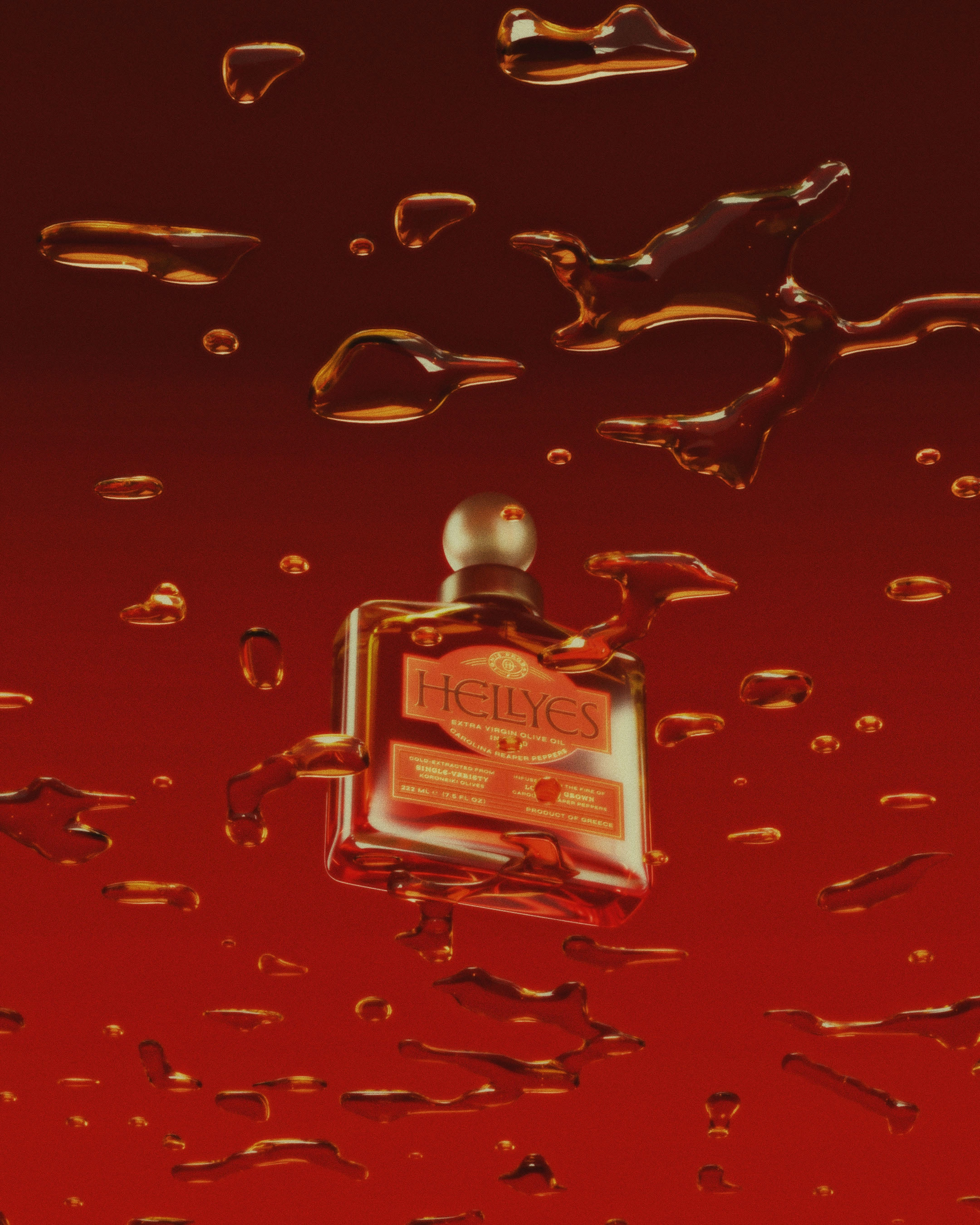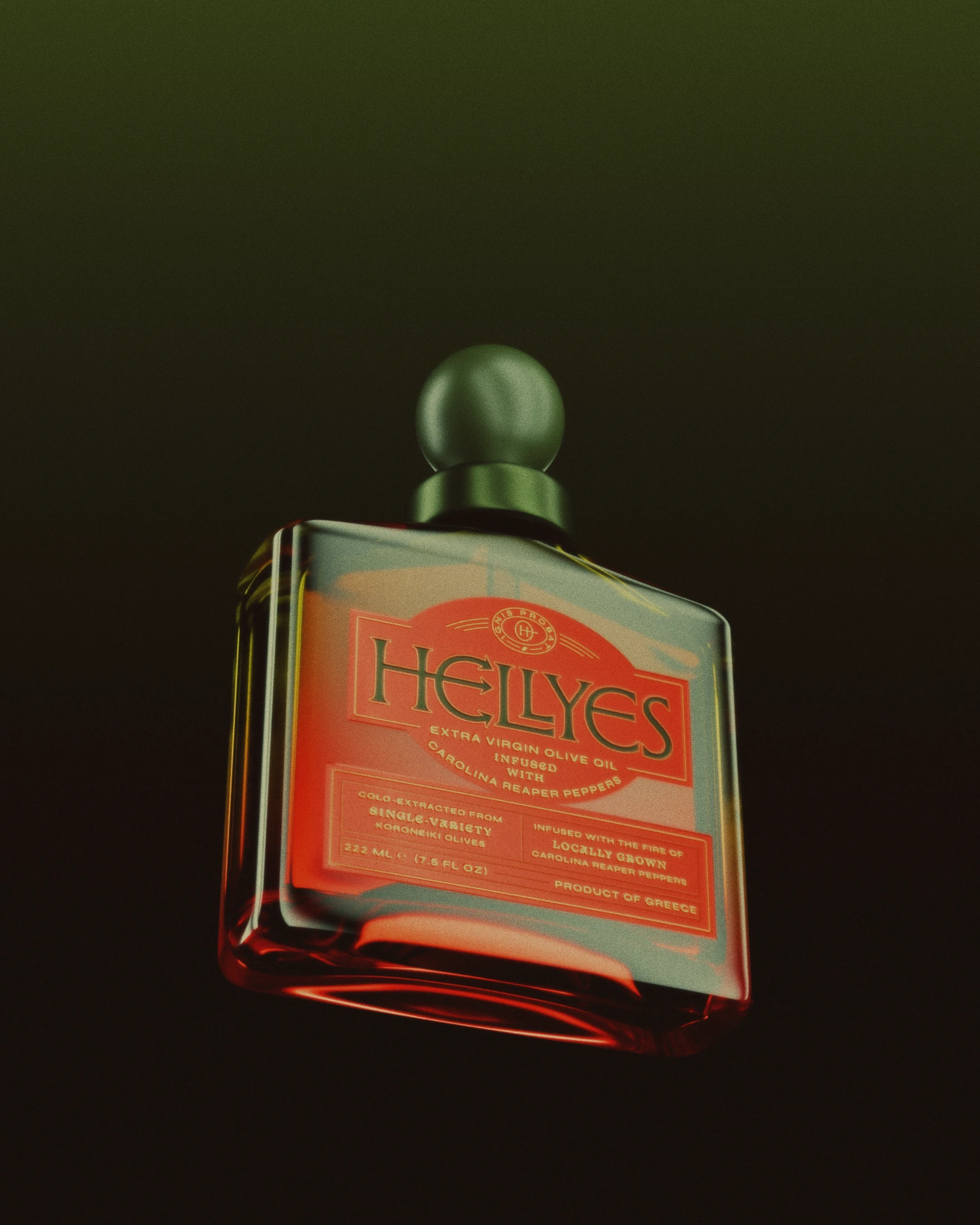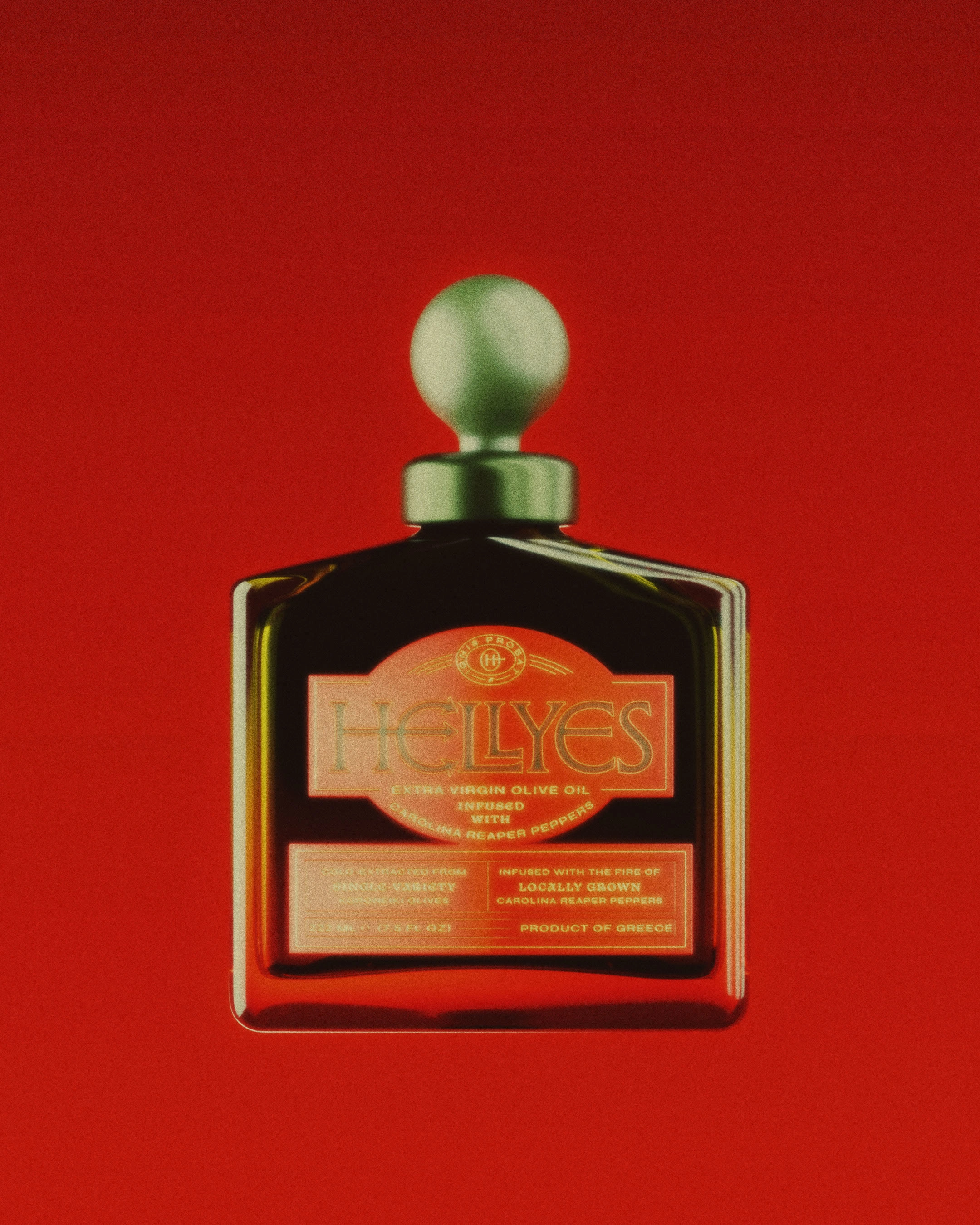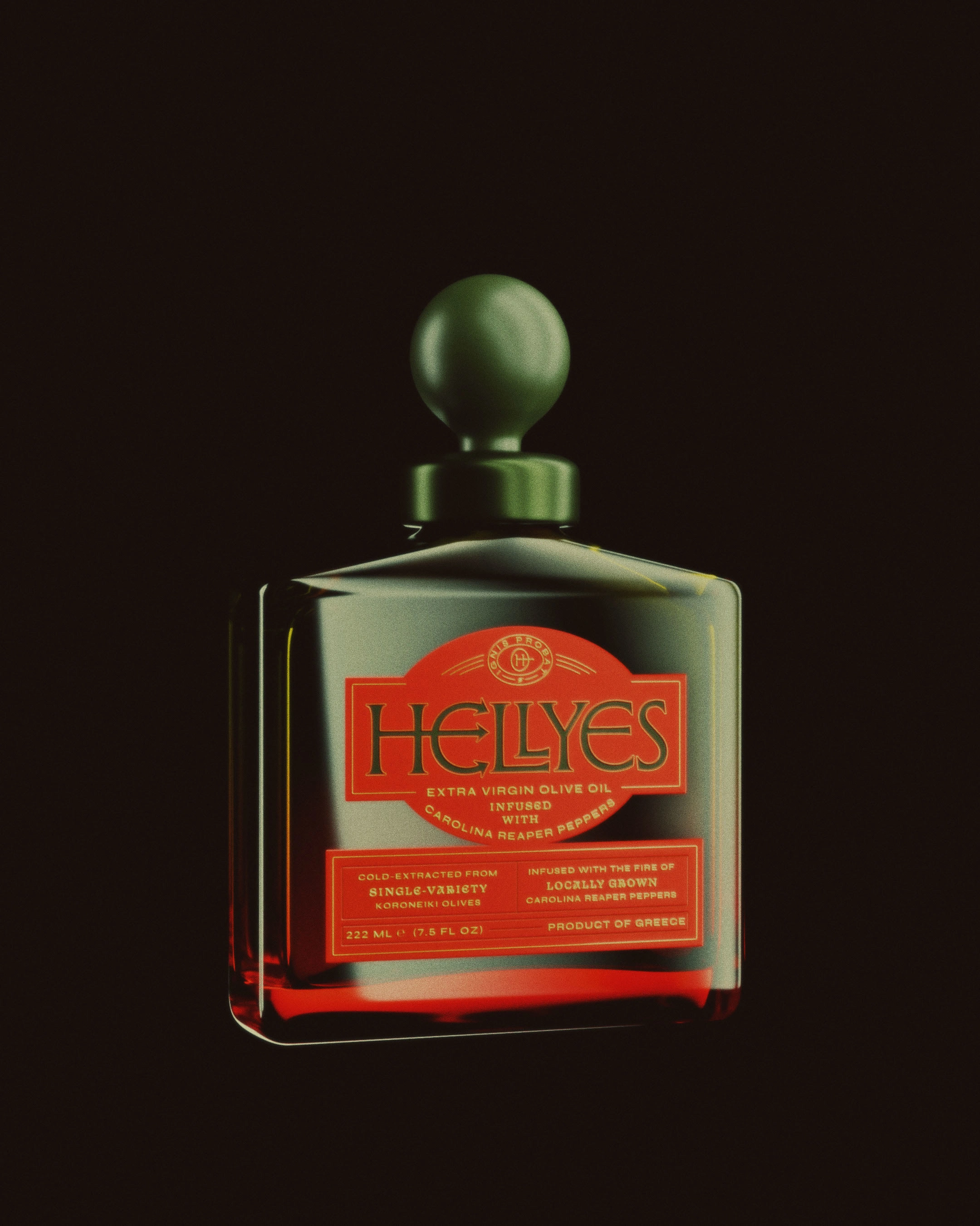 A product born after noticing "HELL YES" sounds remarkably similar to "ELIES" (Greek for olives). This random observation became the starting point for designing a speculative brand of chili-infused olive oil that completely ignores category conventions.