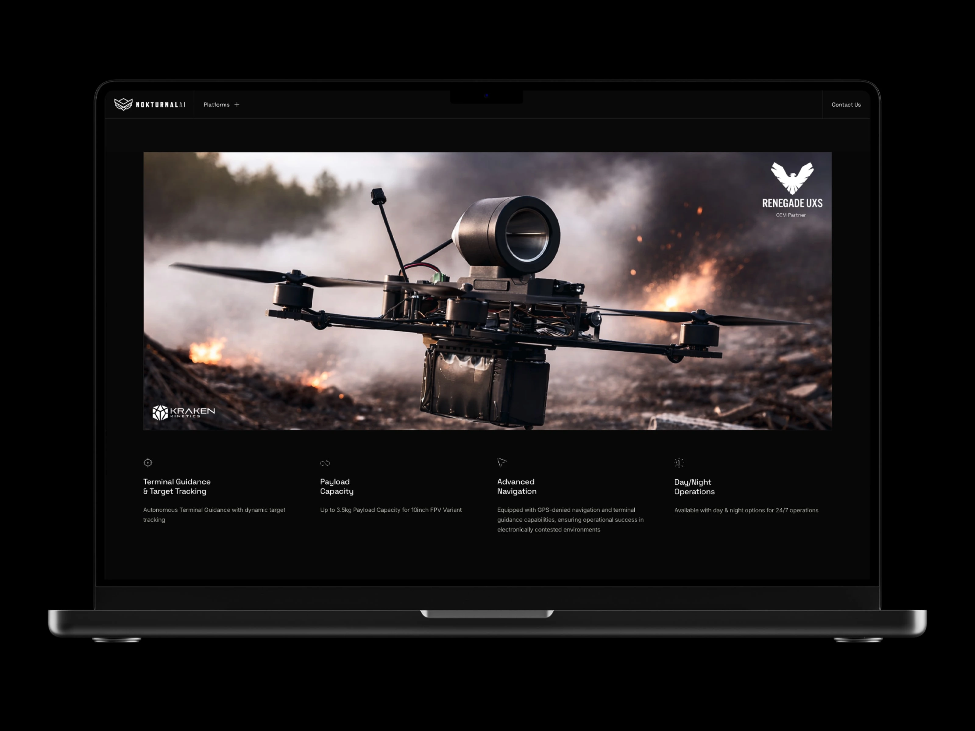 Nokturnal AI is a California-based defense technology company developing advanced autonomous systems. They already had a full website in place, but needed a brand-consistent new product page—complete with visuals, copy, and UI updates—built fast. The new page would be used to present one of their systems to key partners and decision-makers, meaning accuracy, clarity, and speed were essential.
