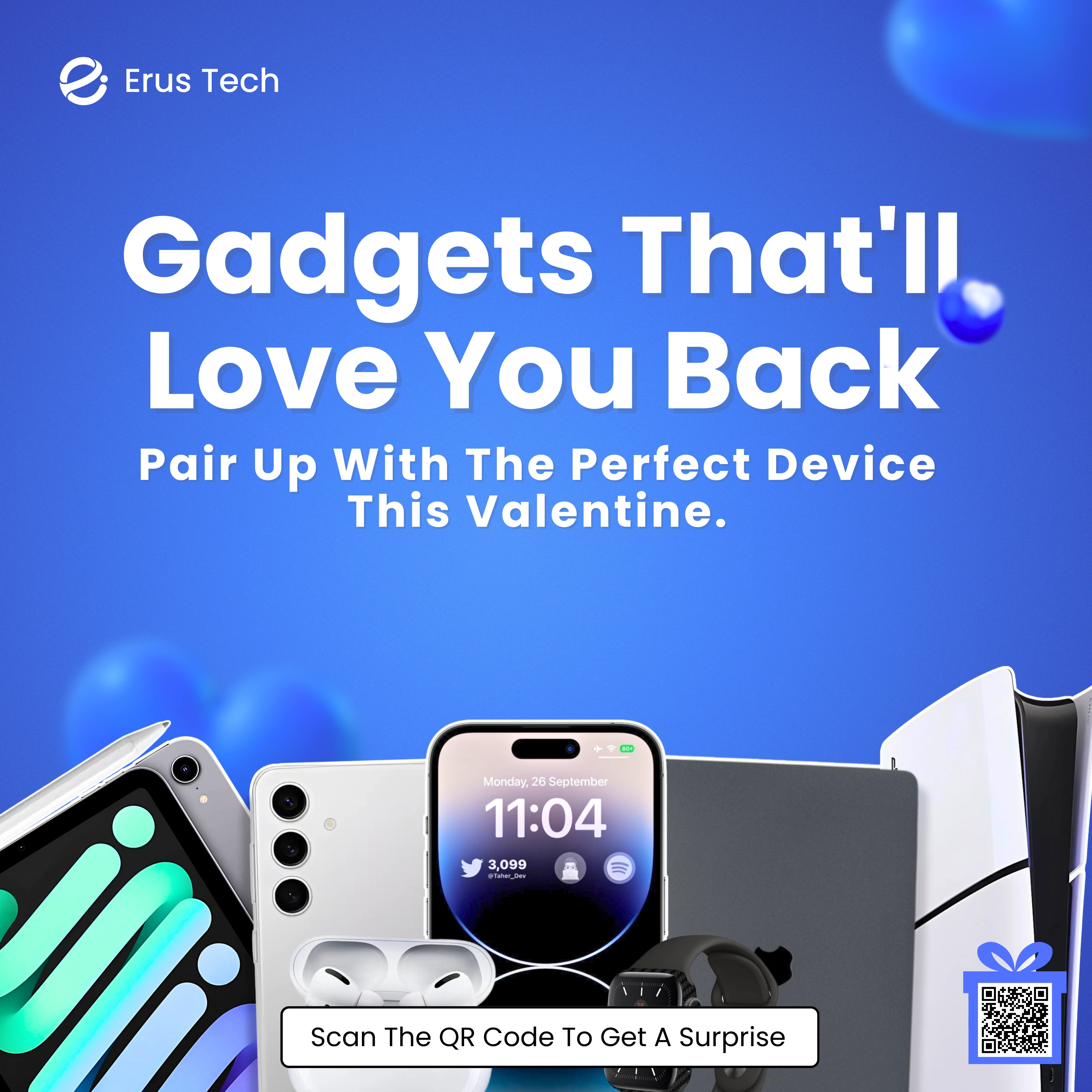 Valentine's tech campaign with creative concepts, graphic design, and copywriting, crafted using Canva and Lightroom for social media Ad campaign