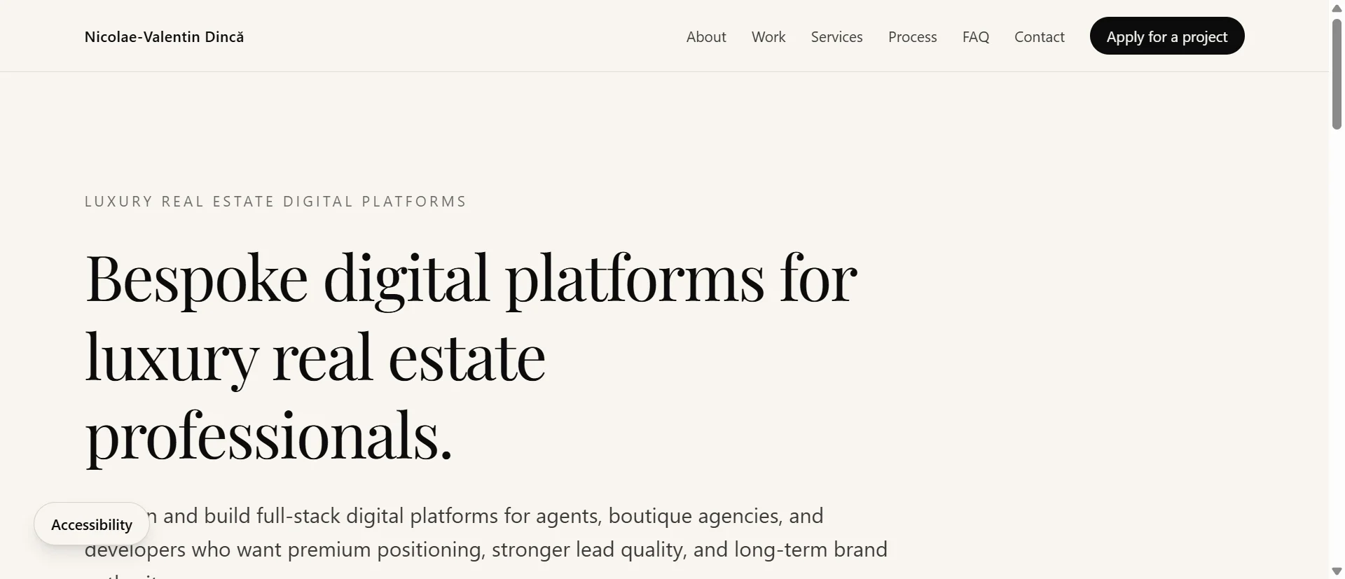 Digital platforms for agents, boutique agencies, and developers who want premium positioning, stronger lead quality, and long-term brand authority.