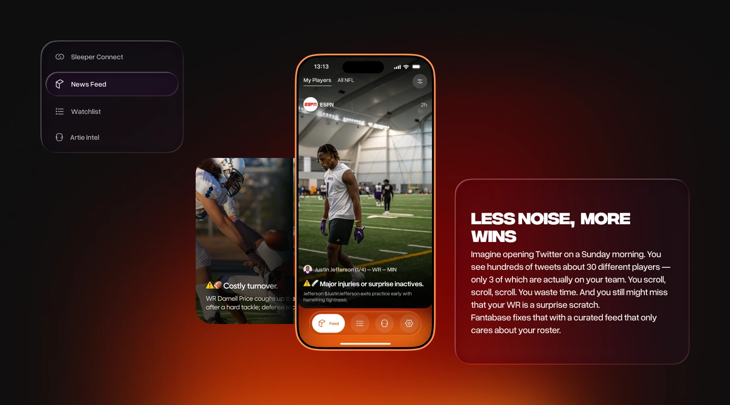 Fantabase is a mobile app designed to help fantasy football players make faster, smarter decisions by centralizing news, roster data, and AI-driven insights in one place. The goal was simple: reduce noise, save time, and give users an edge without overwhelming them.
