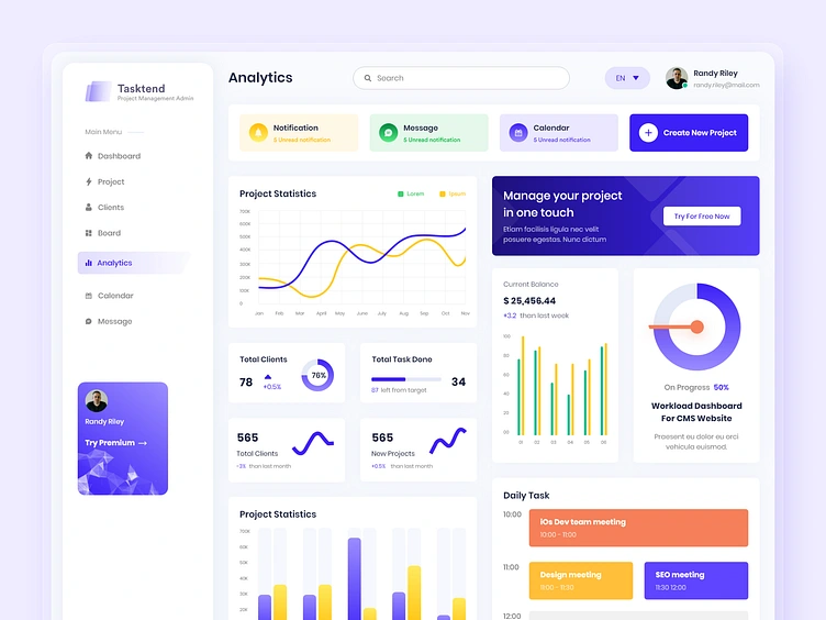 Tasnd is a modern & clean project management admin dashboard created by XD. The Dashboard is the perfect choice for company admin, project manager, email dashboard, project analyst, calendar dashboard, or any other admin dashboard website. ..............................................................................................
