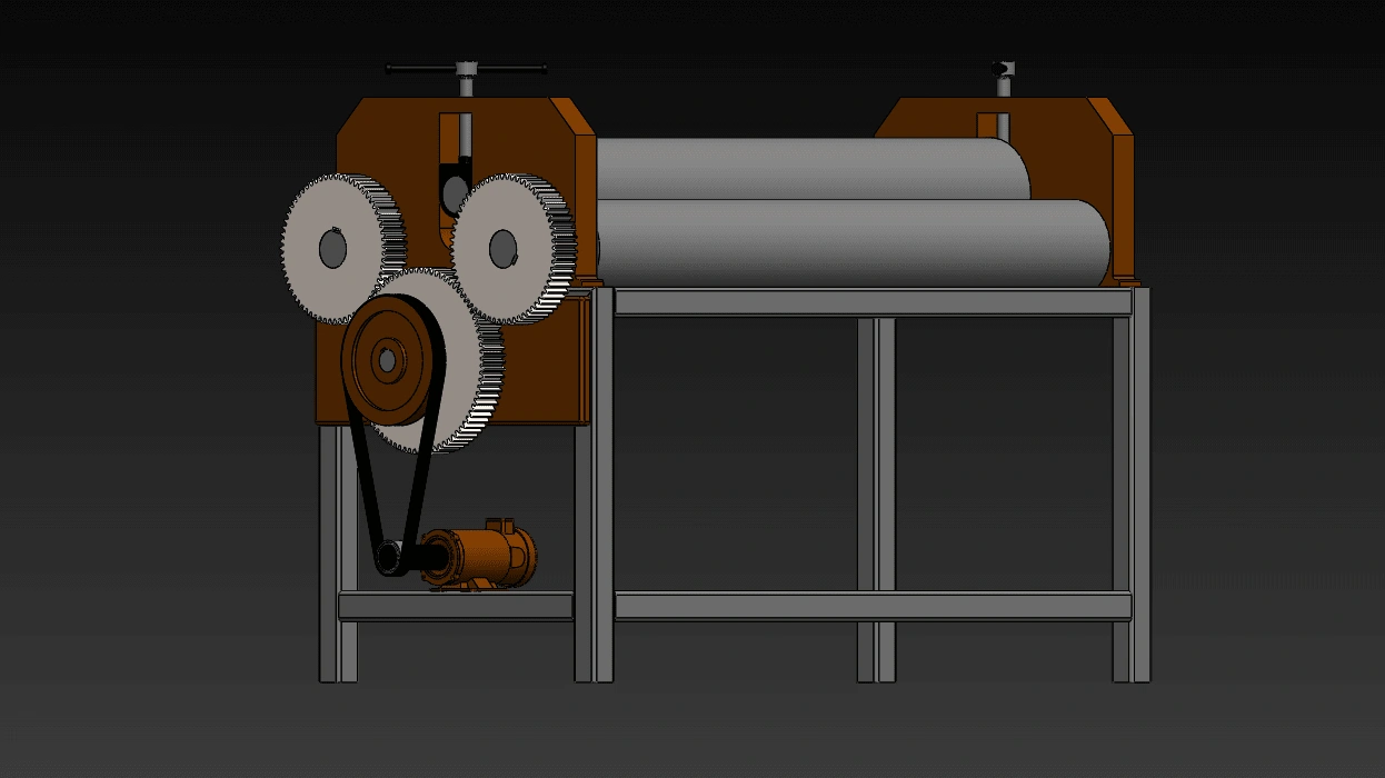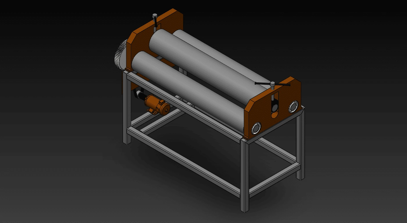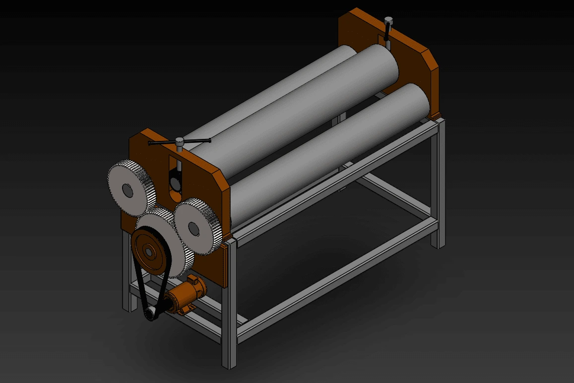 A high-quality 3D model of a bending roller machine designed using SolidWorks CAD software.