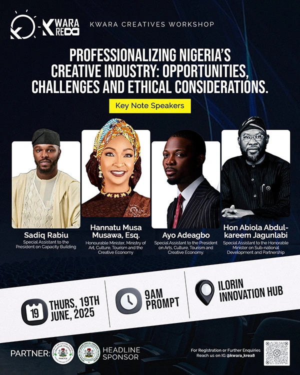 Kwara Kre8 is a dynamic initiative aimed at celebrating and empowering the creative industry in Kwara State, Nigeria. The 2025 edition themed “Professionalizing Nigeria’s Creative Industry: Opportunities, Challenges & Ethical Considerations” brought together creatives, thought leaders, and industry experts for a day of learning, networking, and growth.
