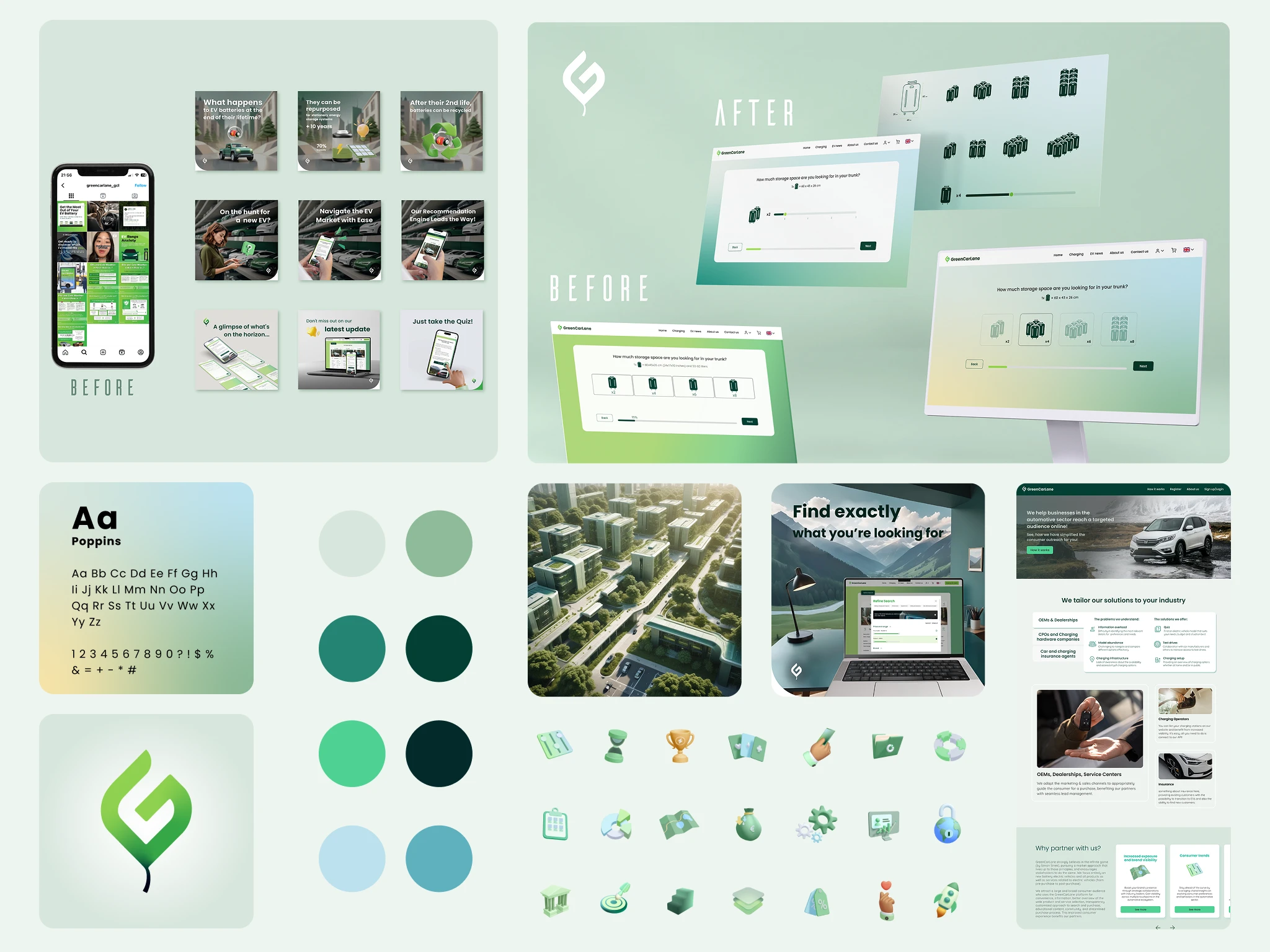 The redesign of GreenCarLane’s social media presence and user interface has elevated both engagement and functionality. The refined layout introduces a cohesive color scheme, consistent branding, and well-structured content focused on electric vehicles. Replacing the previous cluttered design, the platform now features visually appealing posts and interactive elements.