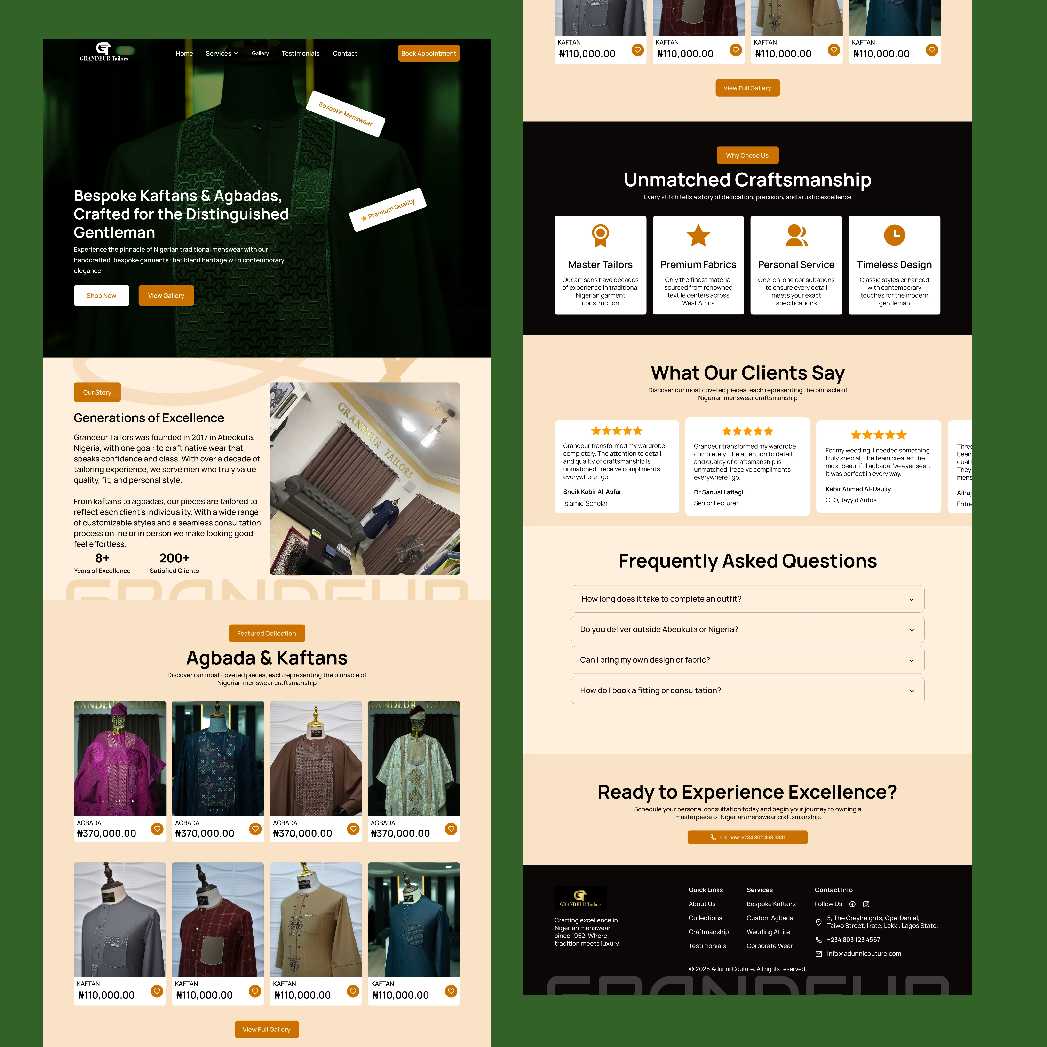 I was tasked to revamp the landing page for Grandeur Tailors, a fashion designing company that specializes in Males wear.