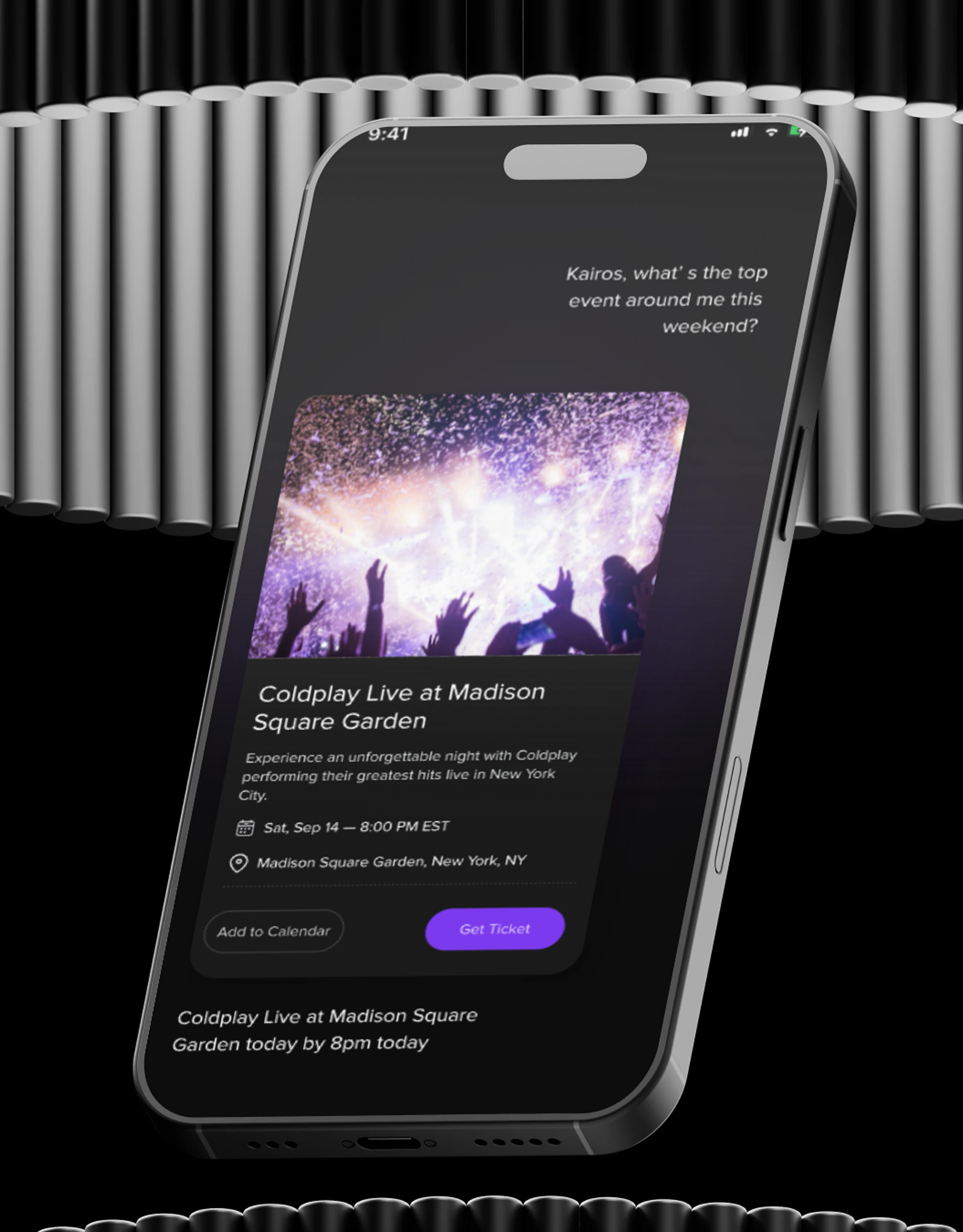 We designed the complete visual system, interaction patterns, onboarding flow, and all UI components that bring Kairos to life.