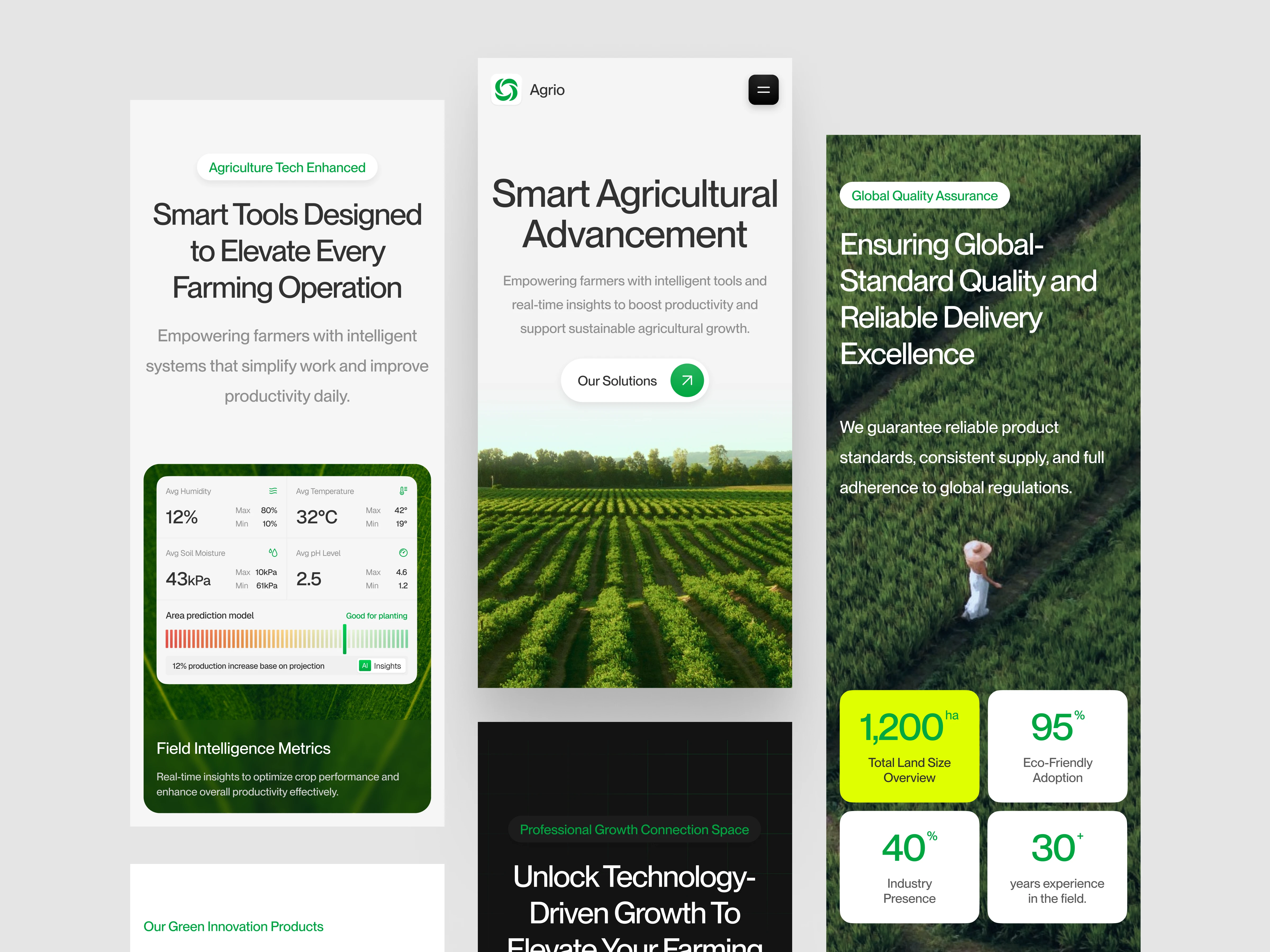 This exploration presents Agrio as a mobile-responsive agriculture landing page designed to translate complex farming insights into a clear and accessible mobile experience.