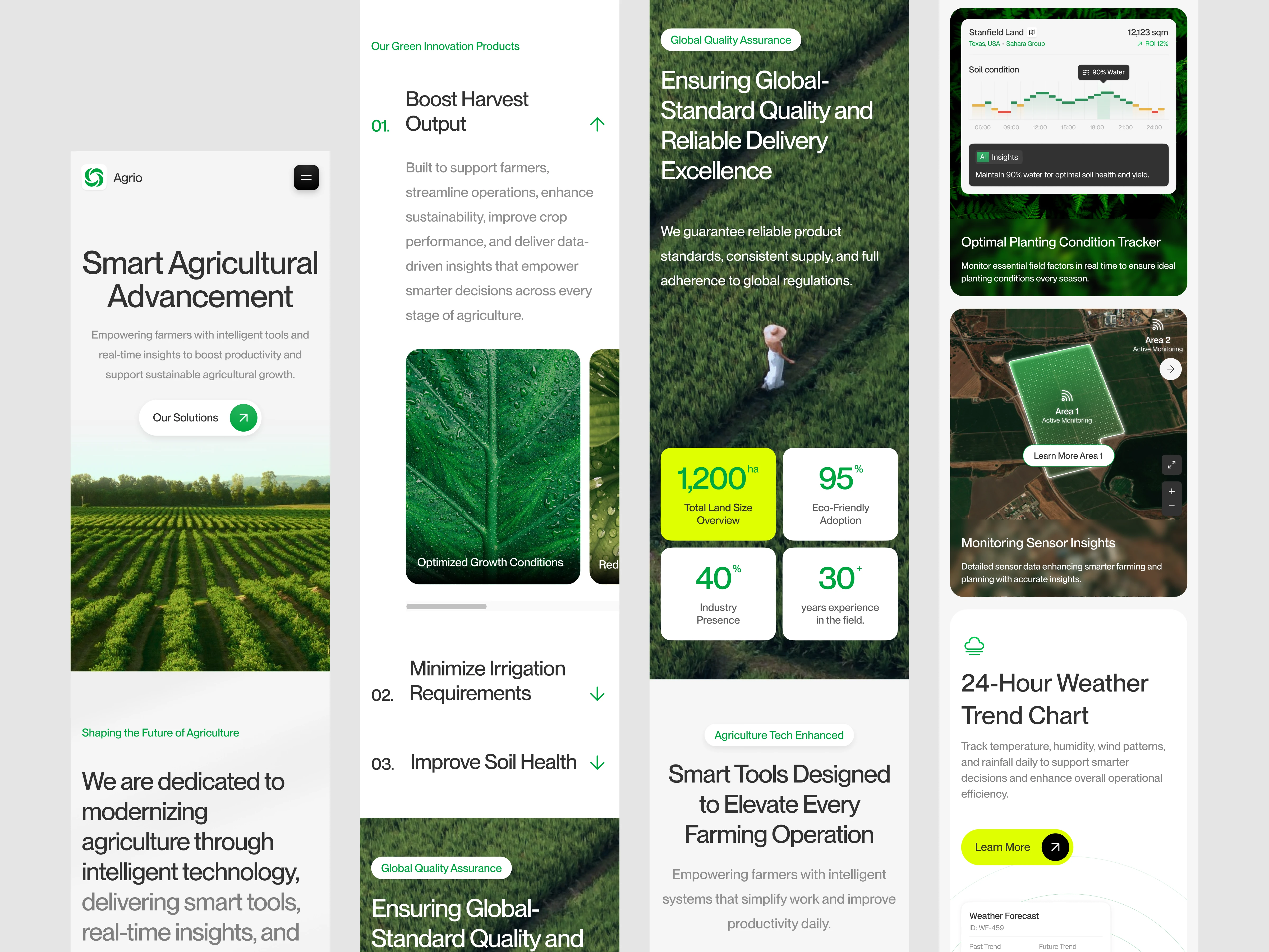 We adapted Agrio’s desktop experience into a mobile-first layout by prioritizing vertical flow, clear section hierarchy, and simplified data cards. Visual storytelling, readable typography, and touch-friendly components ensure smooth navigation across screen sizes.