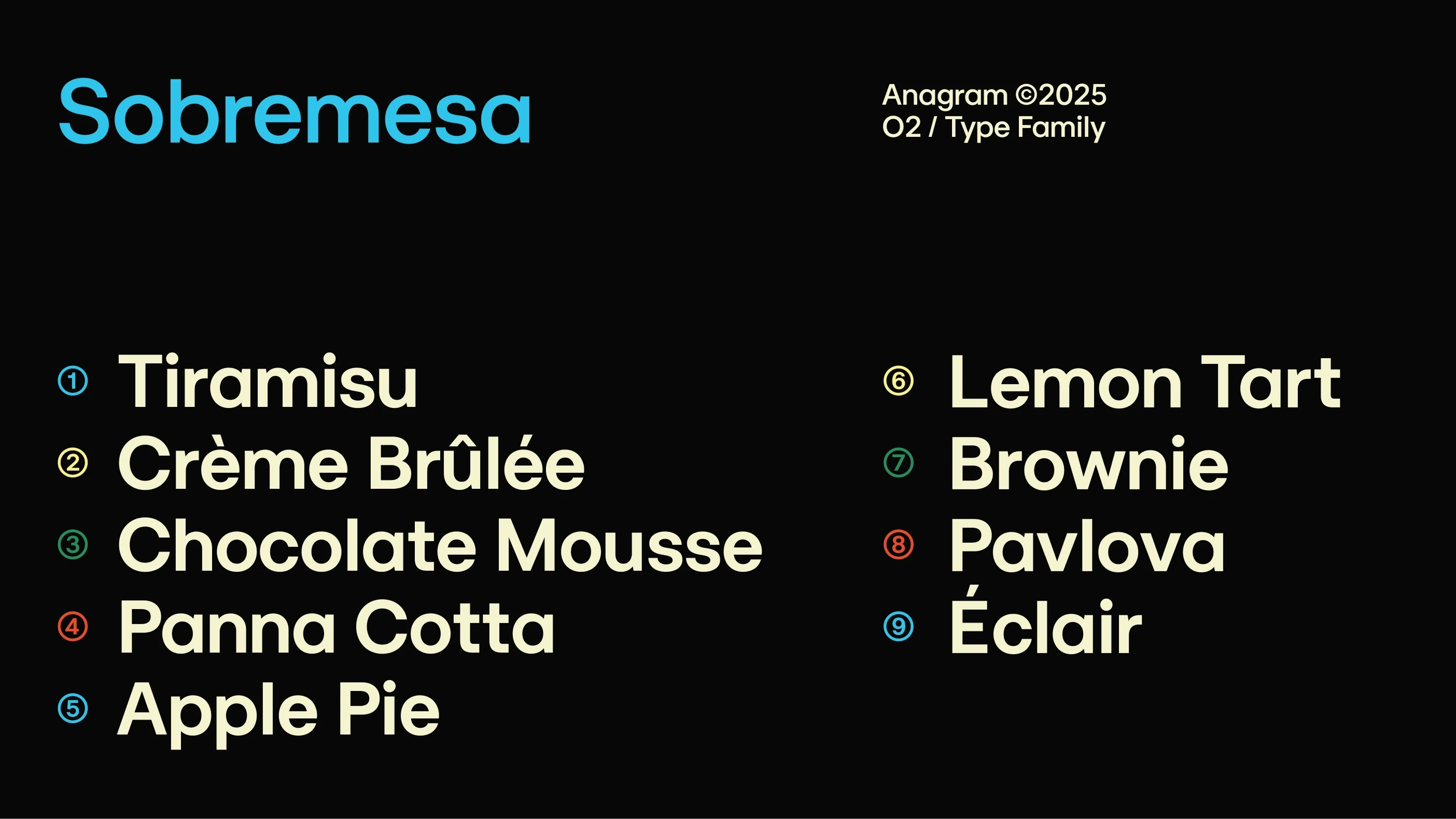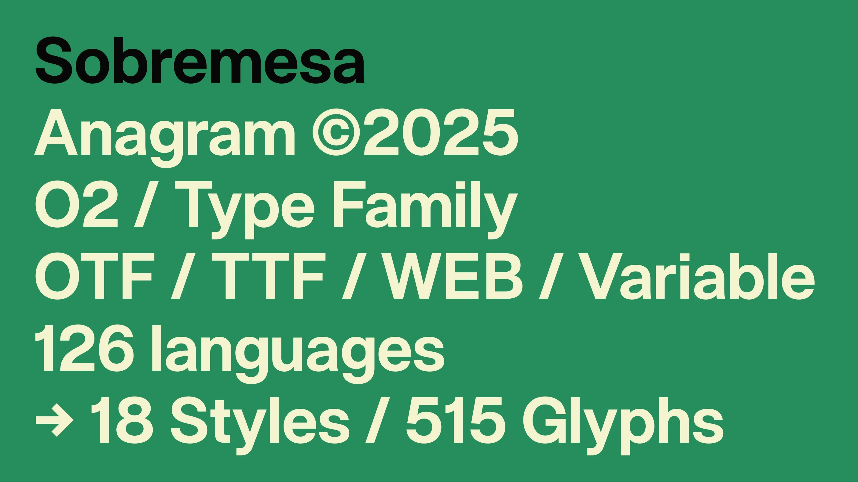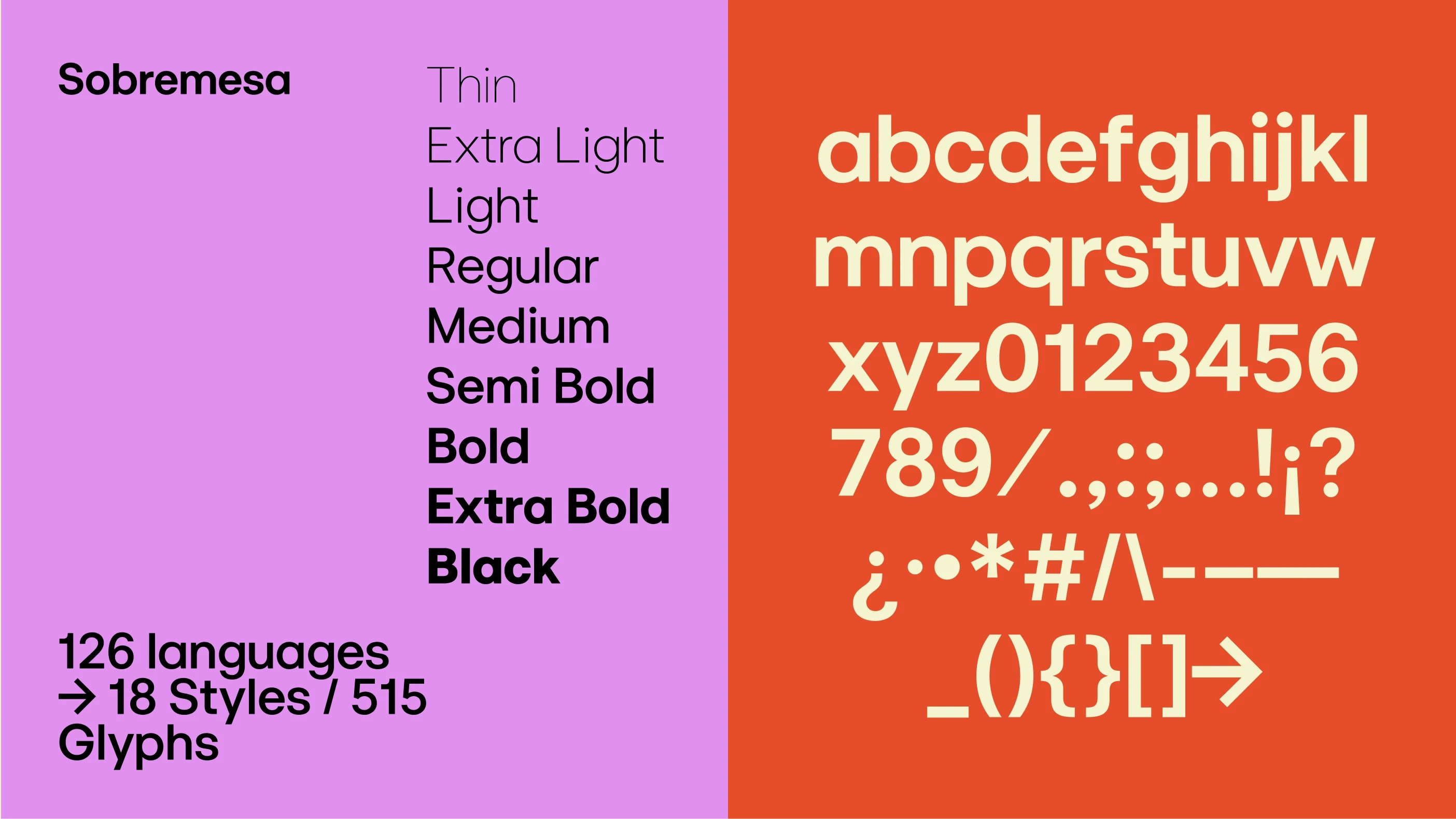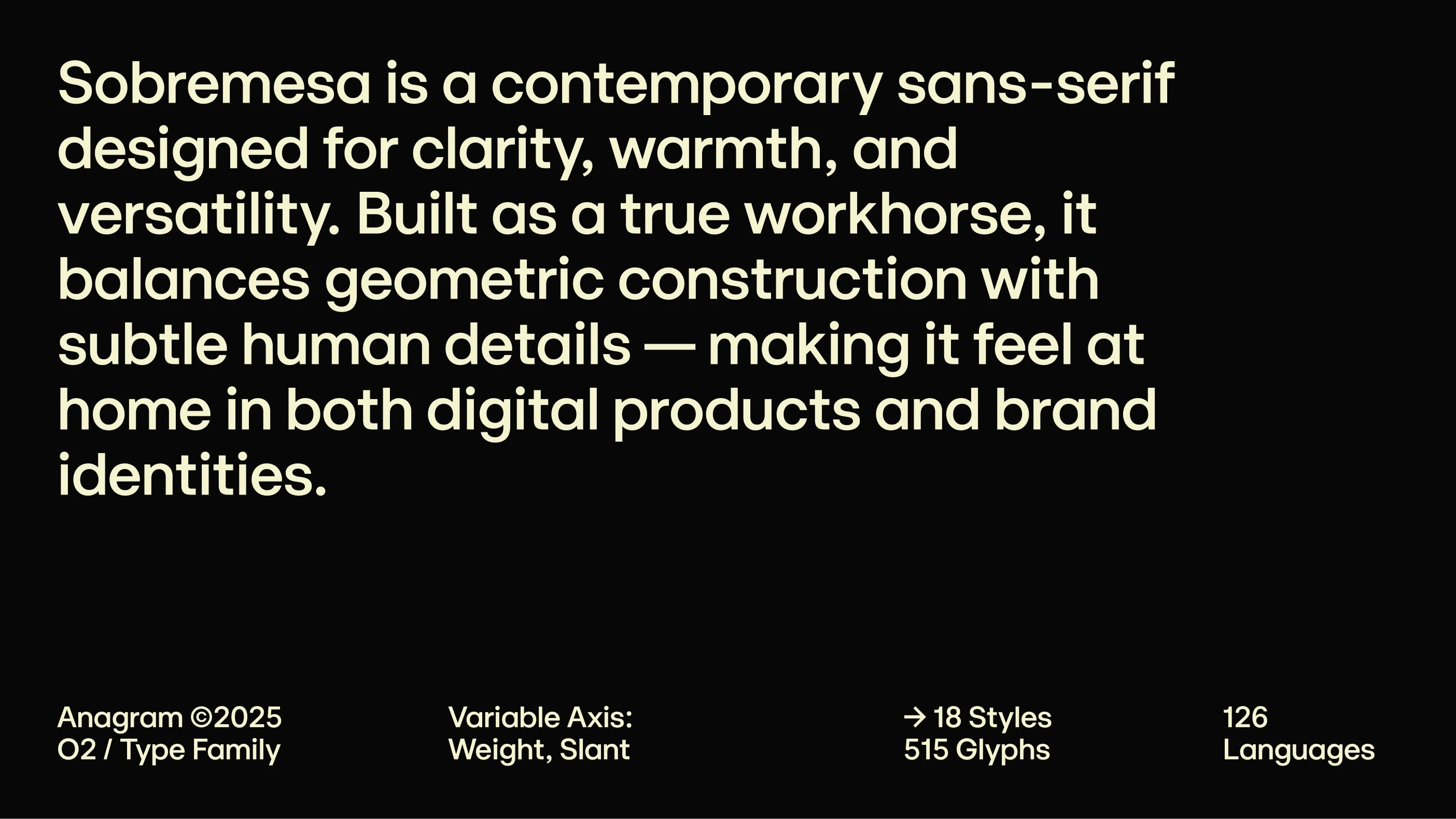 Sobremesa is a contemporary sans-serif designed for clarity, warmth, and versatility.