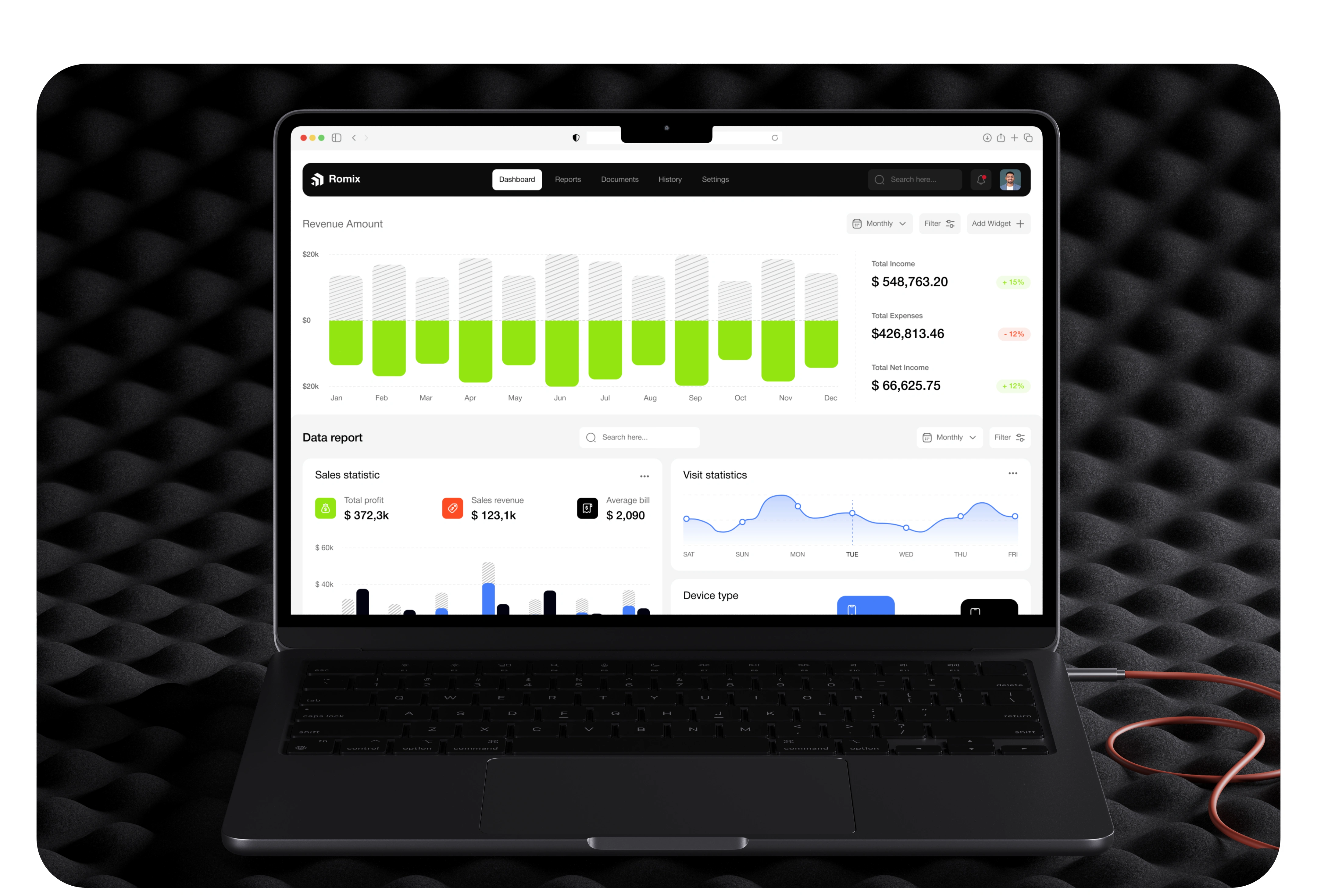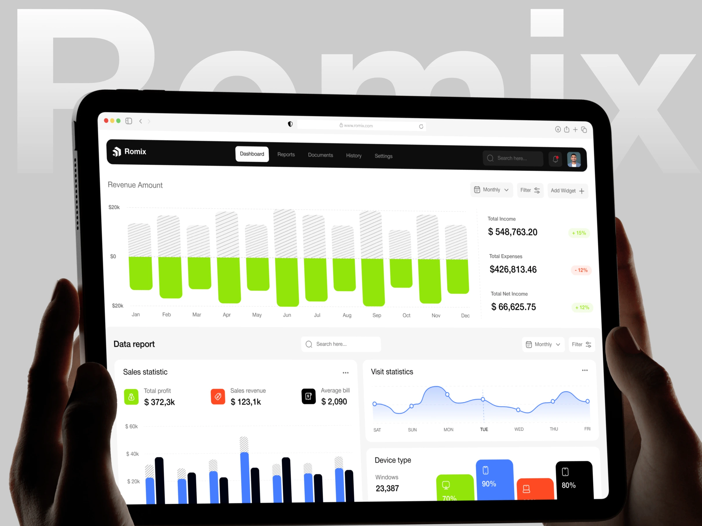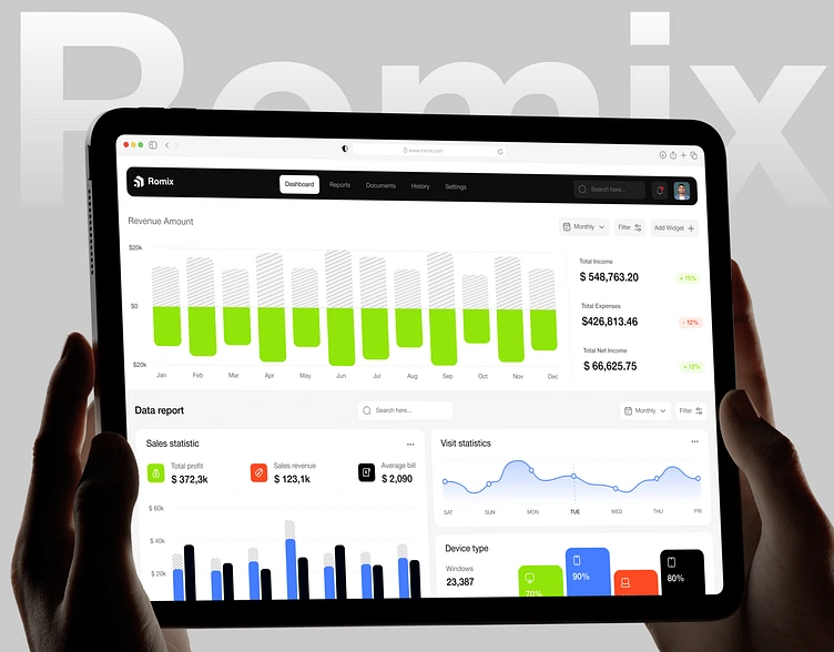 1. Overview: Romix is a sleek, intuitive dashboard UI concept designed to simplify complex business data into clear, actionable insights. The platform helps users monitor KPIs, track performance, and make informed decisionsβall in one place.