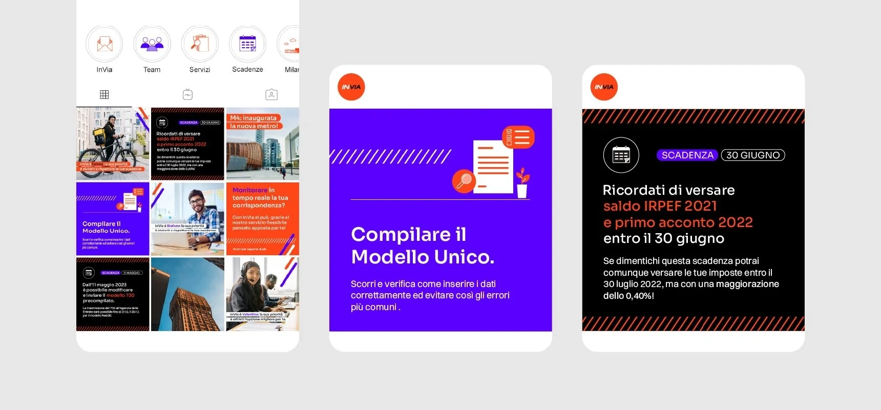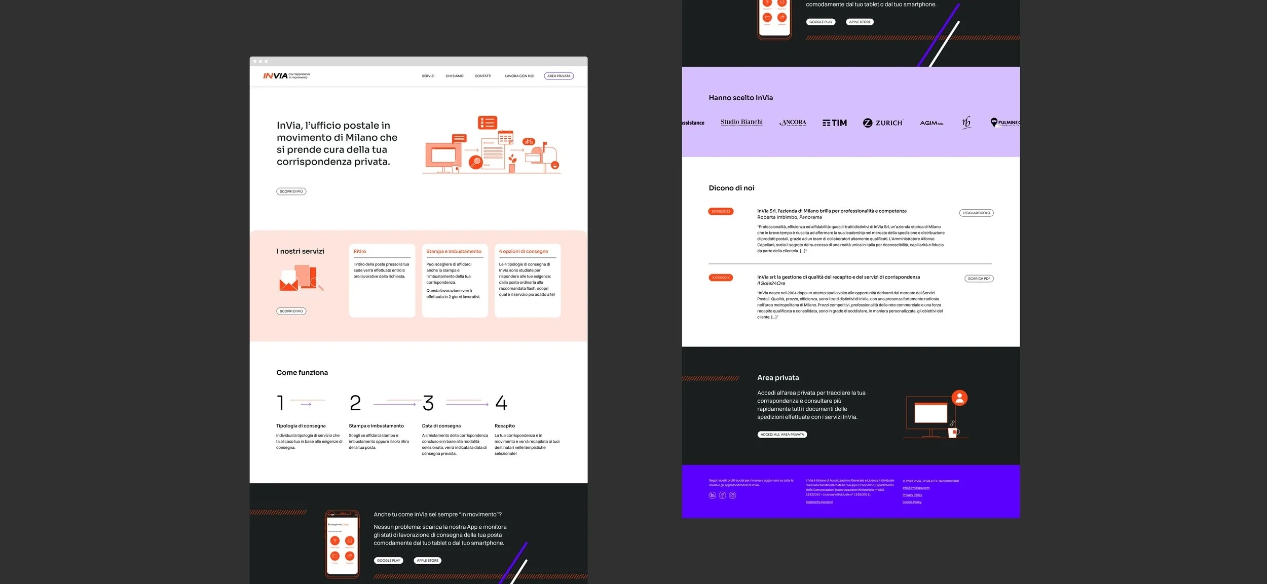 The communication of a continuously evolving service passes through the development of lively but without excess branding. Starting from the restyling of the logo, the sense of movement has been accentuated through the use of diagonal lines and a bright color palette which conveys a sense of reliability inherent to the company. At the same time, the illustrations allow to lighten more serious tones and contents.