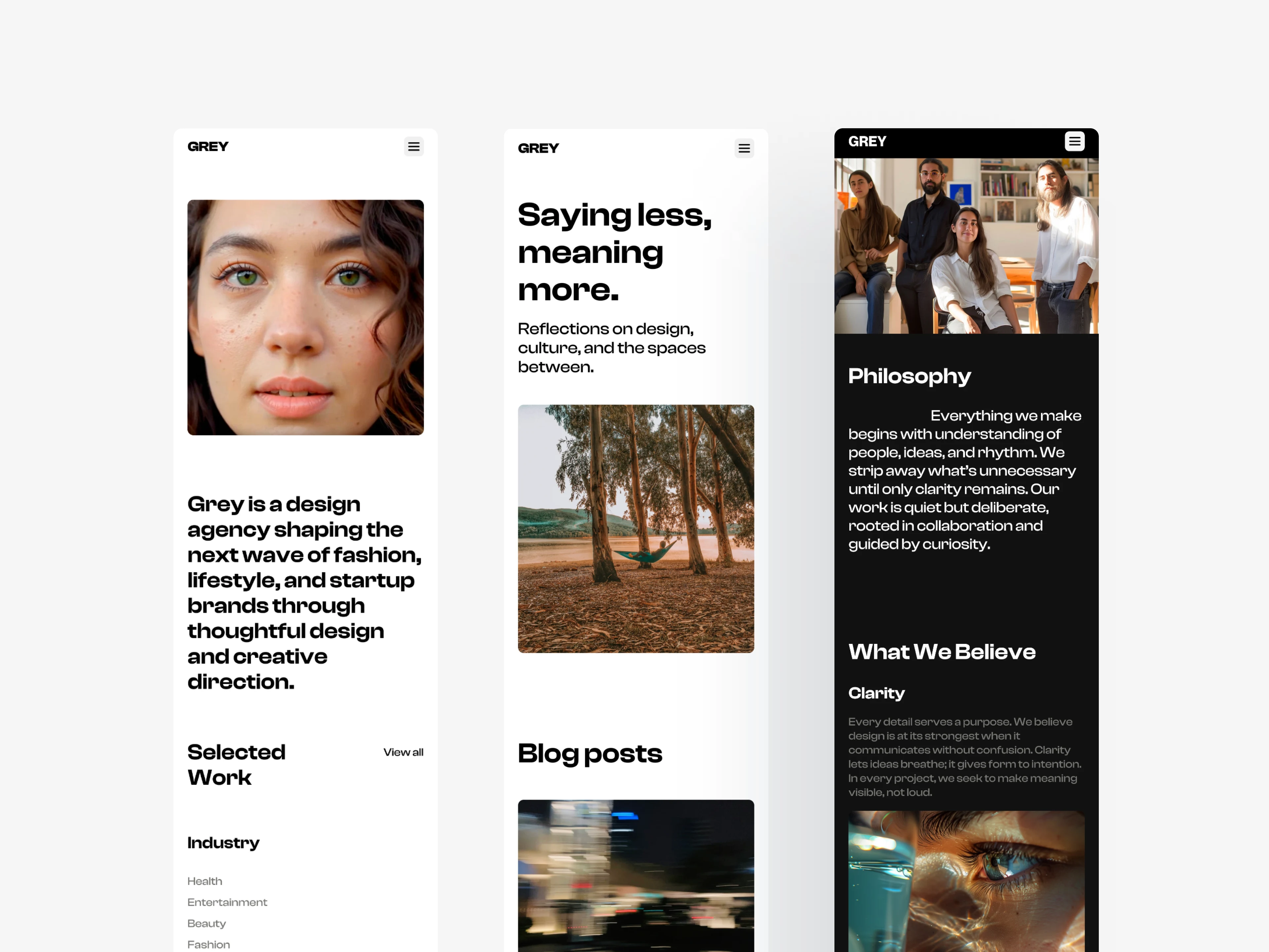 I designed and built a full Framer website for Greyhouse, a forward‑thinking design agency that showcases creative work across multiple industries like fashion, health, entertainment, and technology. The goal was to translate their brand identity into a clean, responsive, visually engaging website that highlights their services and portfolio effectively