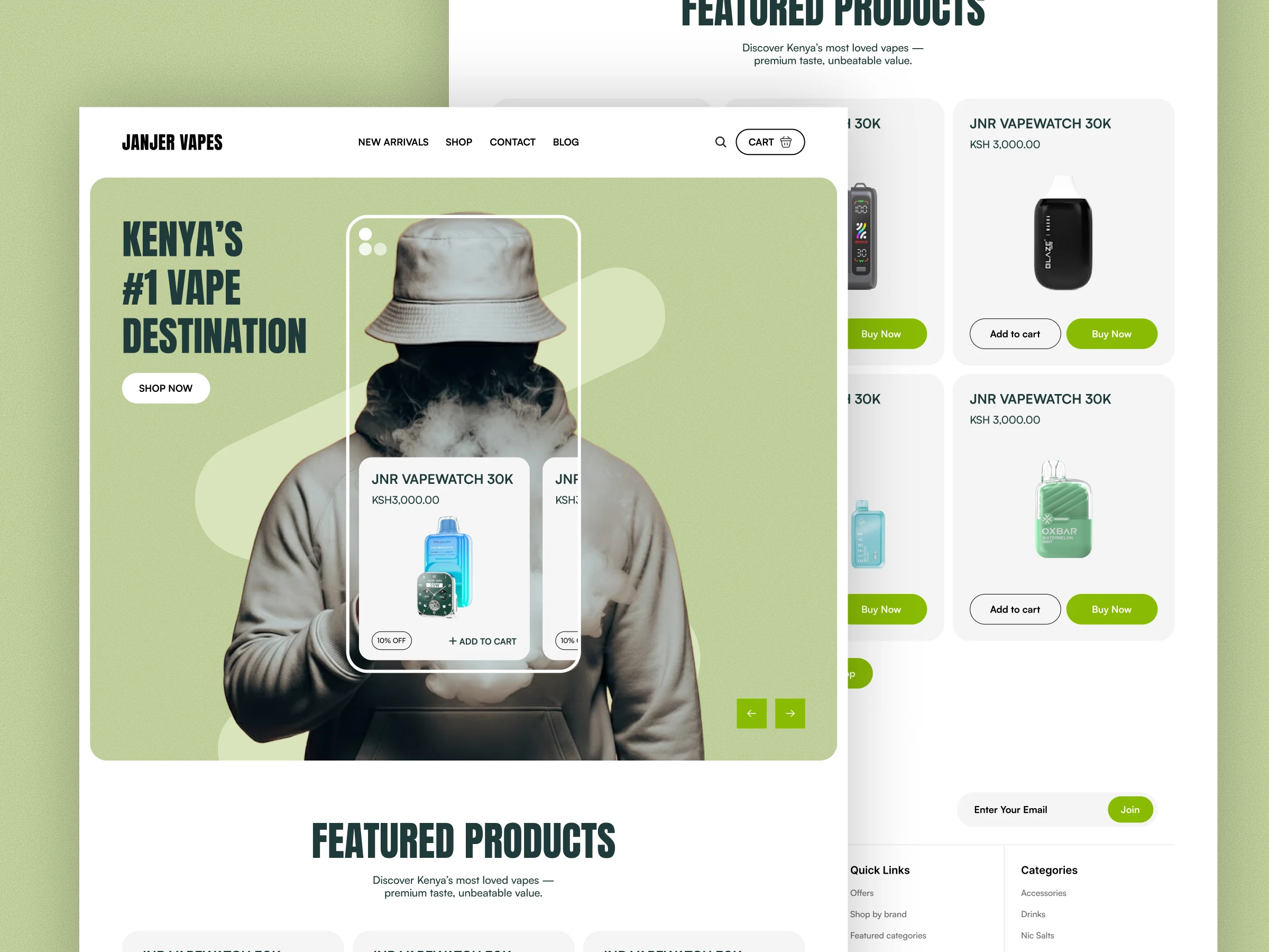 Designed a modern and clean UI/UX for Kenya's top vape store using Figma.