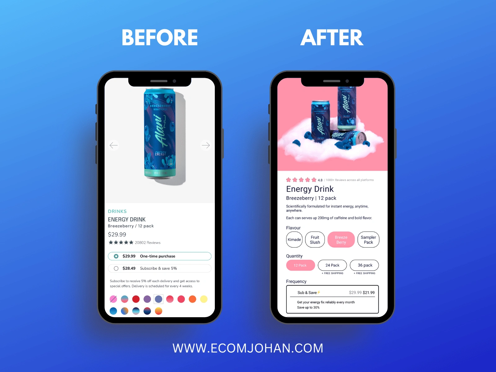 Redesigned Alani Nu's current website to make it more visually appealing and higher converting.