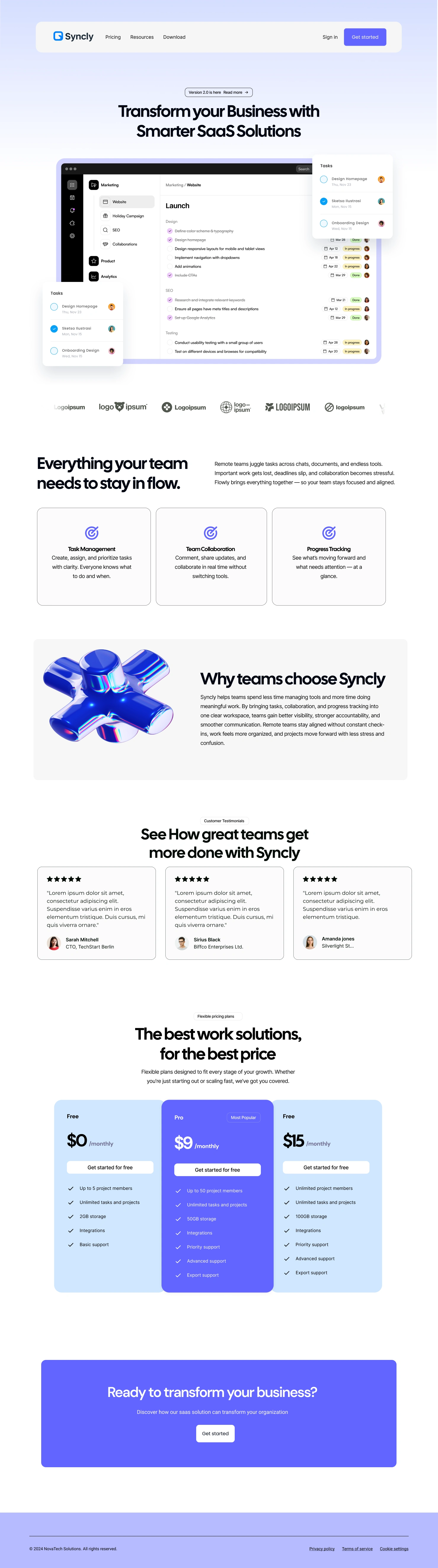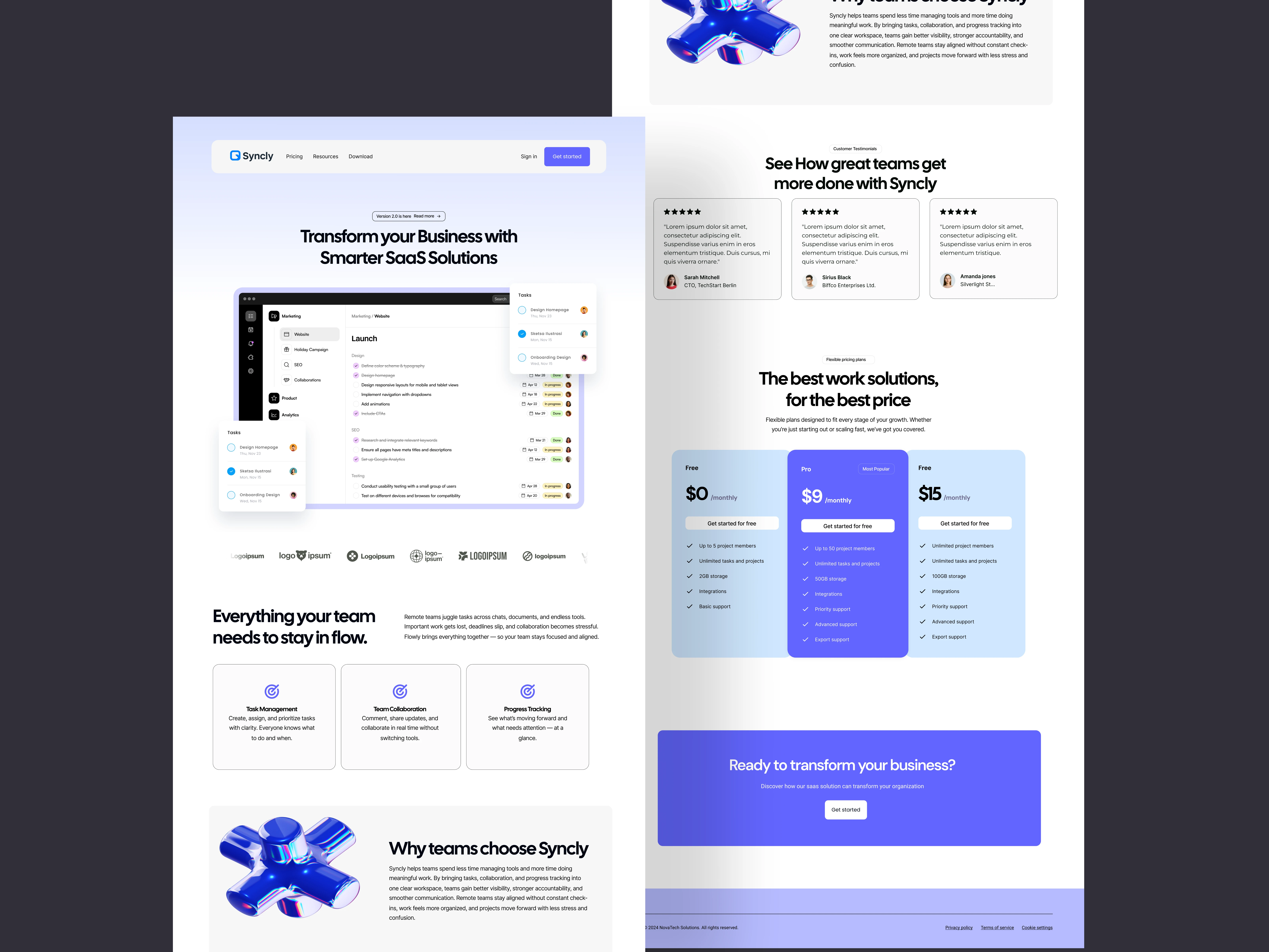 The process began with research into established SaaS websites to understand common user expectations around layout, content hierarchy, and conversion patterns. These insights informed the overall website structure, ensuring a clear and logical flow from discovery to feature understanding and finally to action. The emphasis at this stage was on clarity, scannability, and reducing cognitive load.