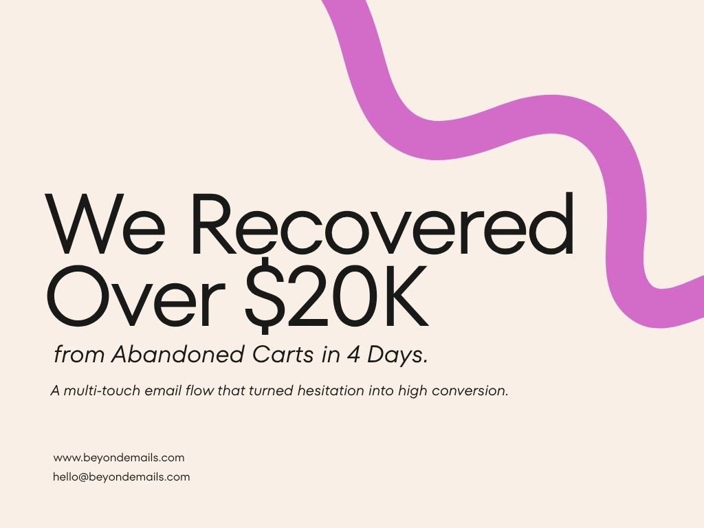 By aligning timing, tone, and behavior-based logic, we turned abandoned carts into a $20K+ revenue win—without a single ad dollar spent.