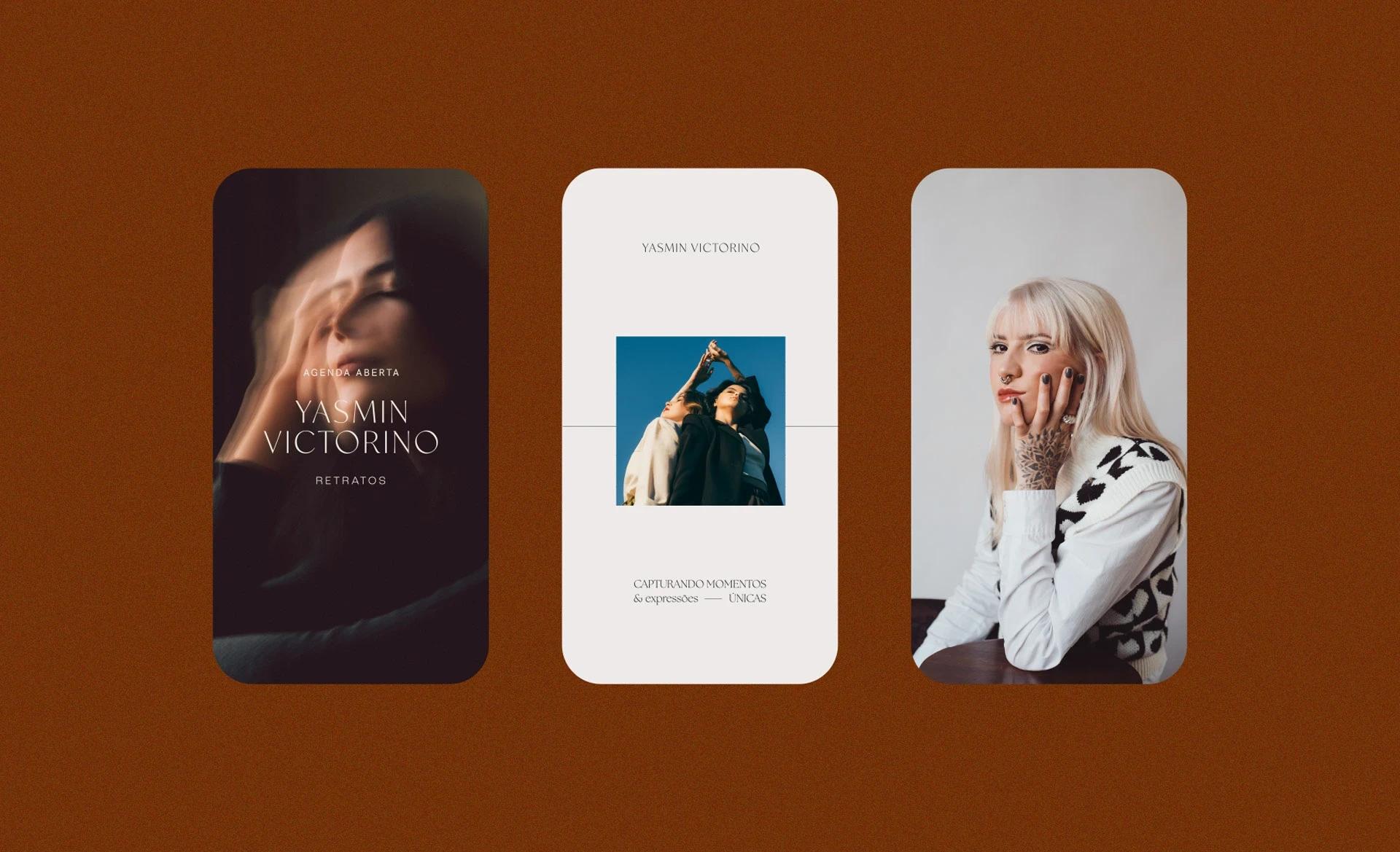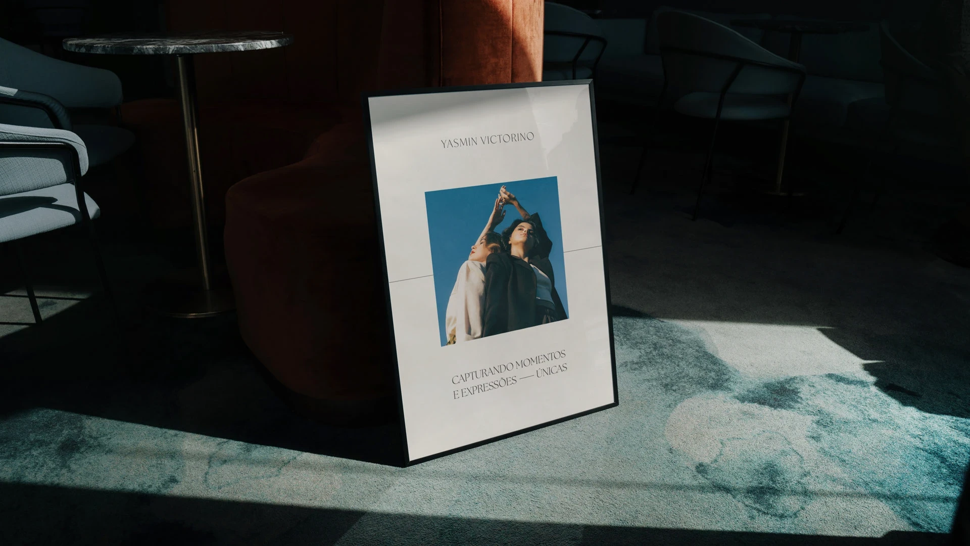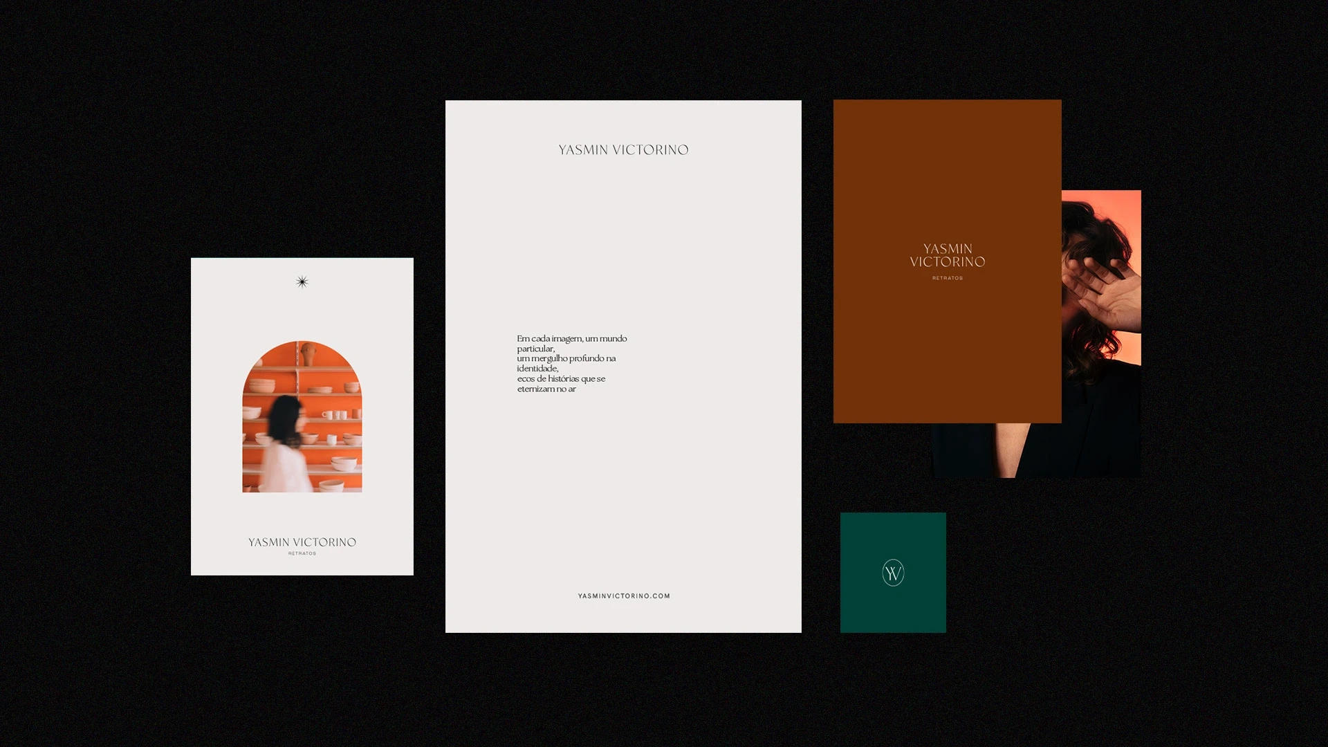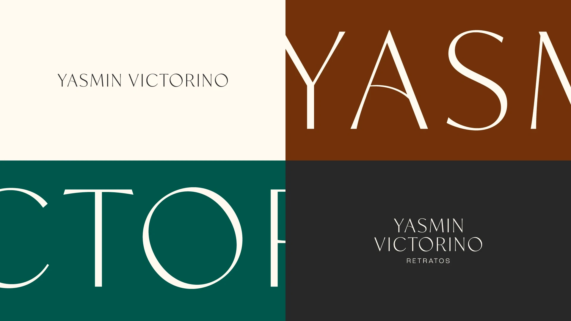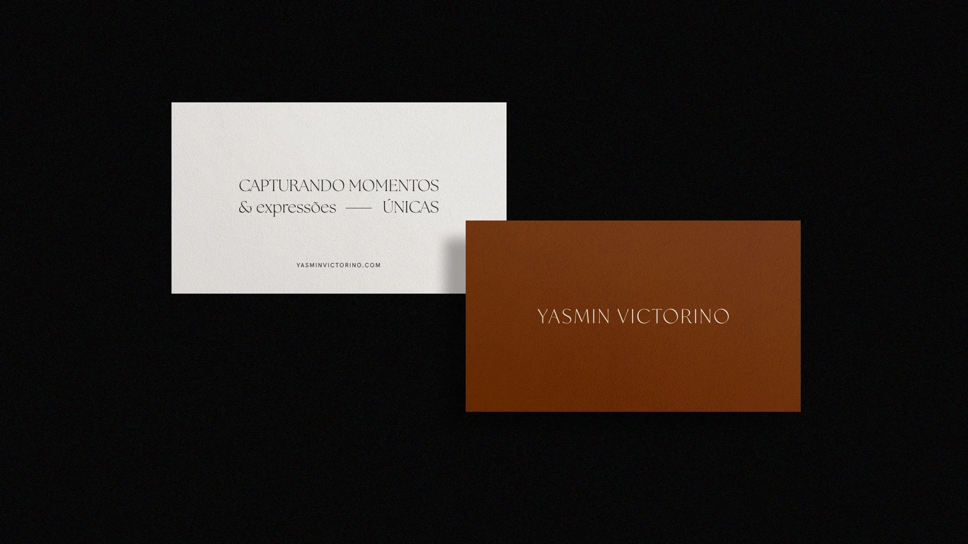 Yasmin Victorino is a photographer specializing in sensitive, subtle, minimalist, strong, and emotionally charged portraits. Through her camera, she materializes her idealizations, aiming to bring a new and captivating version to those in front of her lenses. I created an elegant, minimalist visual identity that reflects Yasmin's personality. The color palette establishes a visual harmony that attracts and engrosses, providing a pleasant and memorable aesthetic experience.