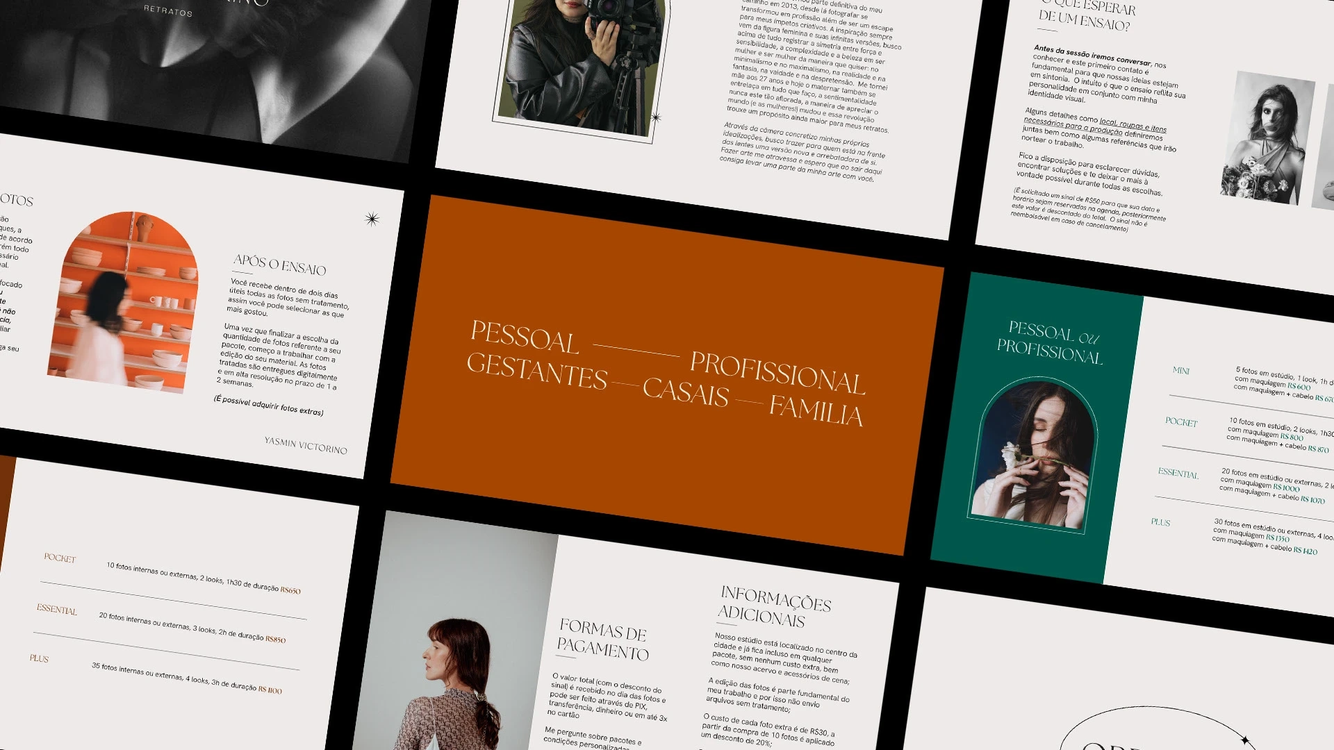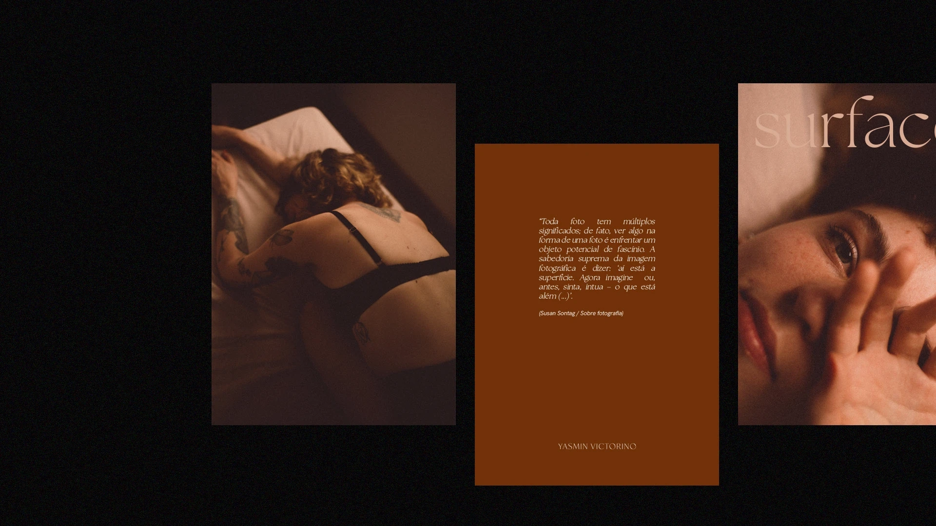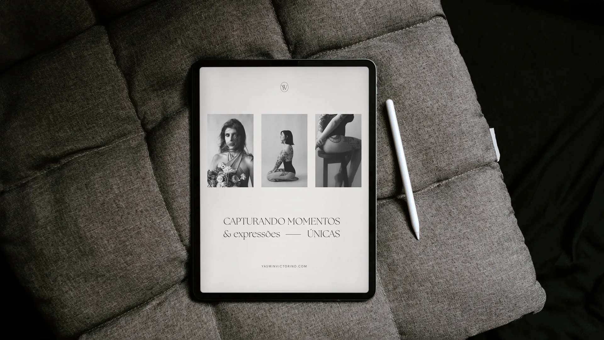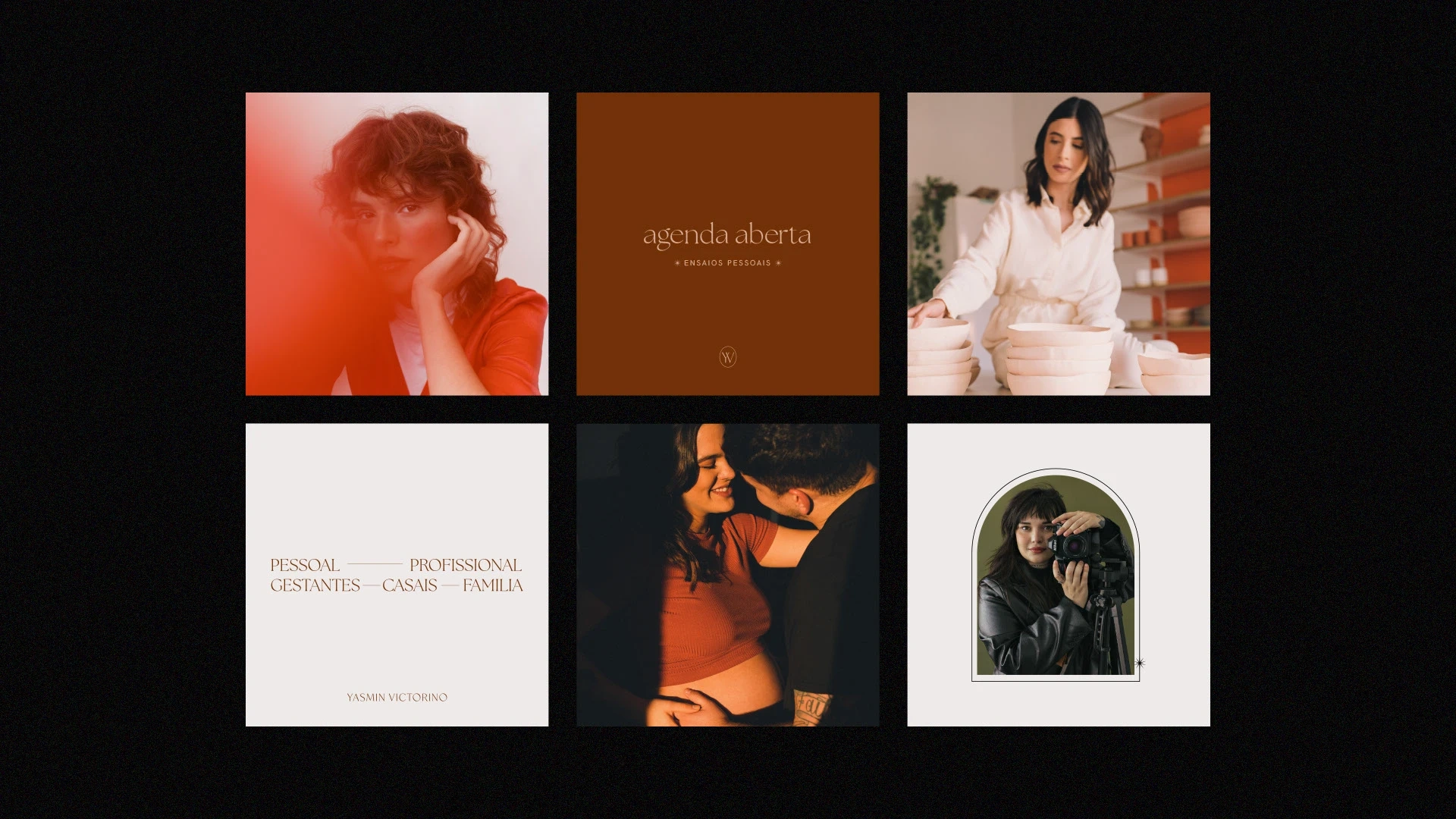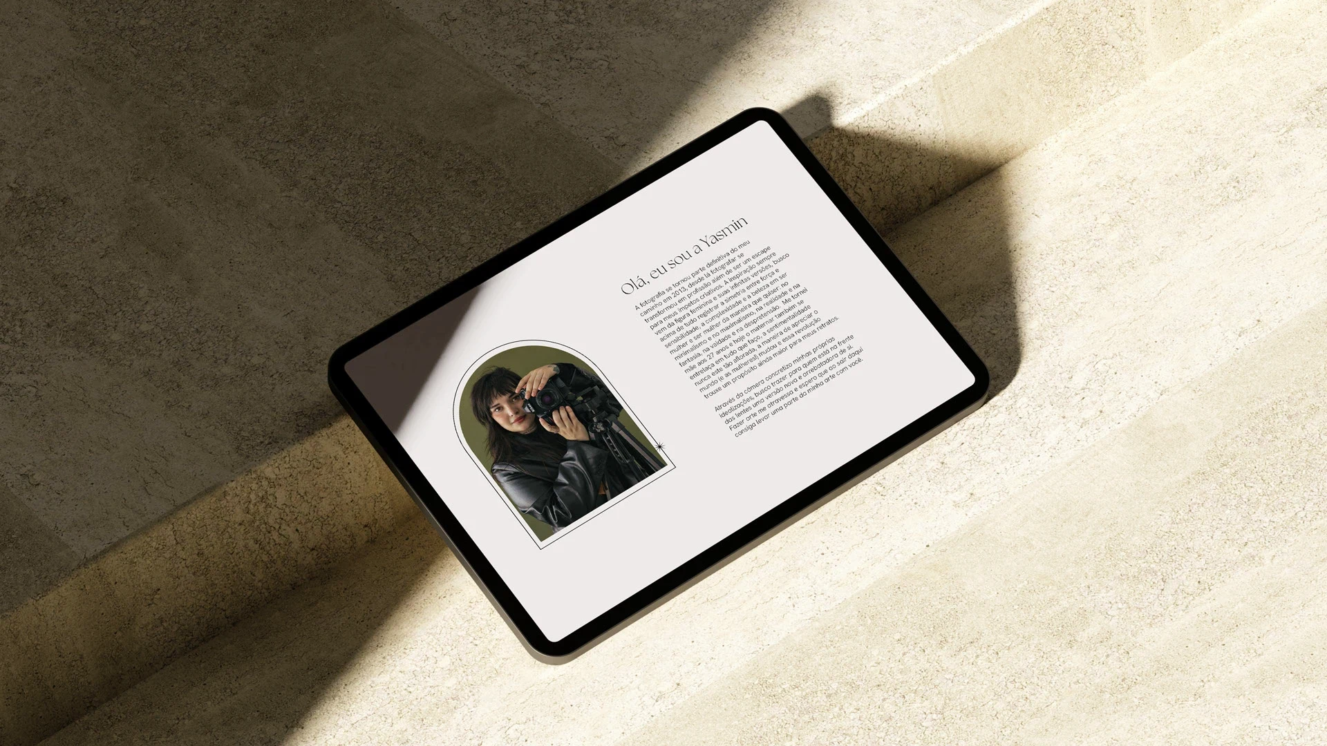 Yasmin Victorino is a photographer specializing in sensitive, subtle, minimalist, strong, and emotionally charged portraits. Through her camera, she materializes her idealizations, aiming to bring a new and captivating version to those in front of her lenses. I created an elegant, minimalist visual identity that reflects Yasmin's personality. The color palette establishes a visual harmony that attracts and engrosses, providing a pleasant and memorable aesthetic experience.