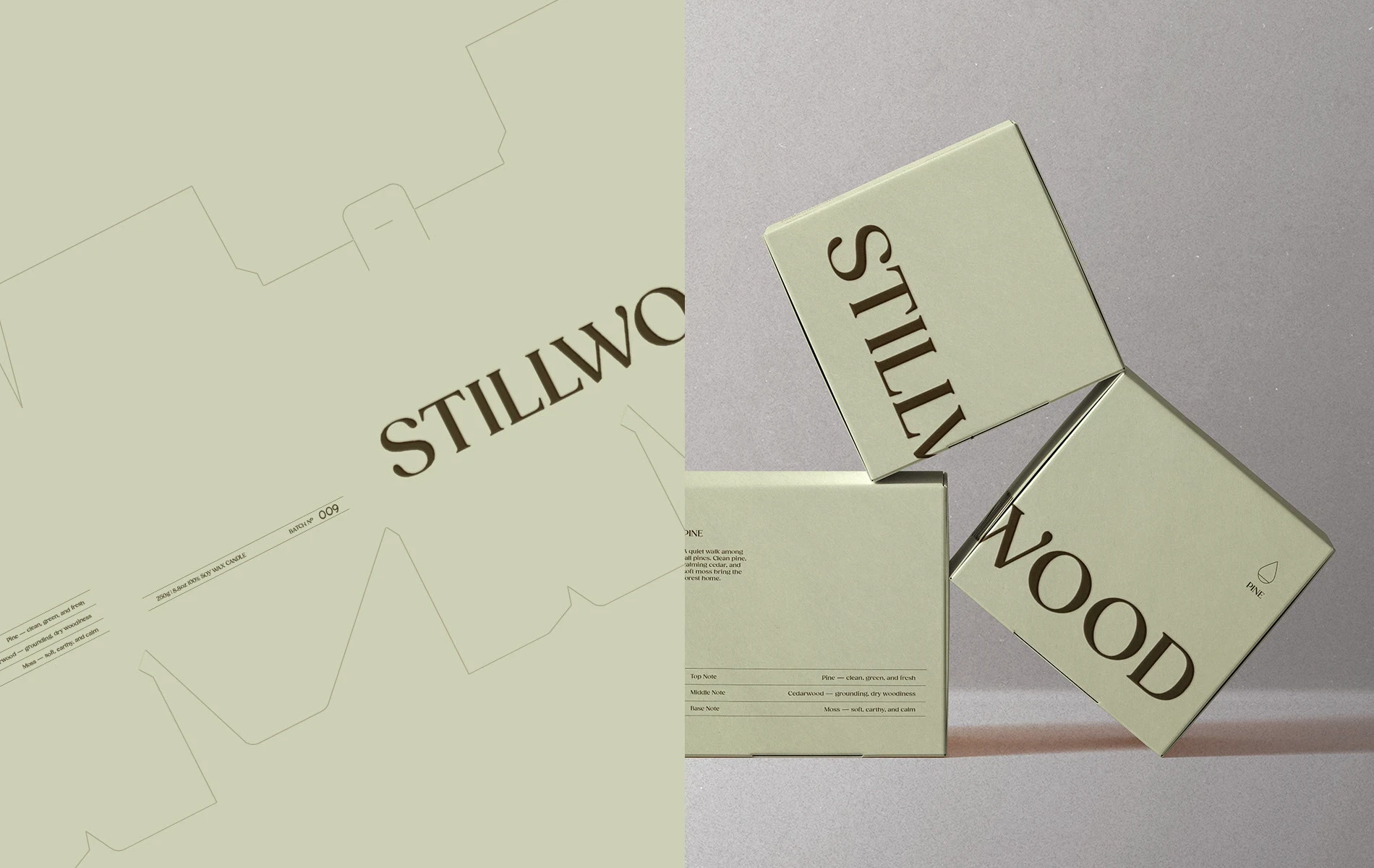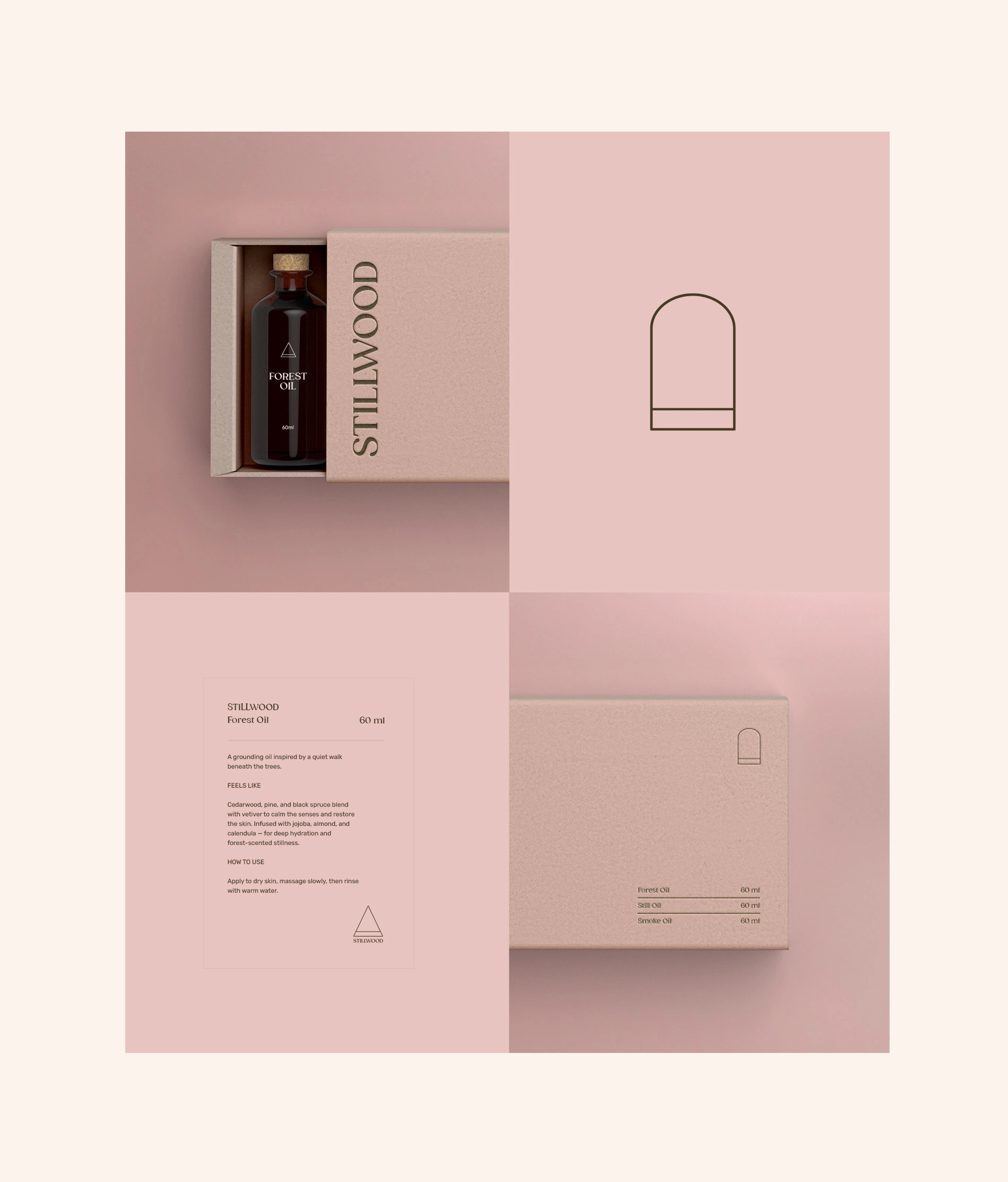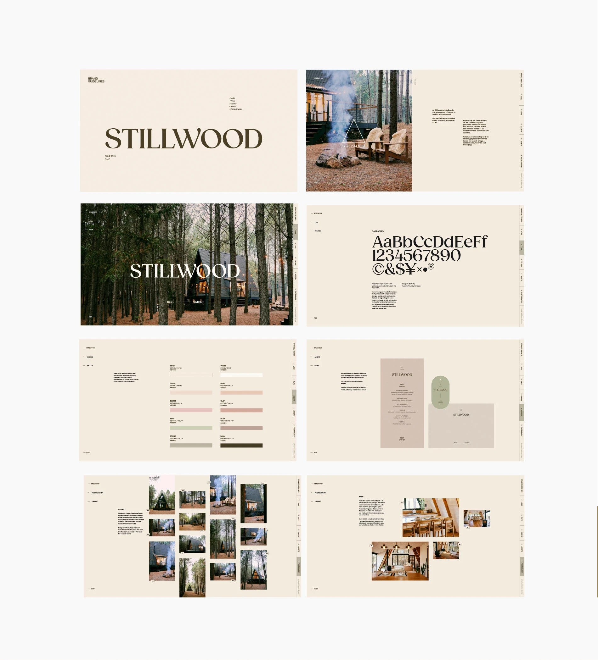 I created the full STILLWOOD brand — this included naming, logo design, typography, colour palette, packaging, as well as shaping the guest experience.