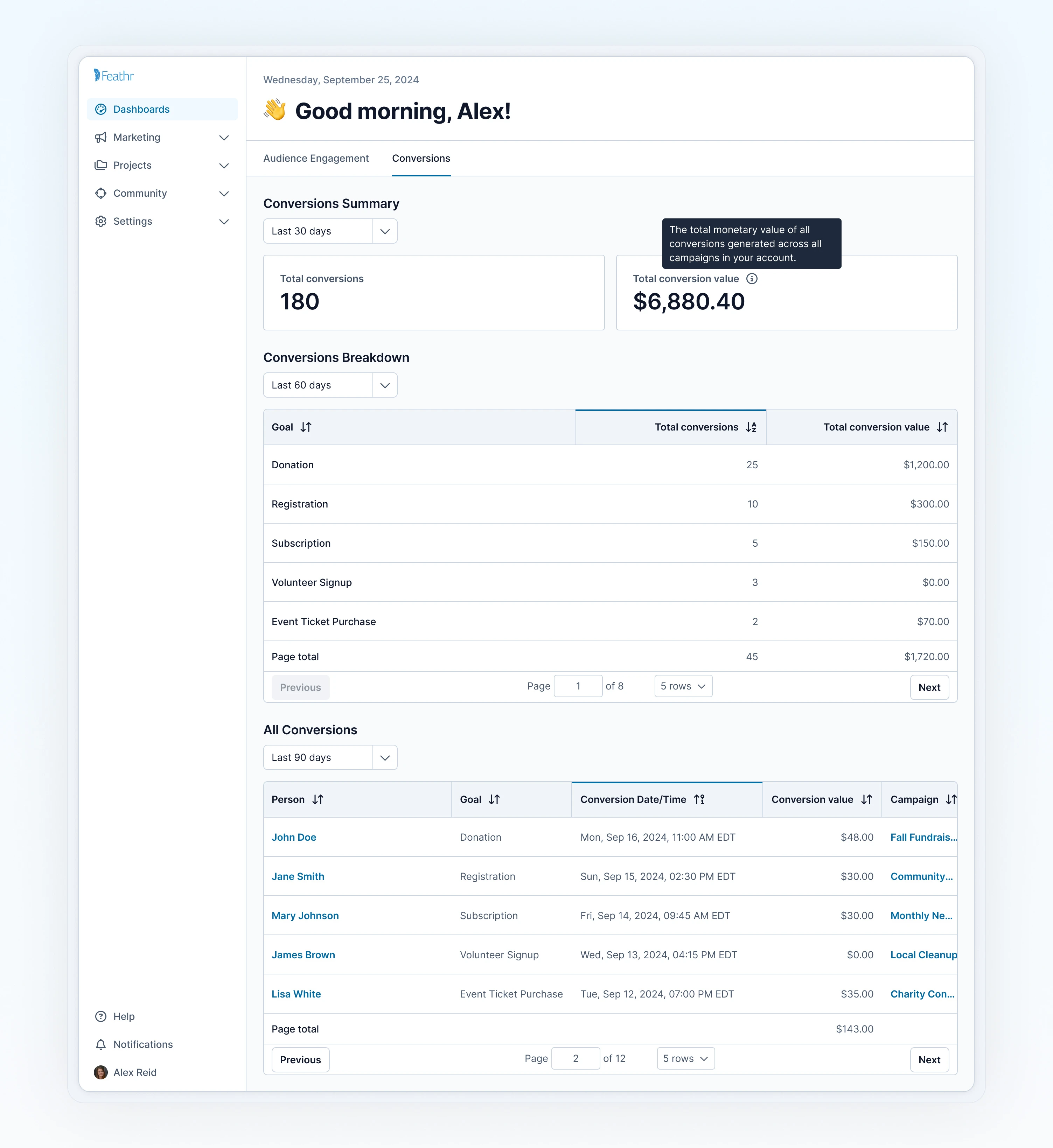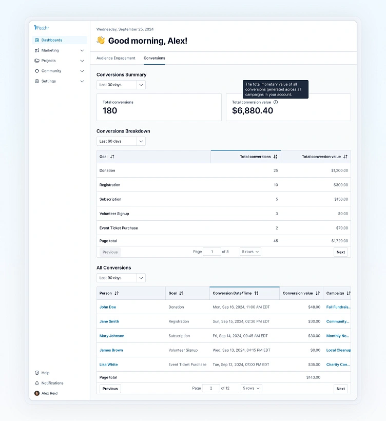Tracking conversions is about to get a whole lot easier! ๐ฏ With Feathrโs insights, you can see exactly how your campaigns are performing in real-time. #flywithfeathr#goodmarketing#digitalmarketing#nonprofittools