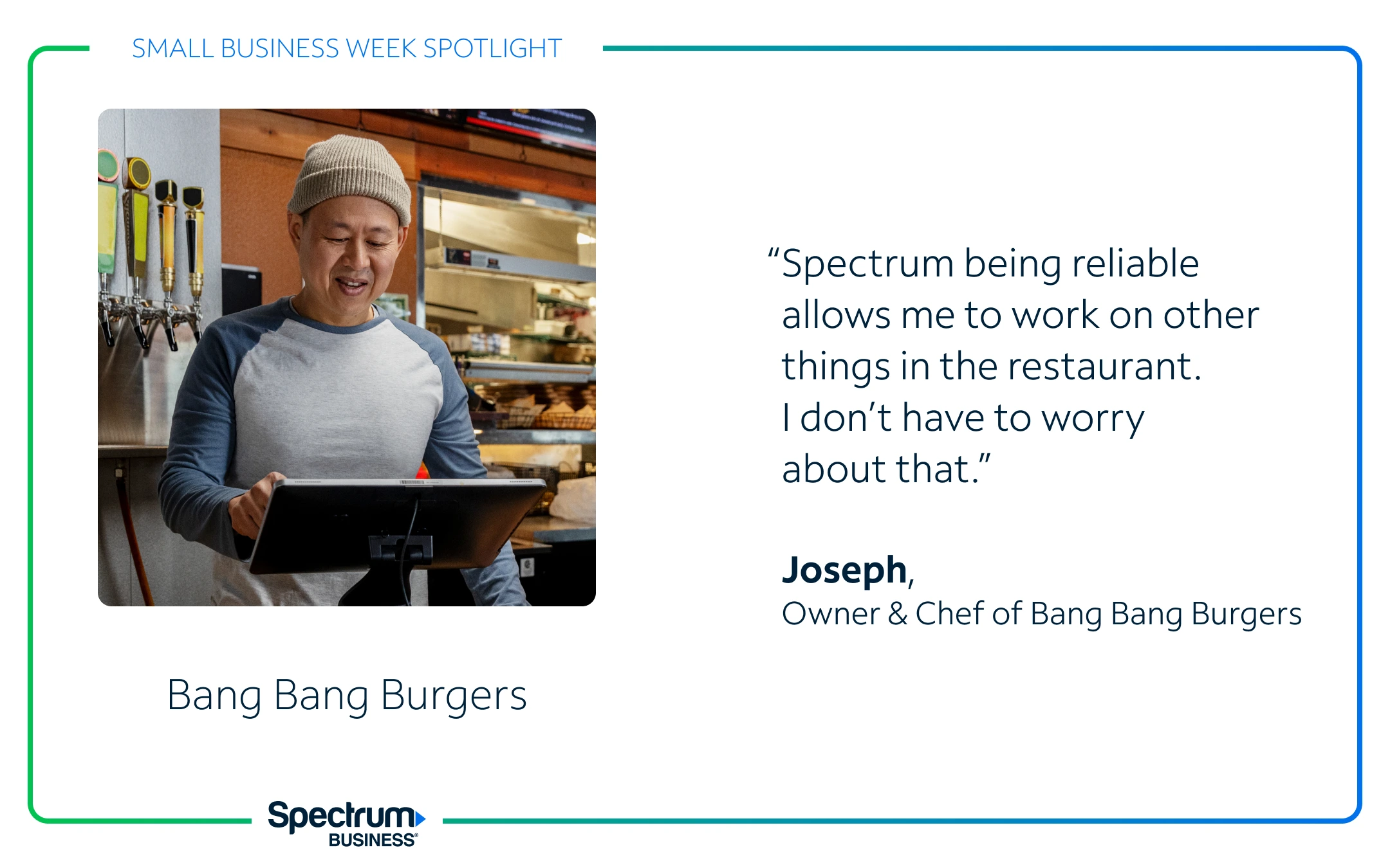 I wanted to incorporate the signature design element into the photos, so it looks like the Spectrum Business brand is spotlighting these business owners.