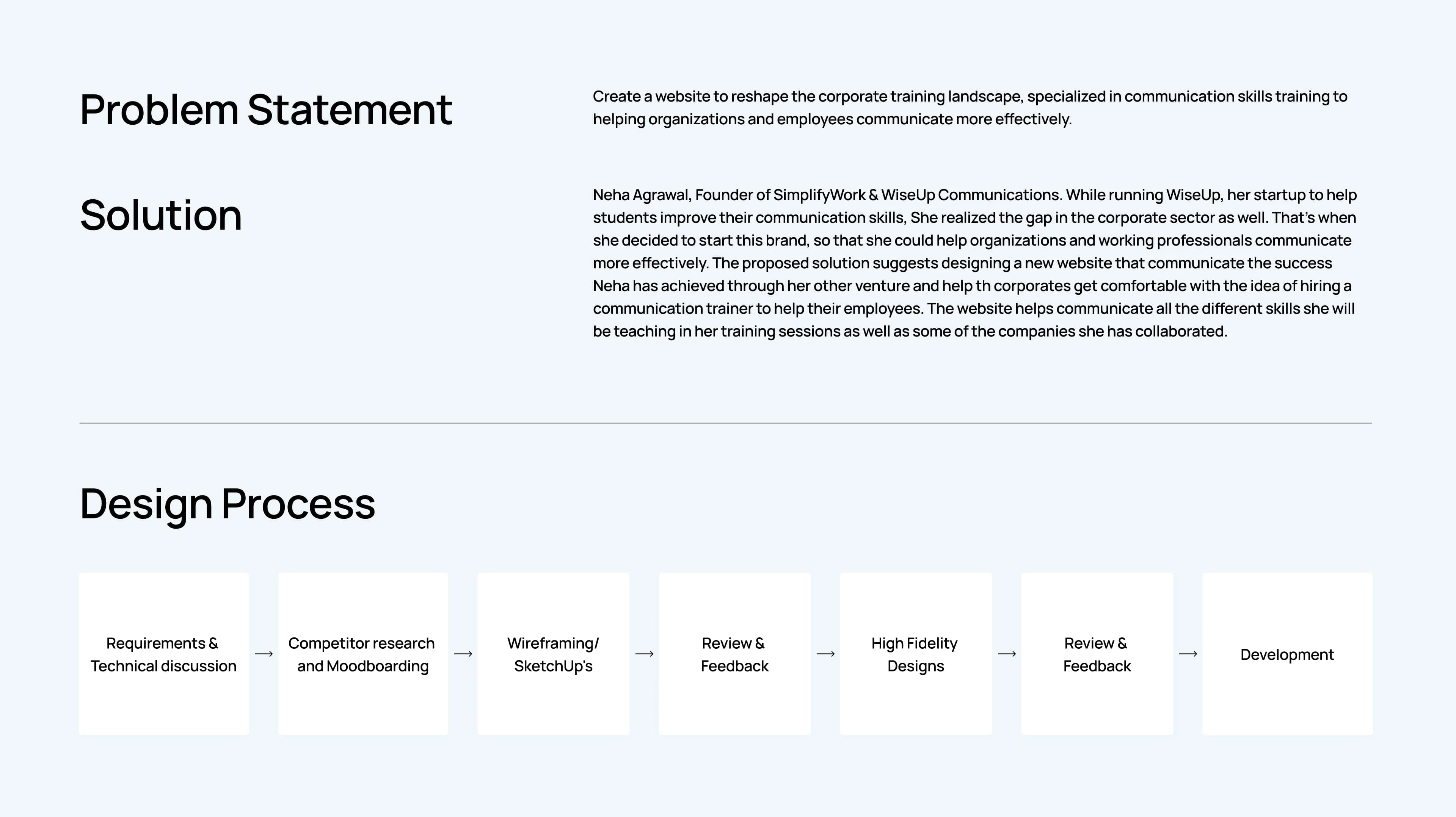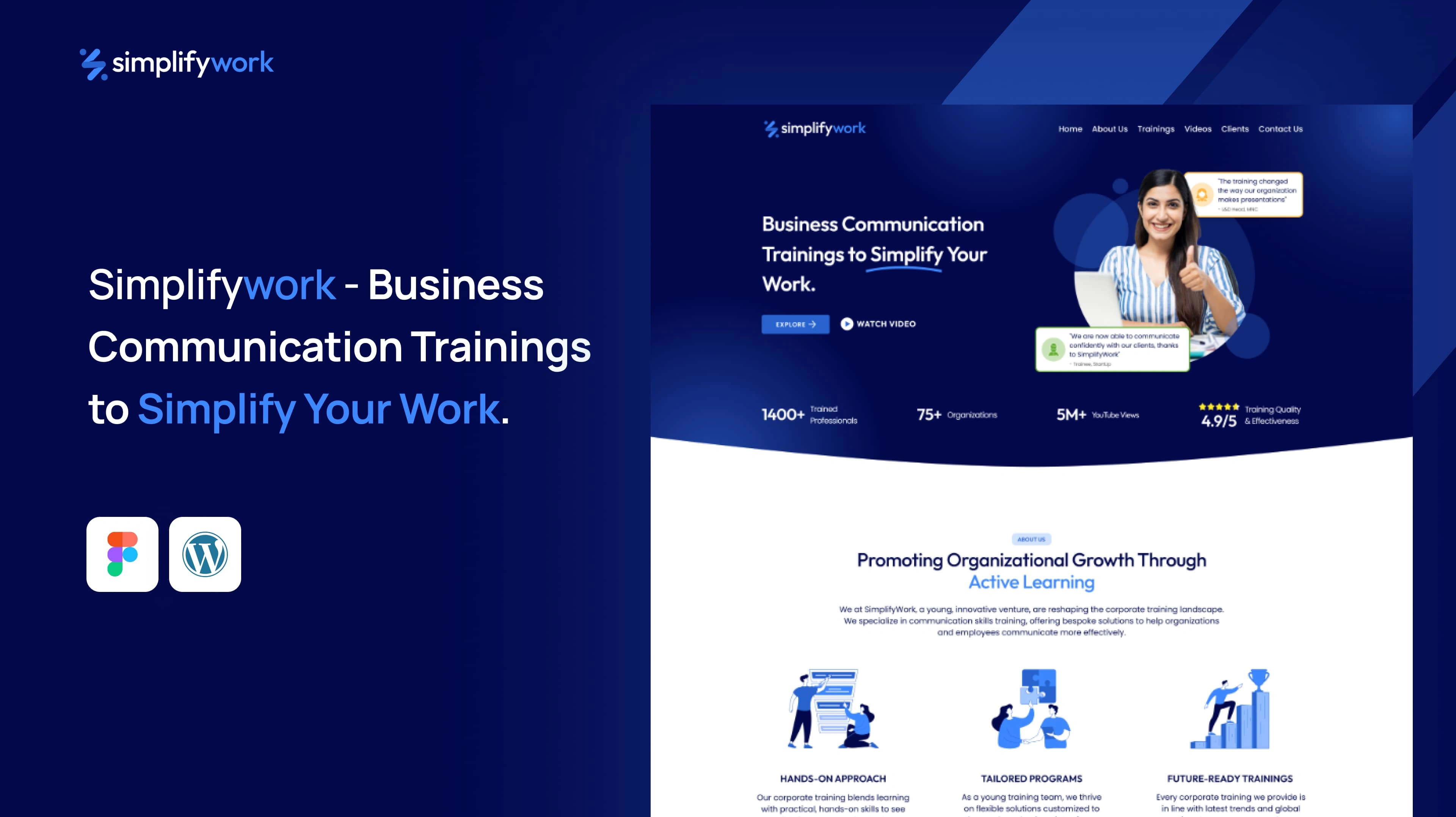 SimplifyWork is an initiative by Neha Agrawal, founder of WiseUp Communications, aimed at revolutionizing corporate communication training in India. The goal of this project was to design and develop a compelling, trust-building website that communicates Neha’s success, expertise, and corporate collaboration history, while encouraging companies to invest in communication skill development for their employees.