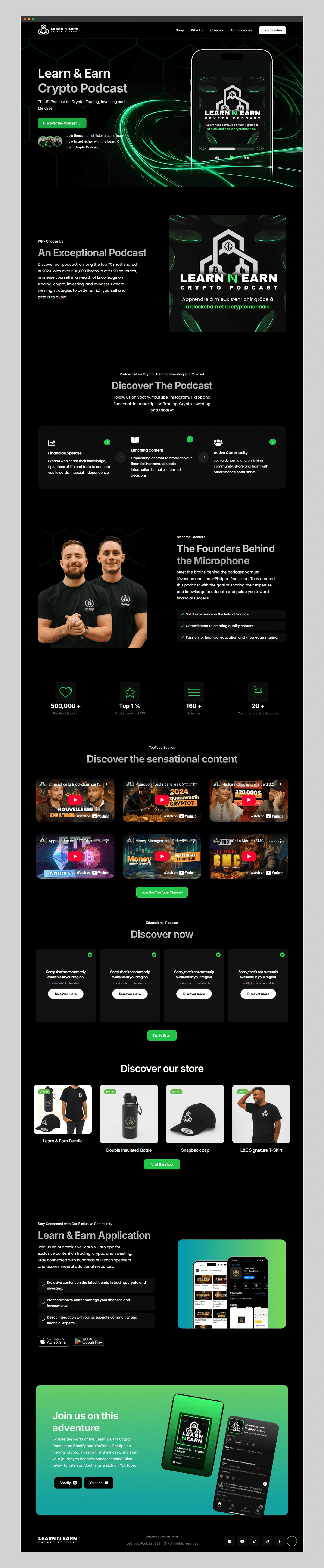 Designed a sleek, dark-themed WordPress site for LeCryptoPodcast with podcast streaming, blog, SEO, and mobile optimization for crypto audience engagement.