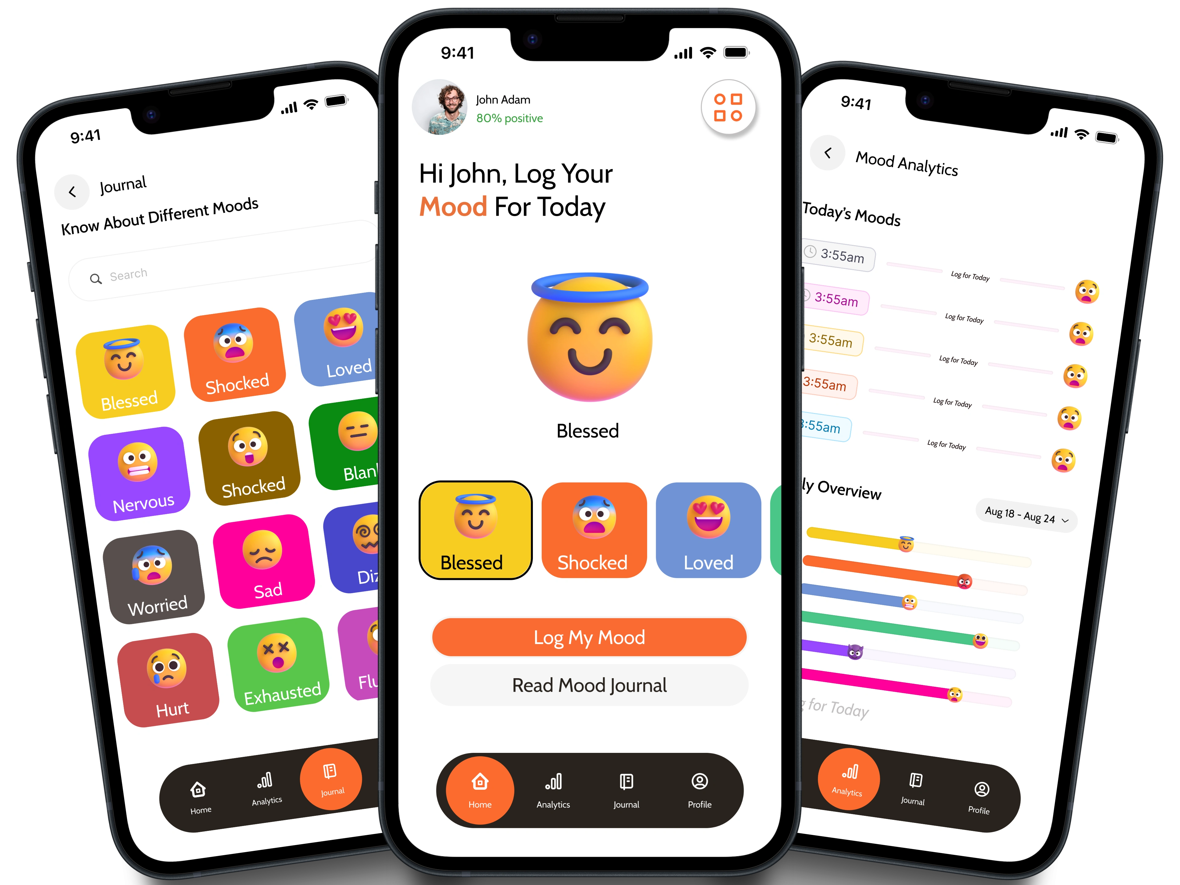 Ease of Use: One-tap mood logging with intuitive icons and colors.