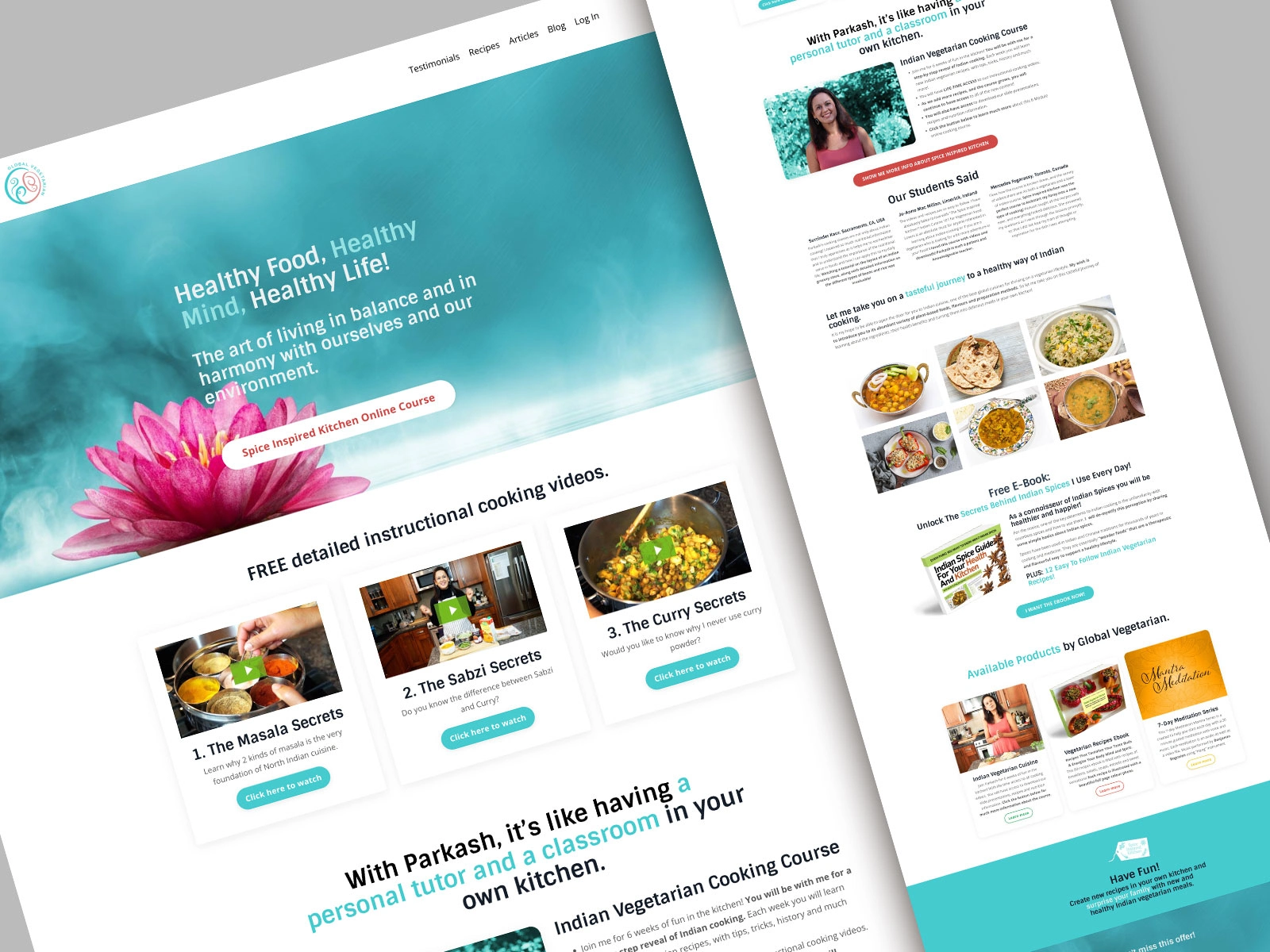 Global Vegetarian is a plant-forward cooking brand created to make healthy, Indian-inspired vegetarian cuisine accessible to home cooks everywhere. The project required a complete digital presence — from brand identity to a functional Kajabi website to a full multi-module cooking course with professionally produced video lessons.