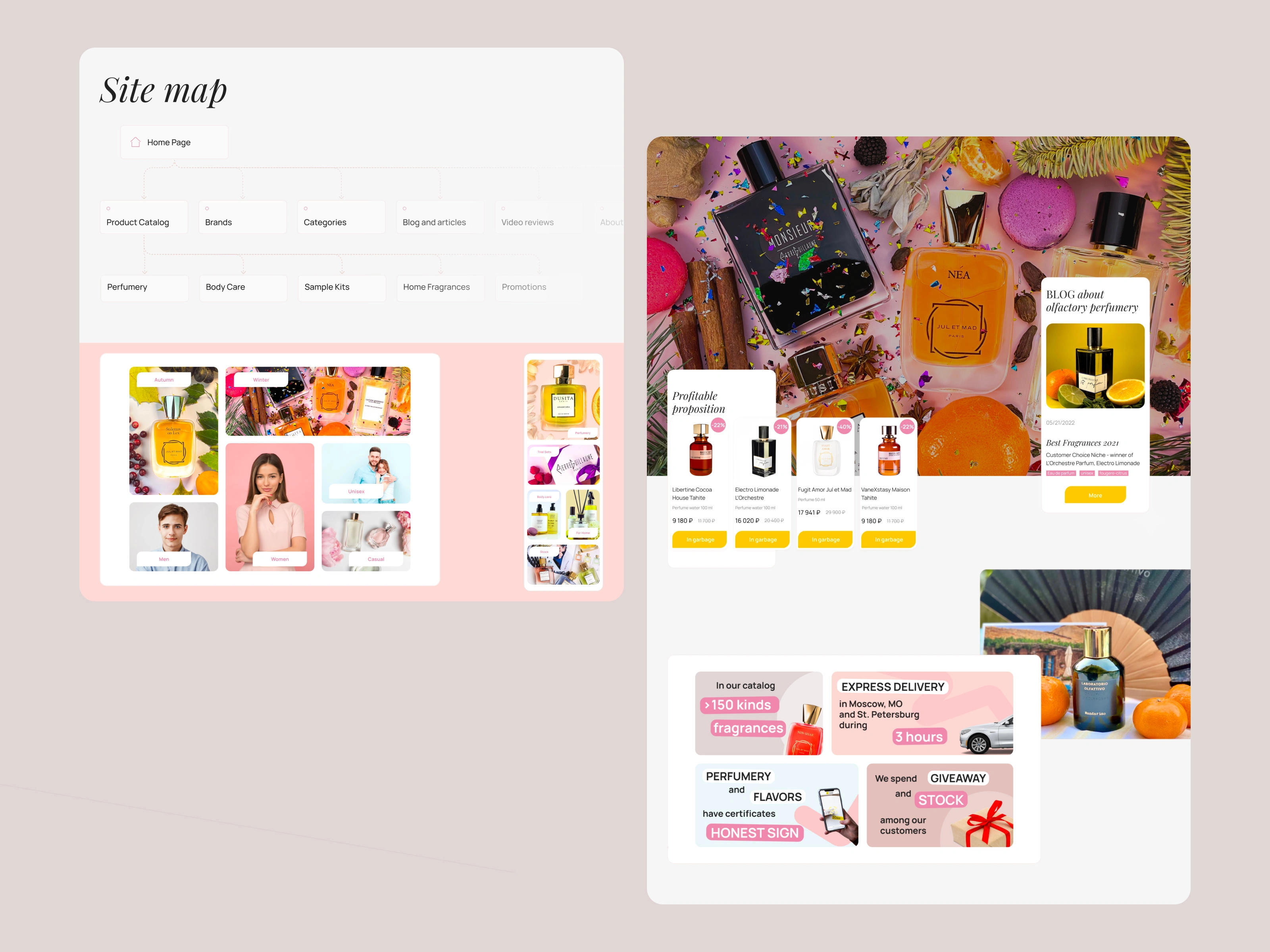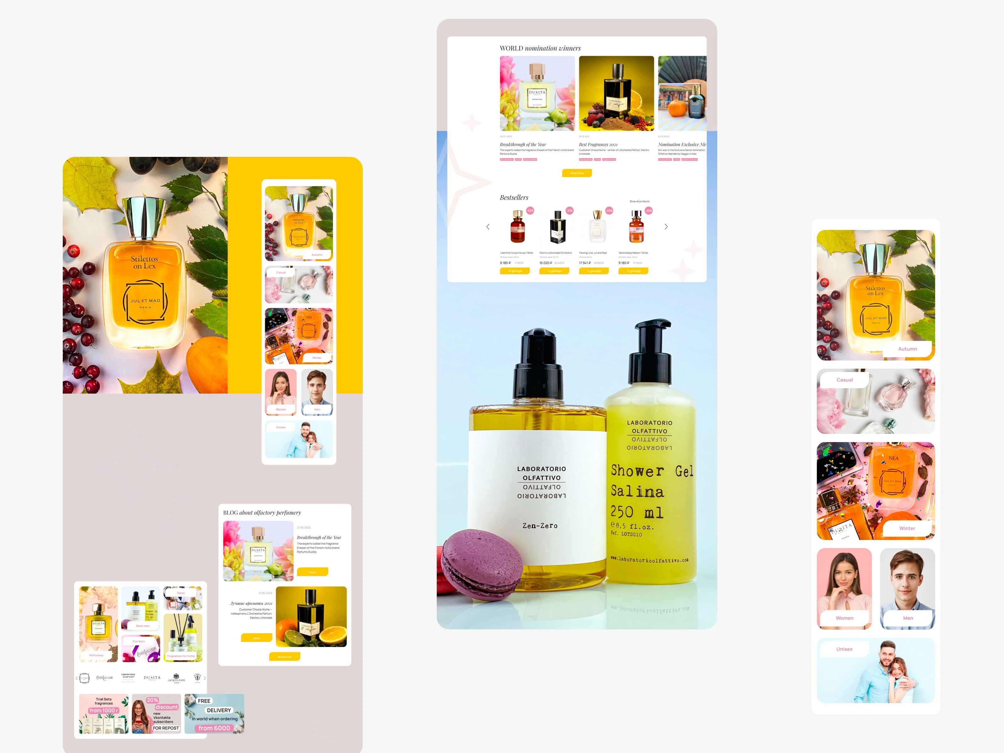 The design was inspired by major retail sites (like Rive Gauche), mandating a bright, engaging aesthetic with vivid primary colors, bold photography, and numerous promotional banners. Custom elements, such as rounded buttons with unusual shapes, were used to achieve a playful, vibrant feel.