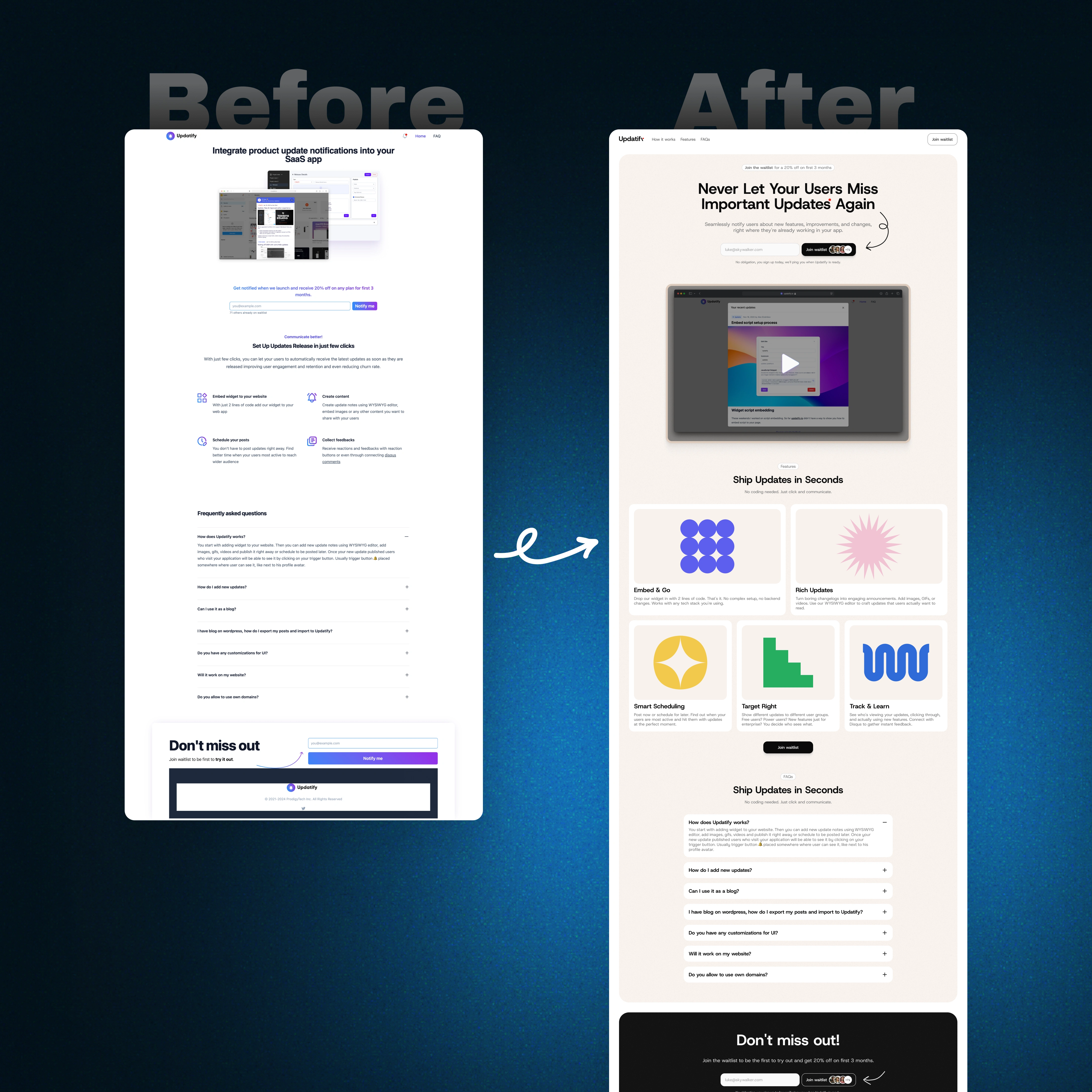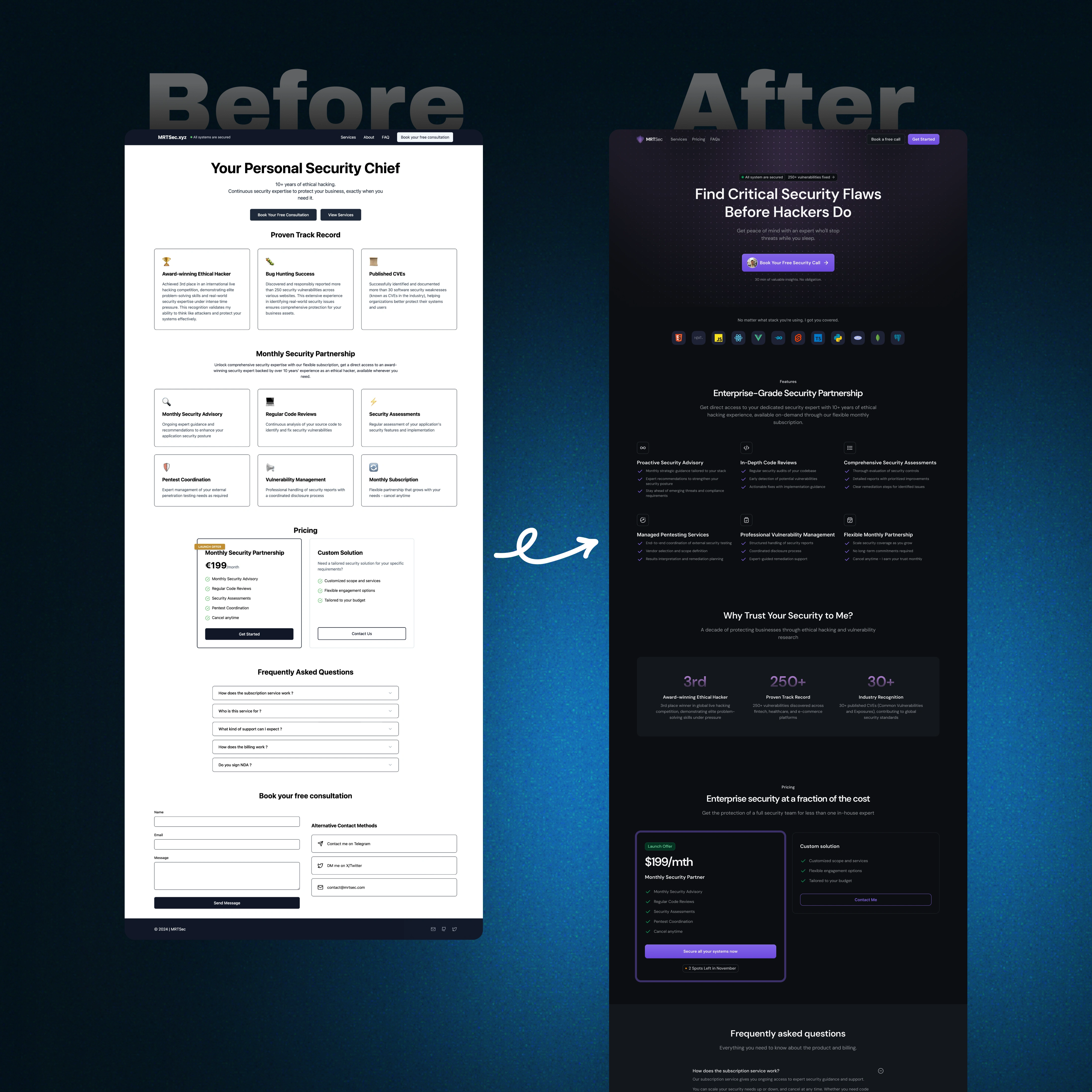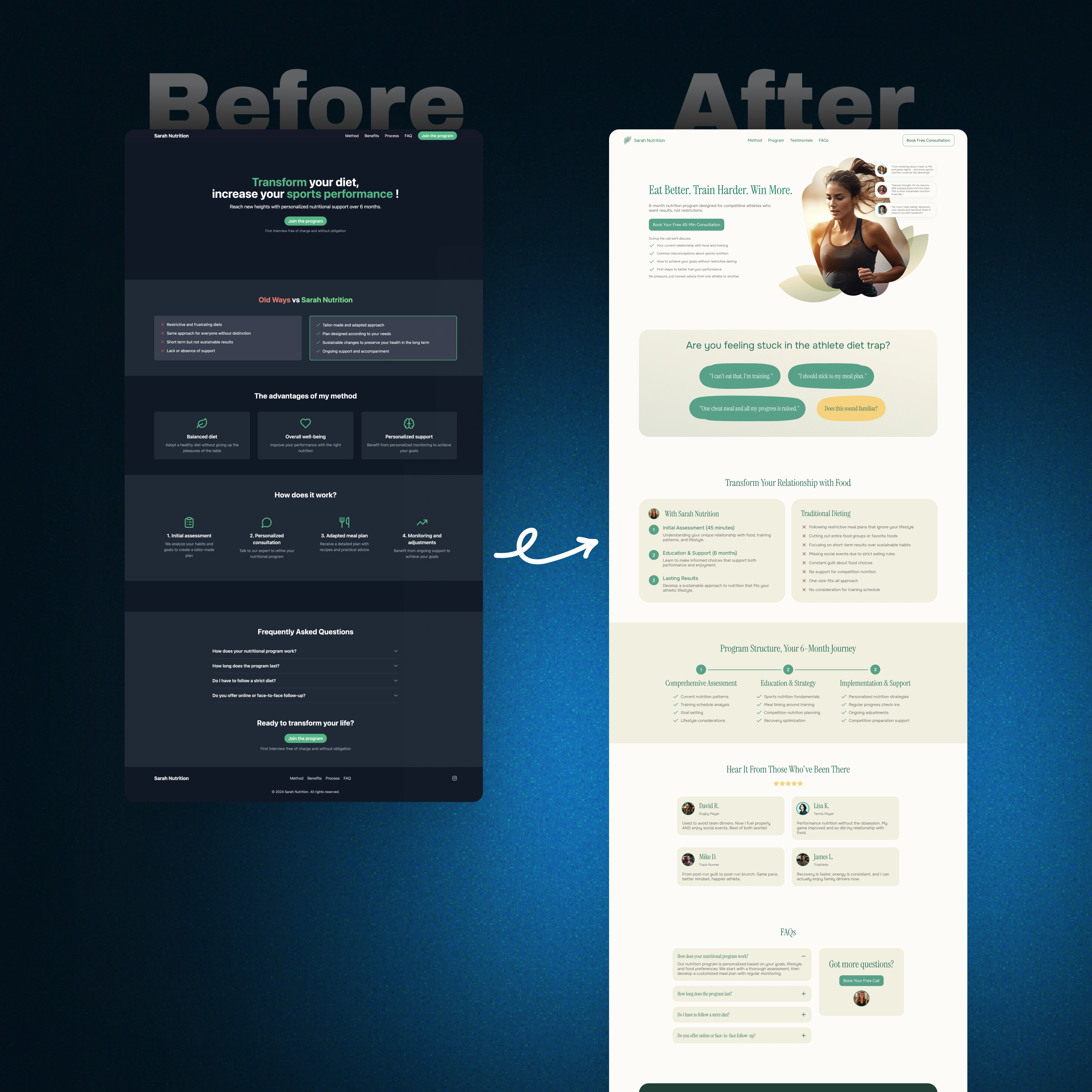 Each client received a cleaner, more focused landing page that improved visual hierarchy and brand clarity. Feedback was positive and clients noted higher satisfaction and conversions with the updated look.