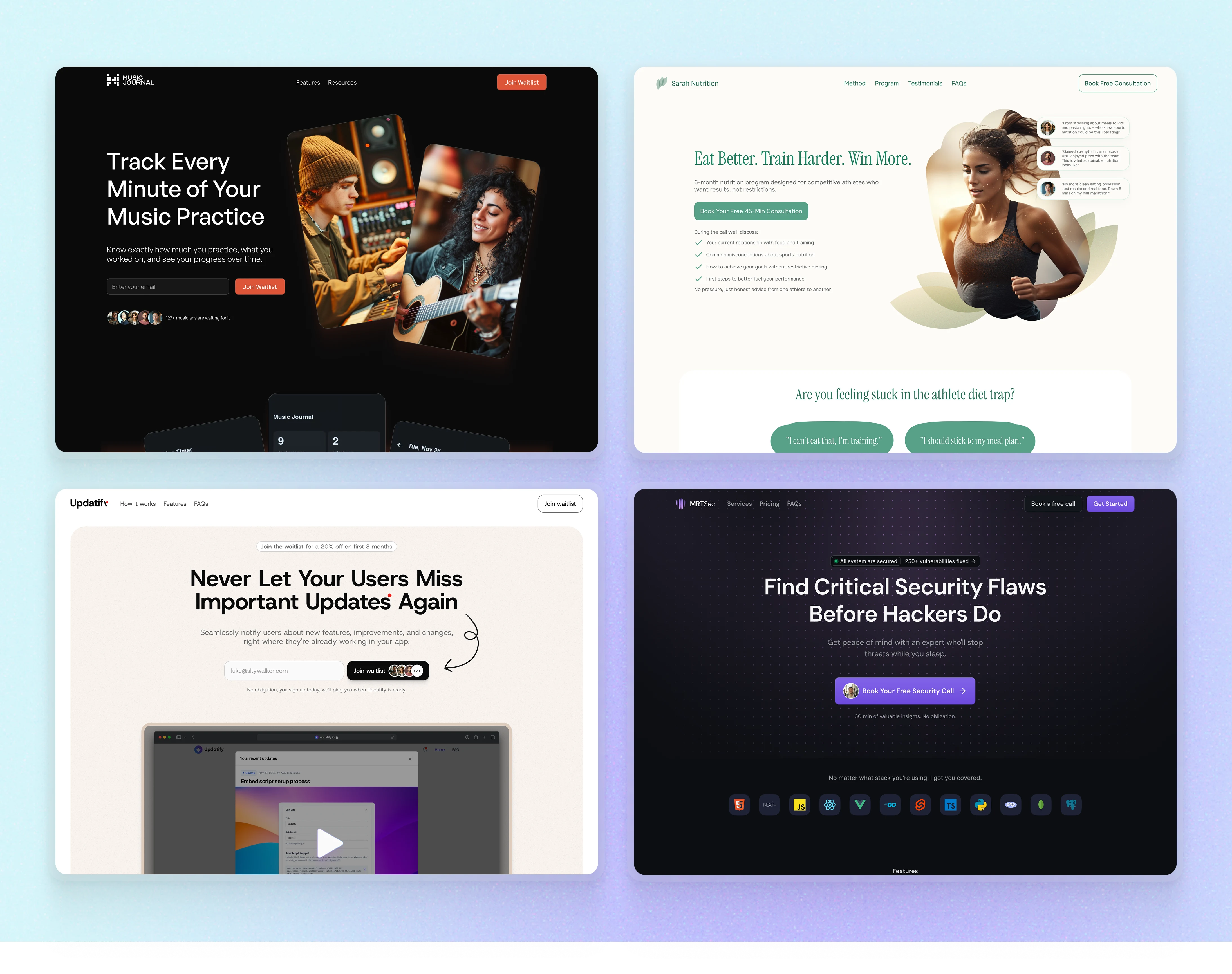 This project is a collection of landing page redesigns I completed for a range of indie makers and early‑stage startups.