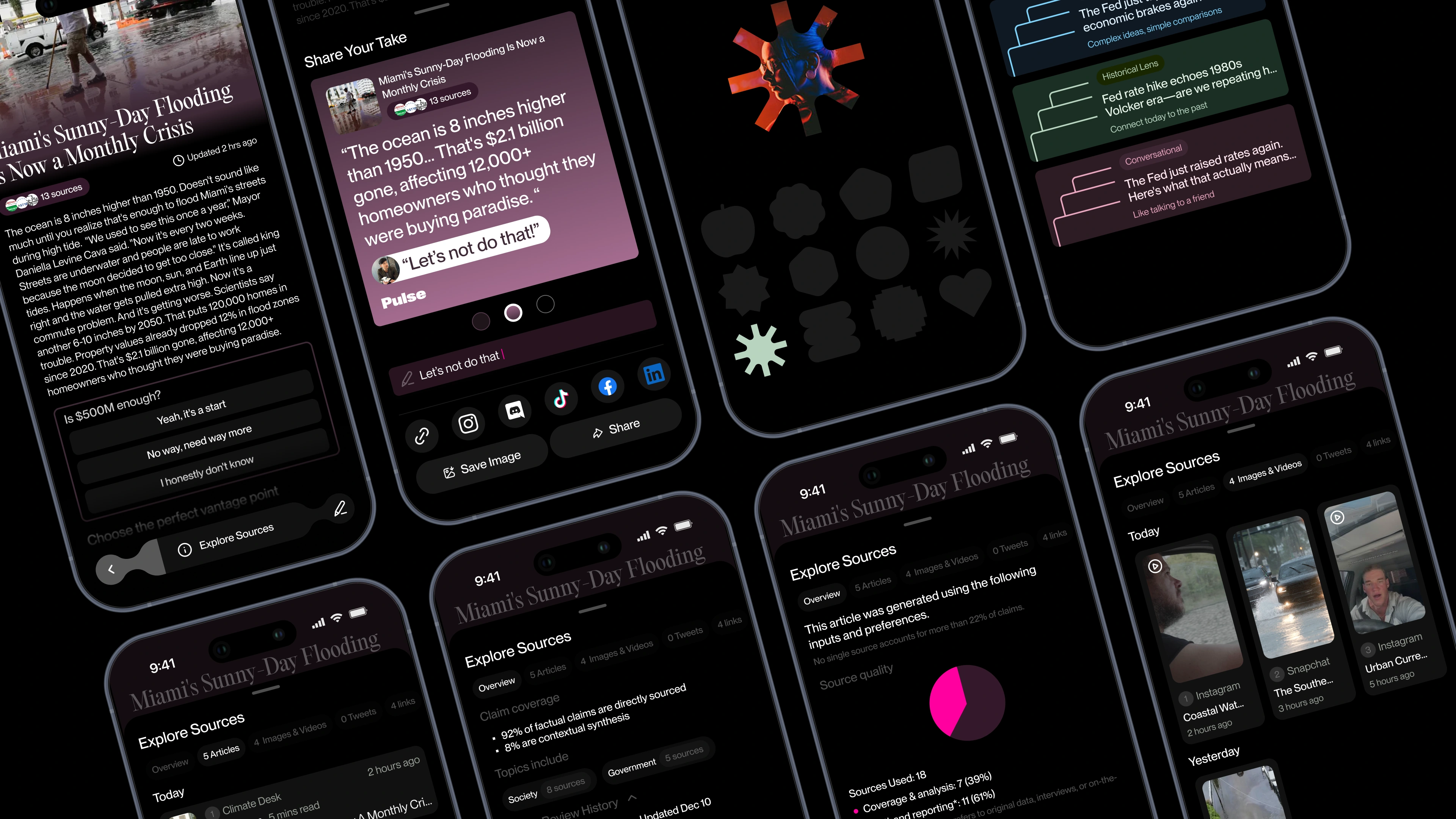 Gen Z has lost trust in traditional media. 73% say they can't distinguish real news from misinformation. Existing AI news apps either overwhelm users with endless feeds (Particle) or reduce complex issues to oversimplified left/right labels (Ground News).