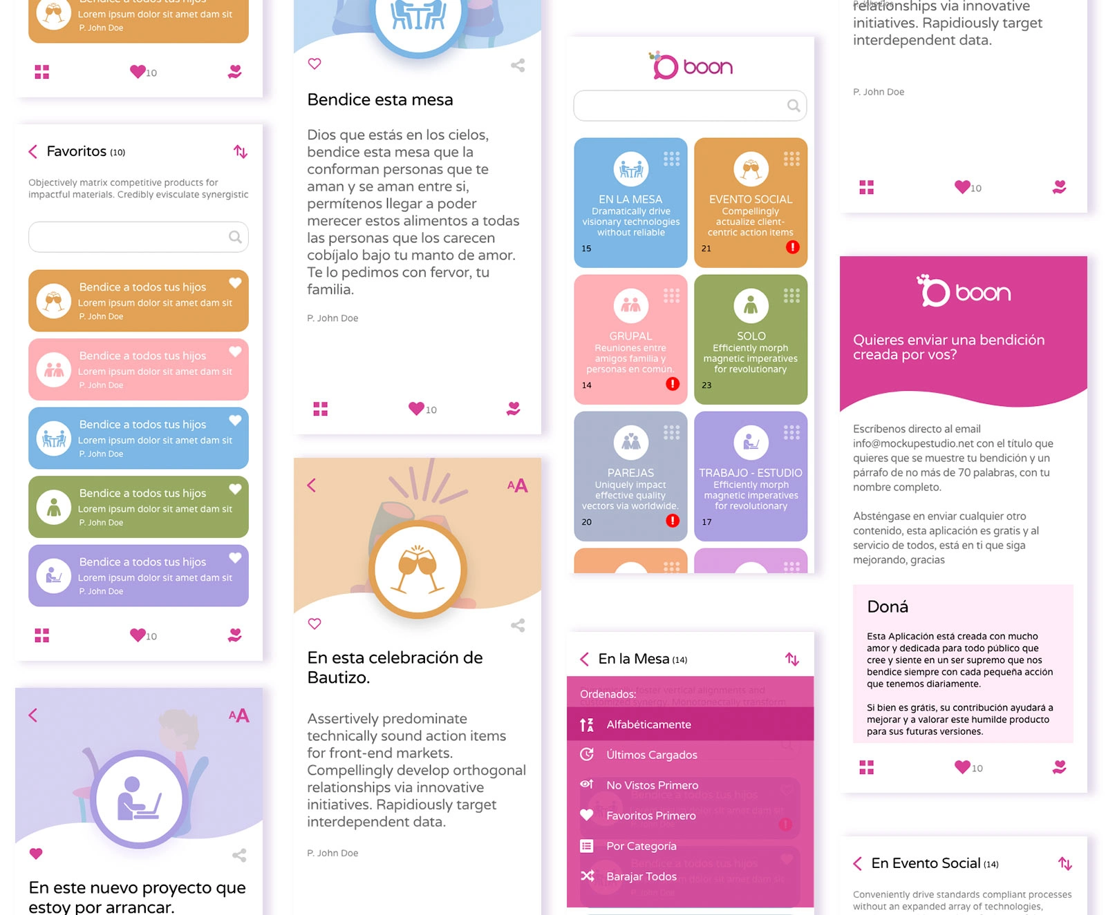 After some corrections, I think the structure is simple and solid so that the user can be guided, obviously, this is very rigid to be an application, humanistic and philanthropic, for the first version I will use fewer straight corners. As you will see at the beginning I used the name «Bendiciones» (Blessings), but it seemed a kind of «niche name» so I took a more commercial name, Boon!